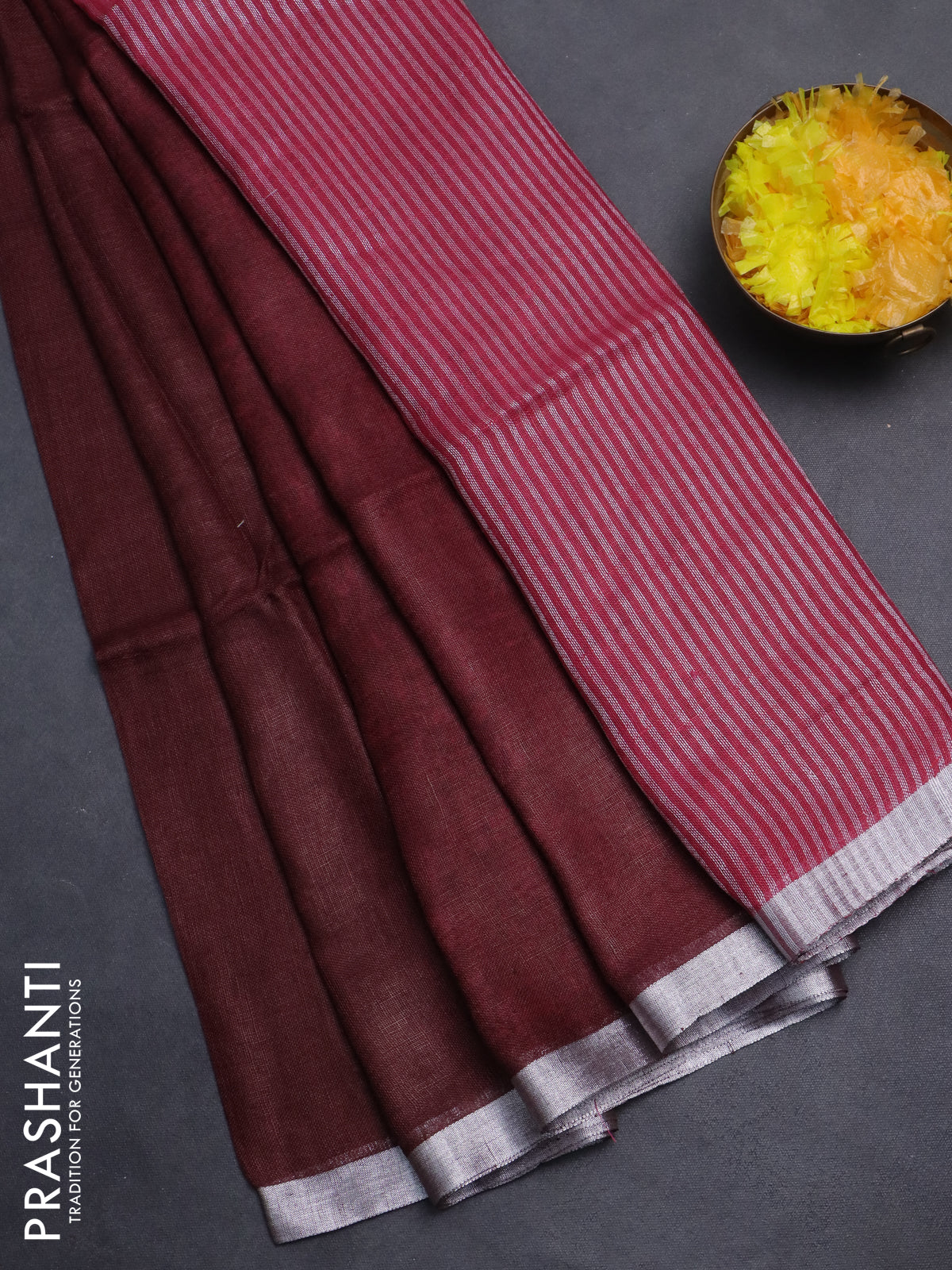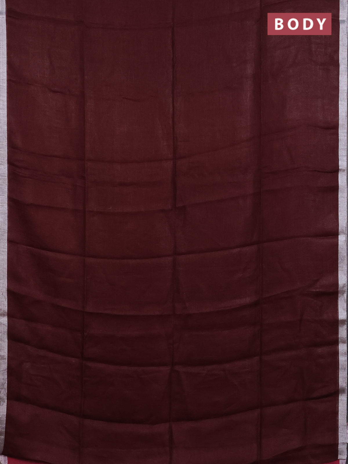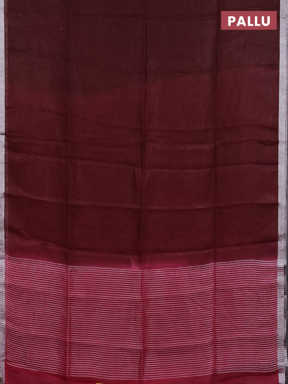 Pure linen saree maroon with plain body and silver zari woven border
