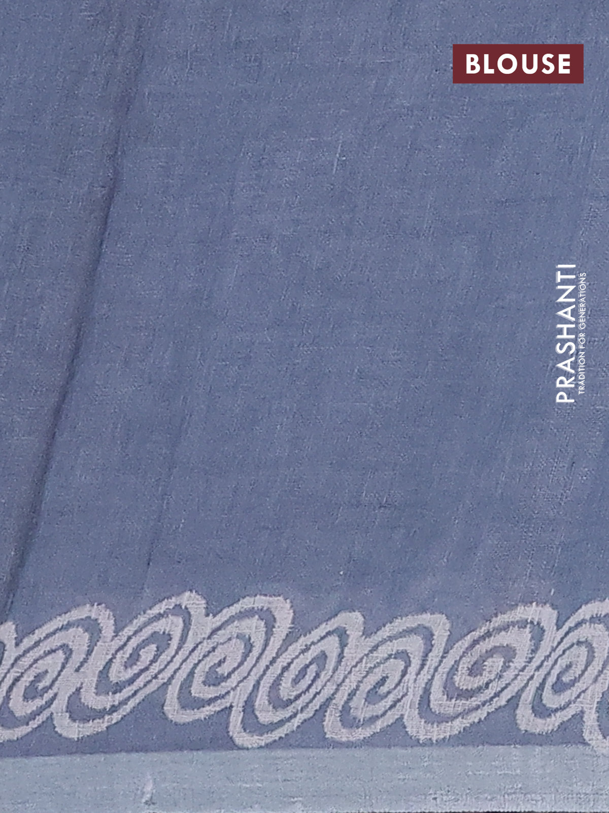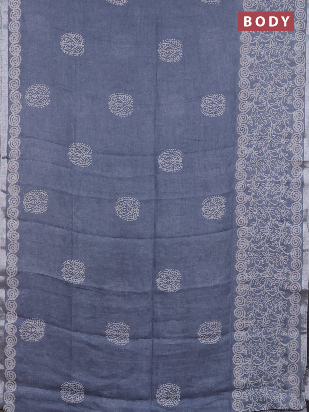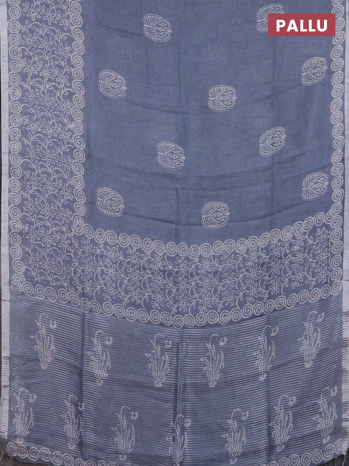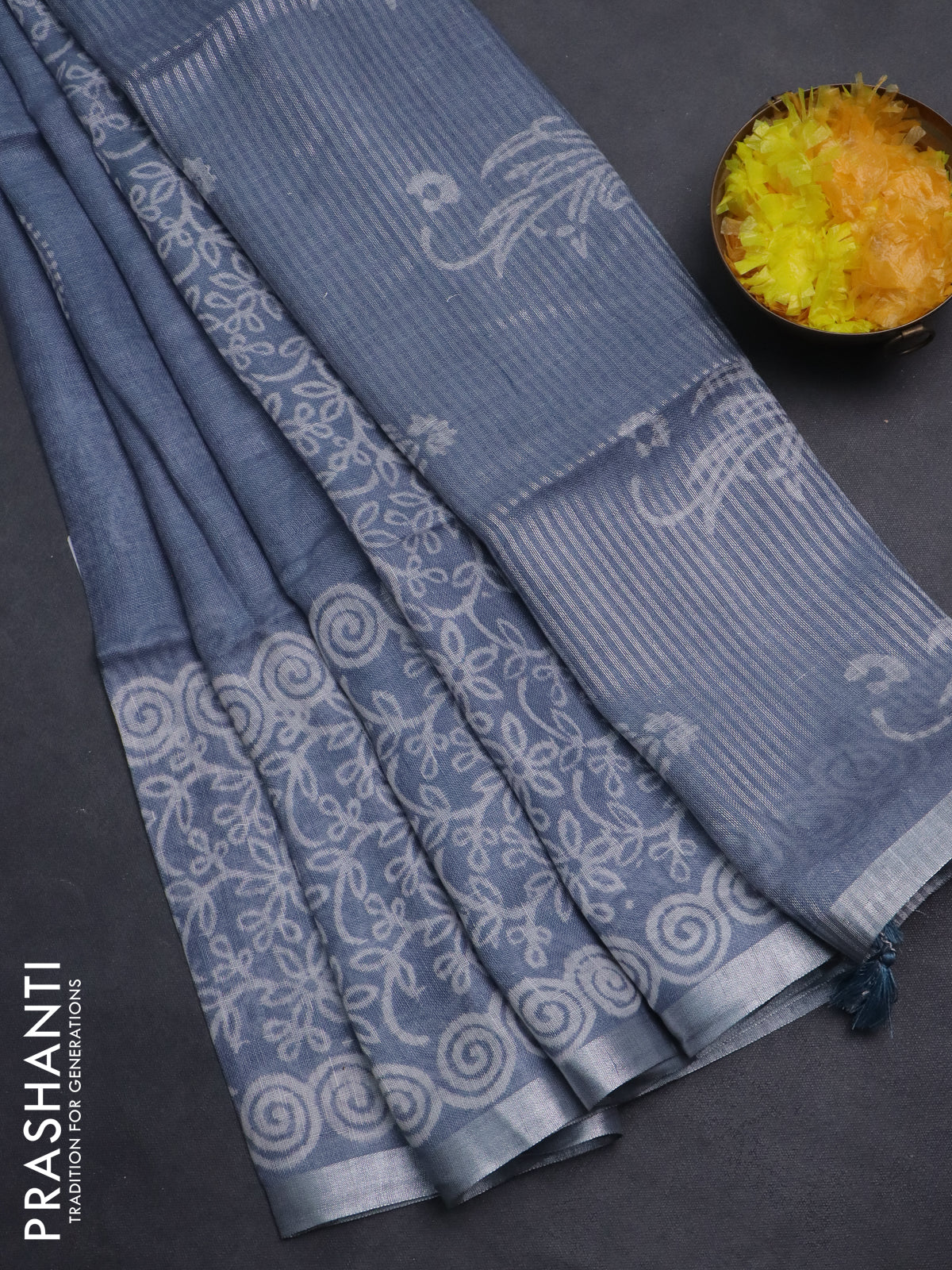 Pure linen saree pastel blue with allover butta prints and silver zari woven border
