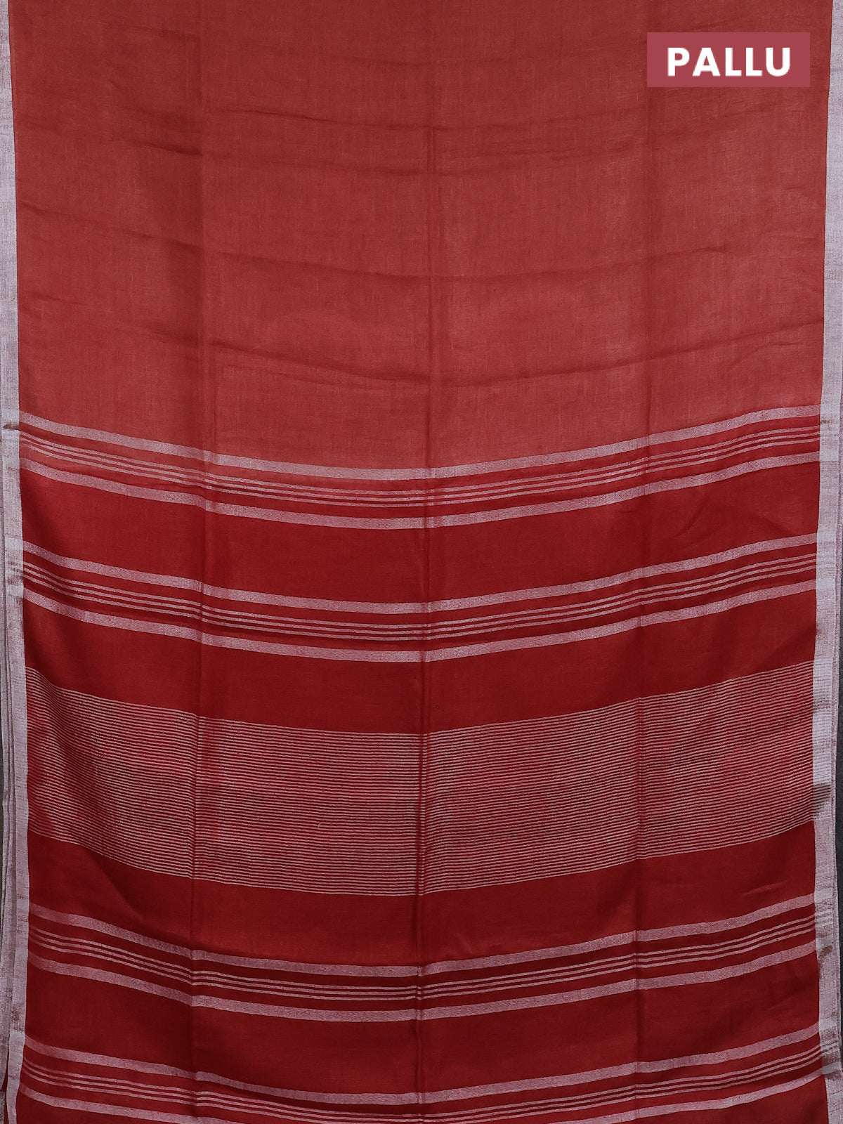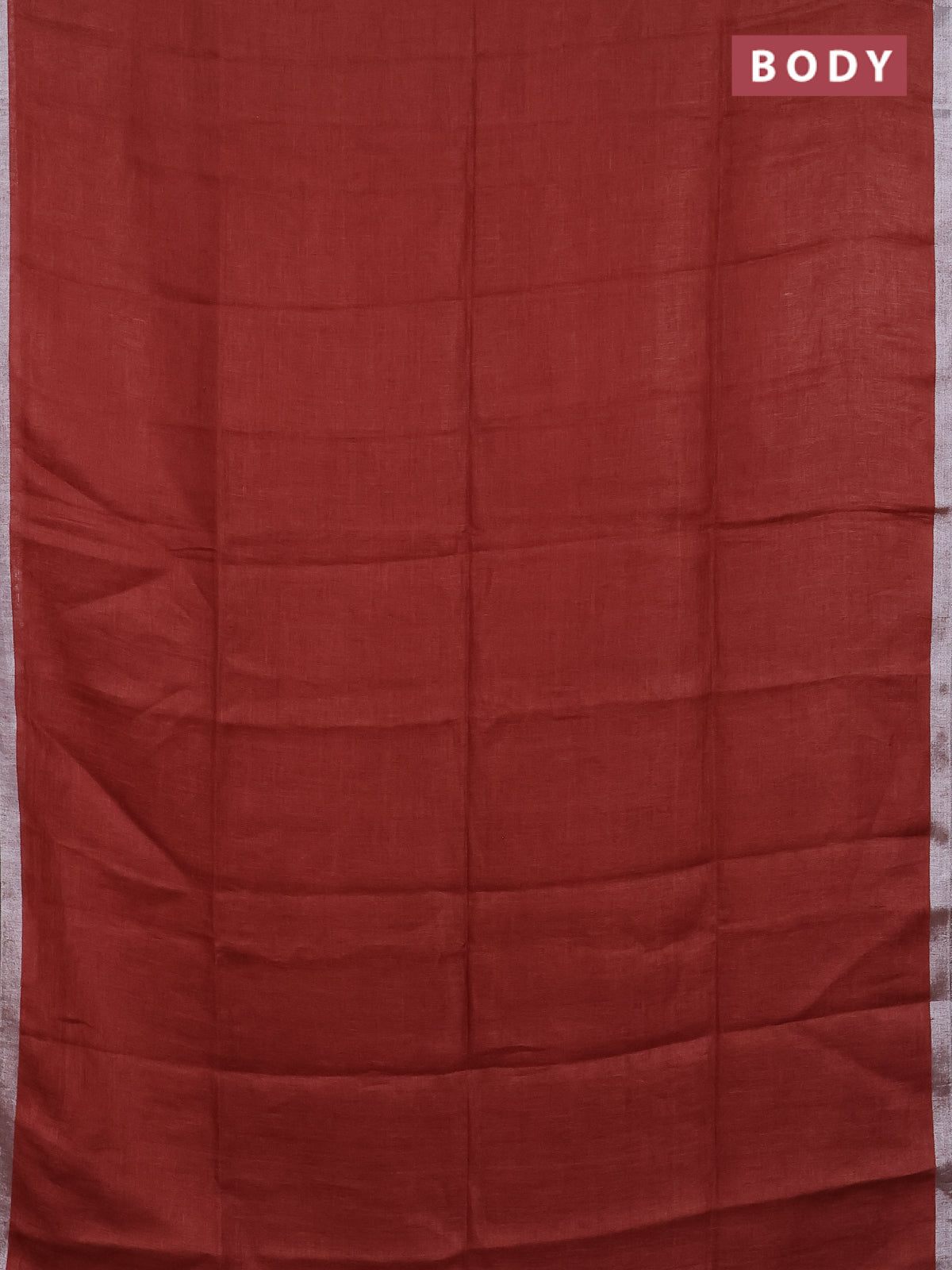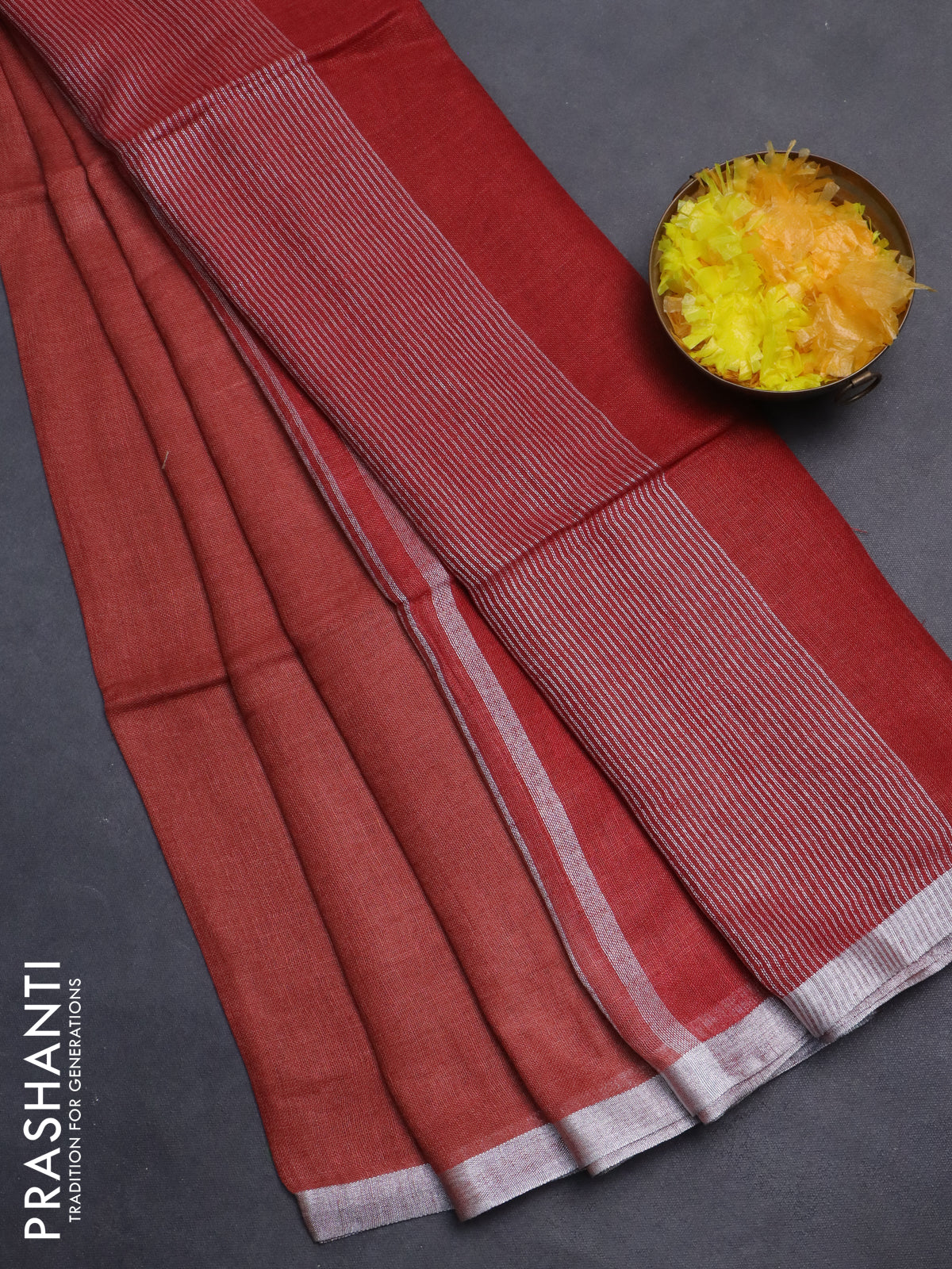 Pure linen saree rust shade and maroon with plain body and silver zari woven border