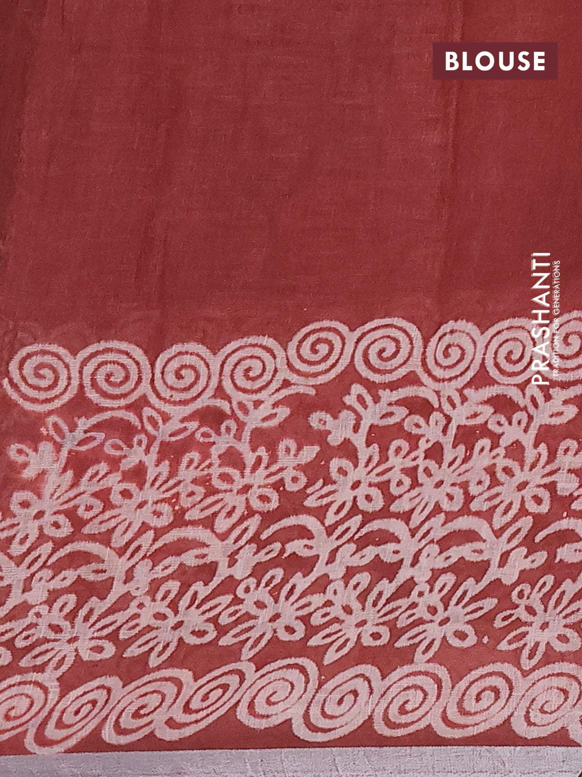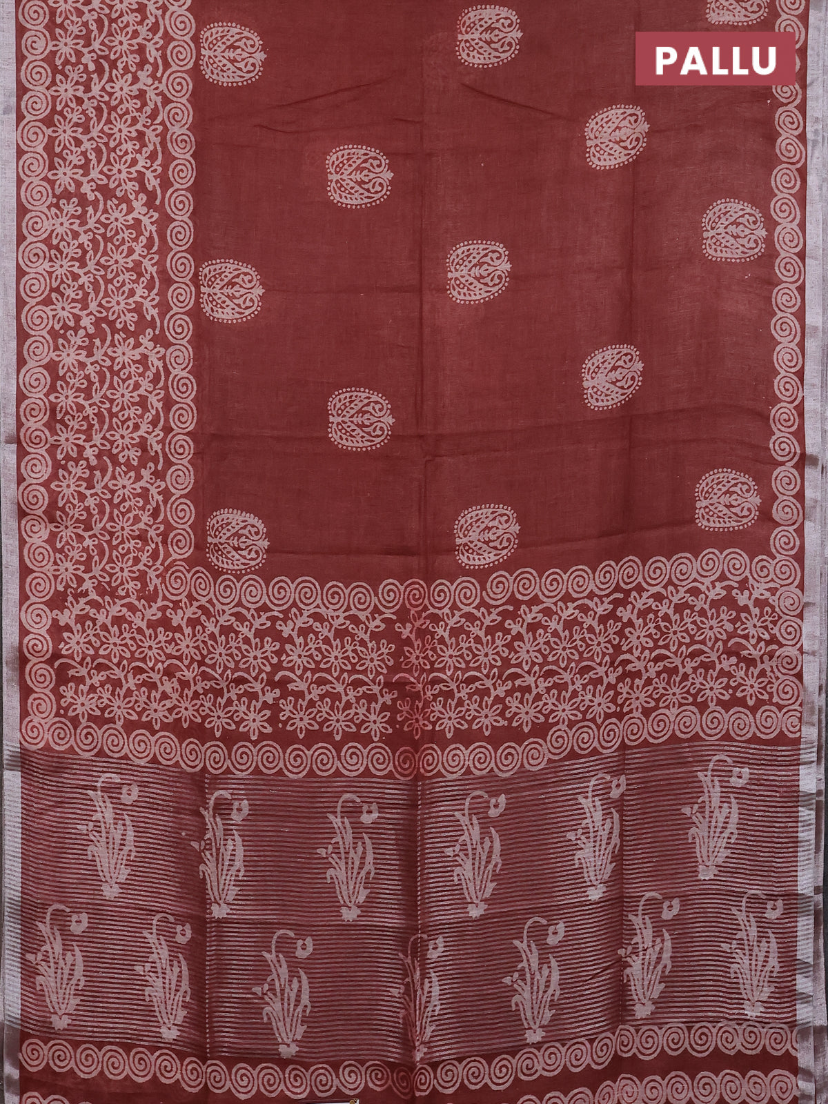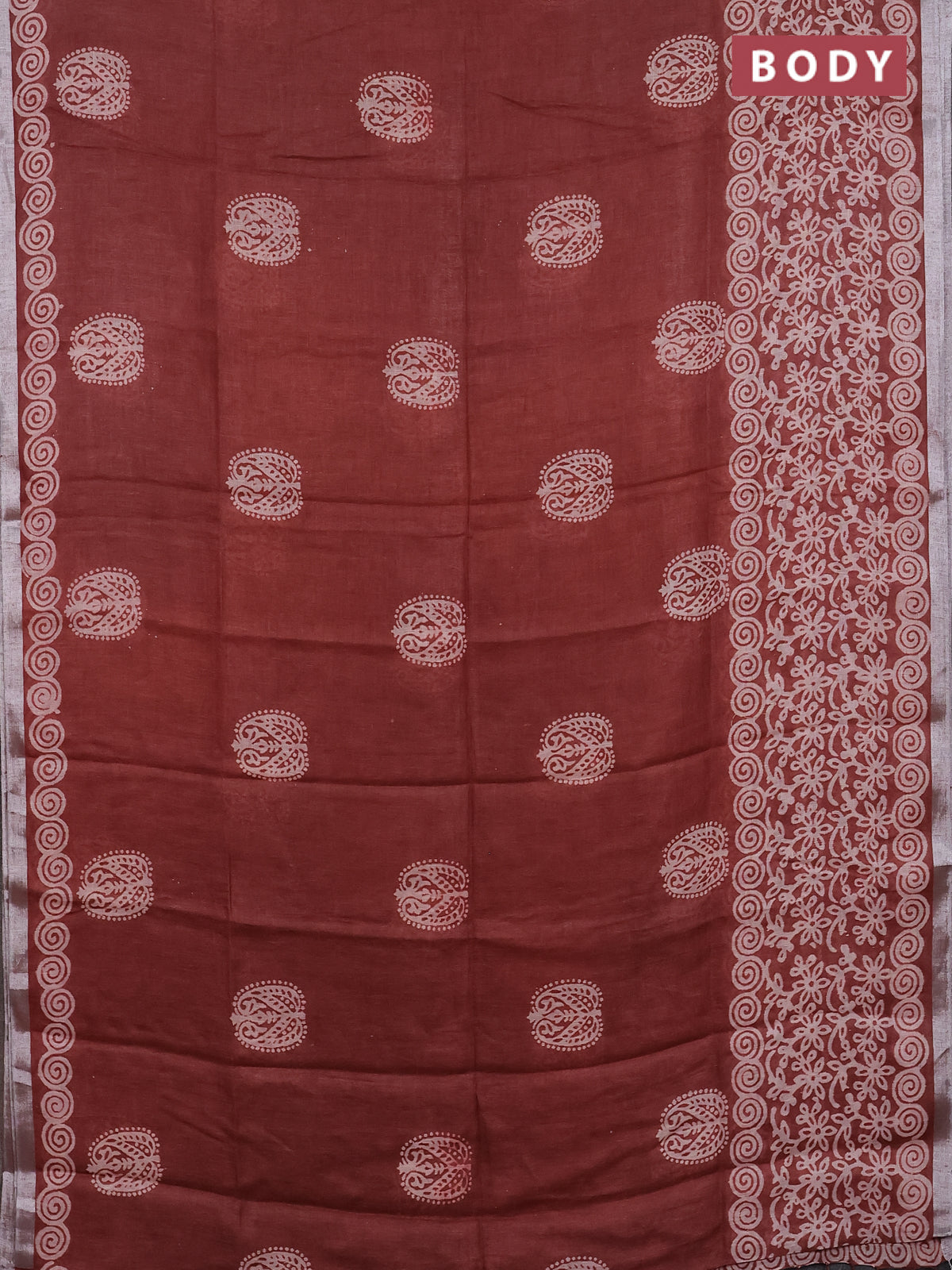 Pure linen saree rust shade with allover butta prints and silver zari woven border