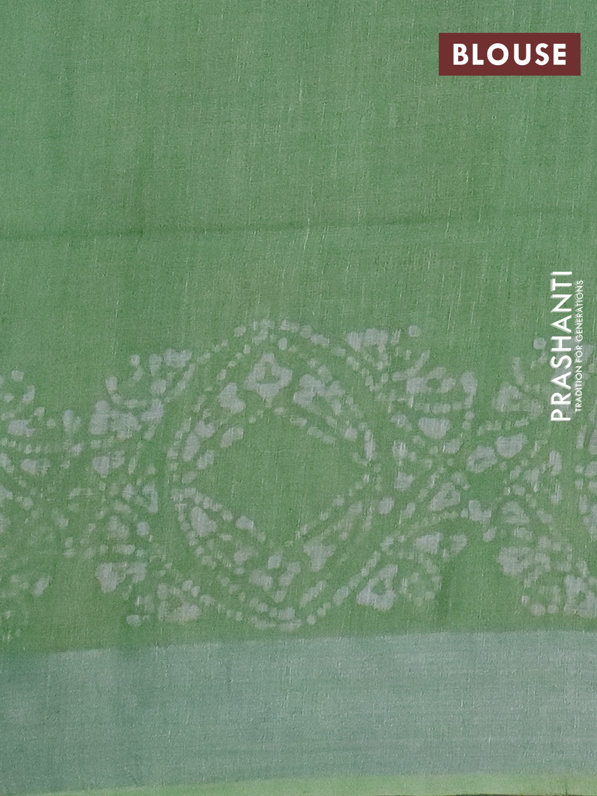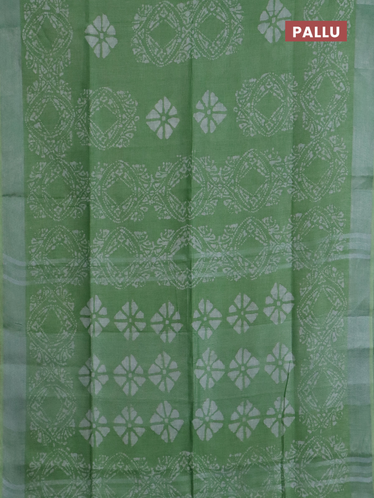 Pure linen saree teal green shade with allover batik prints and silver zari woven border