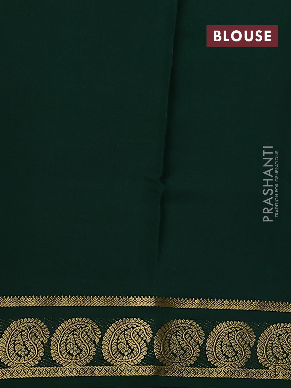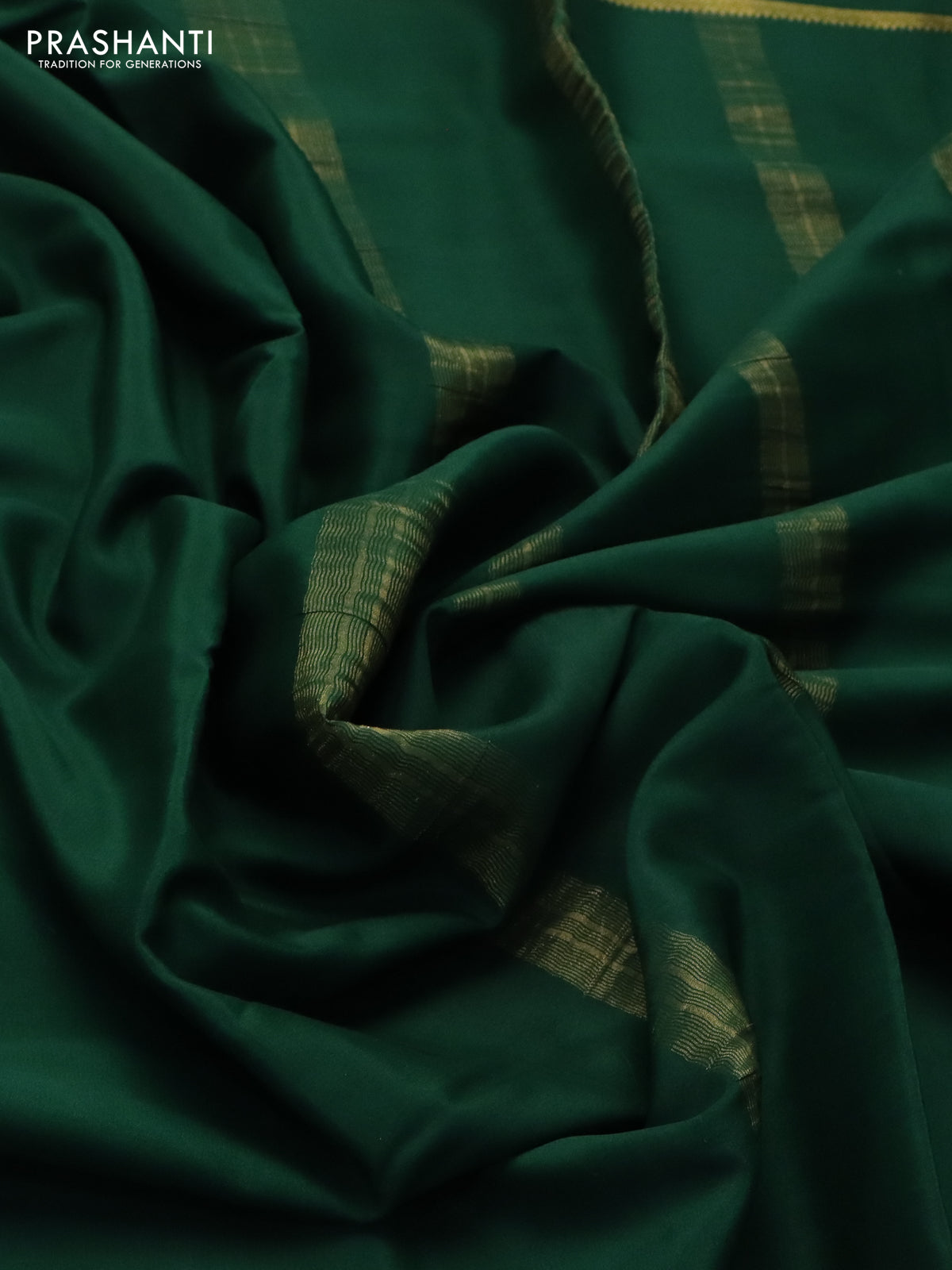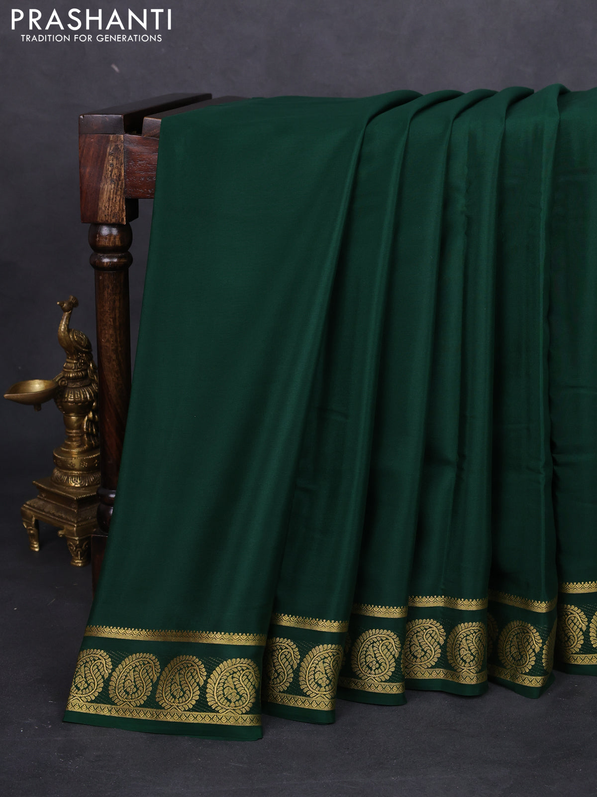 Pure mysore silk saree bottle green with plain body and paisley zari woven border