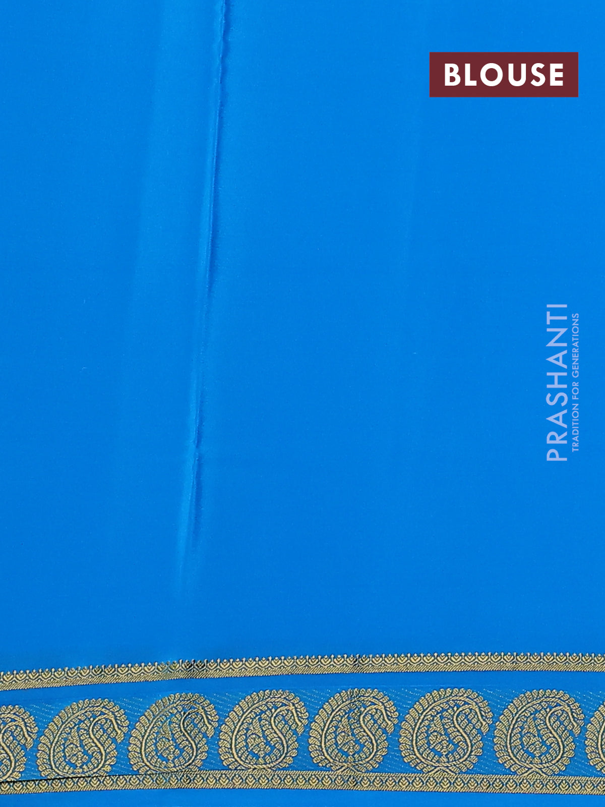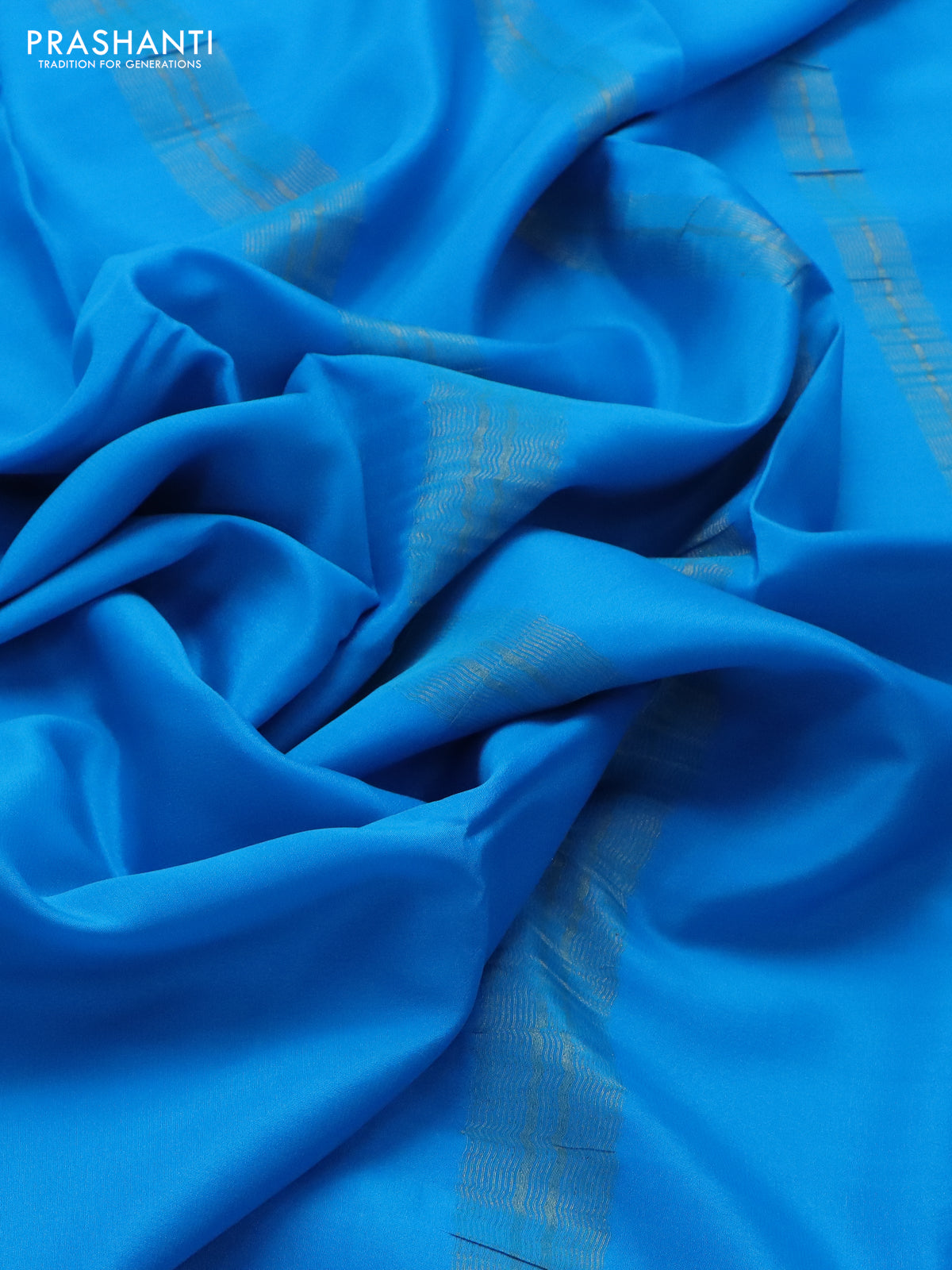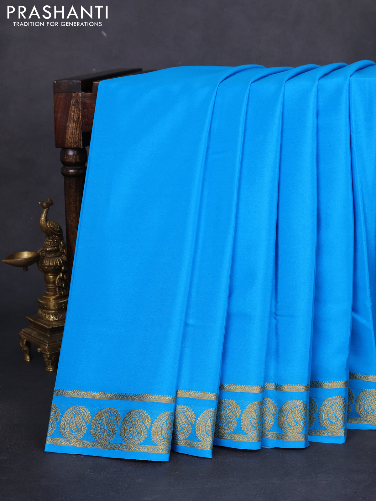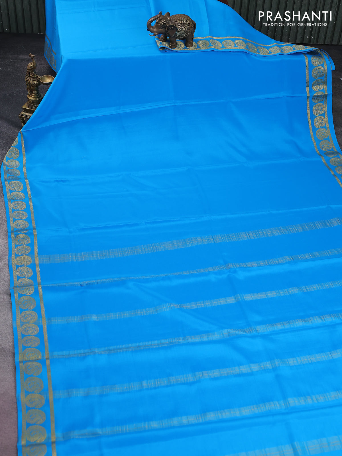 Pure mysore silk saree cs blue with plain body and paisley zari woven border