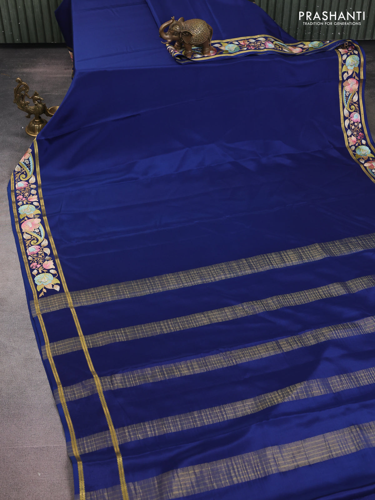 Pure mysore silk saree dark blue with plain body and embroidered zari border