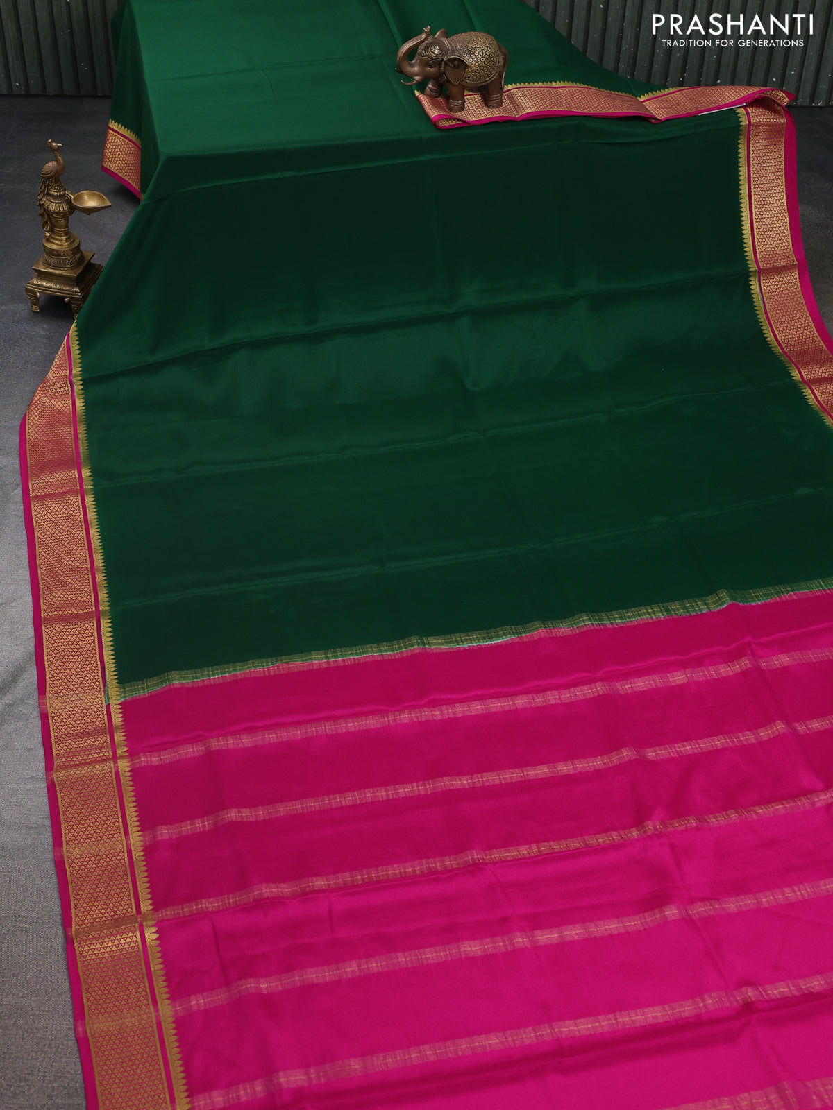 Pure mysore silk saree green and light pink with plain body and zari woven border