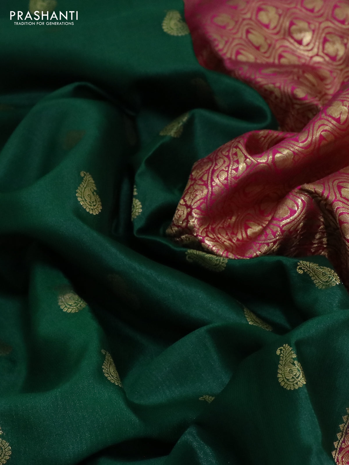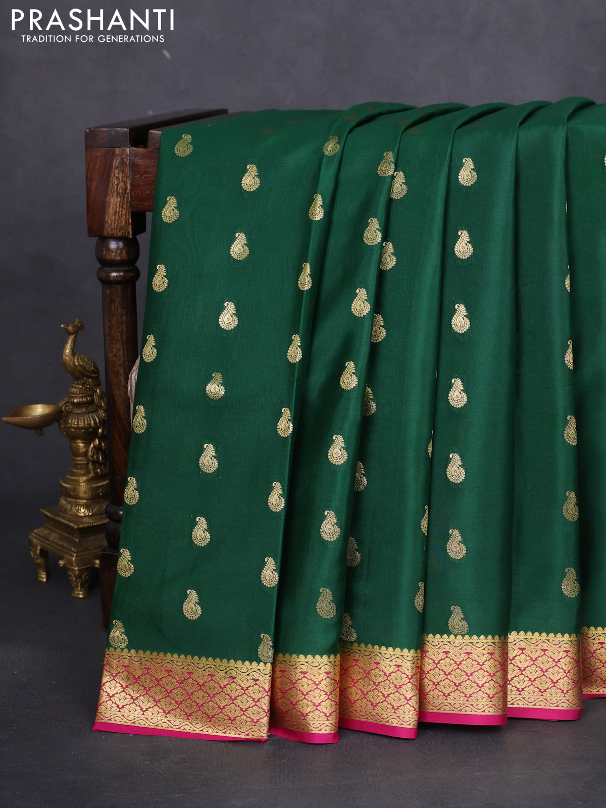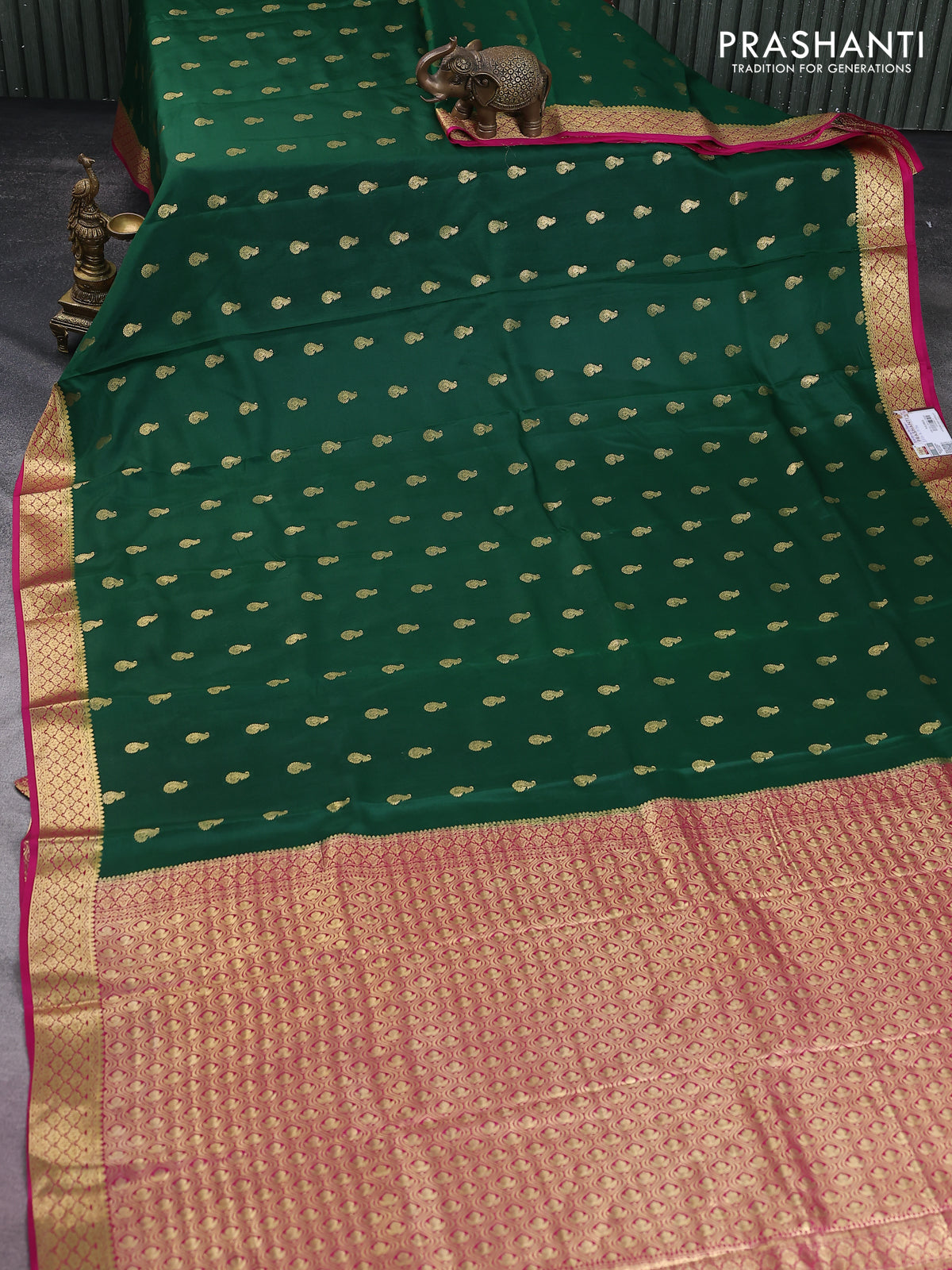 Pure mysore silk saree green and pink with allover zari woven buttas and zari woven border