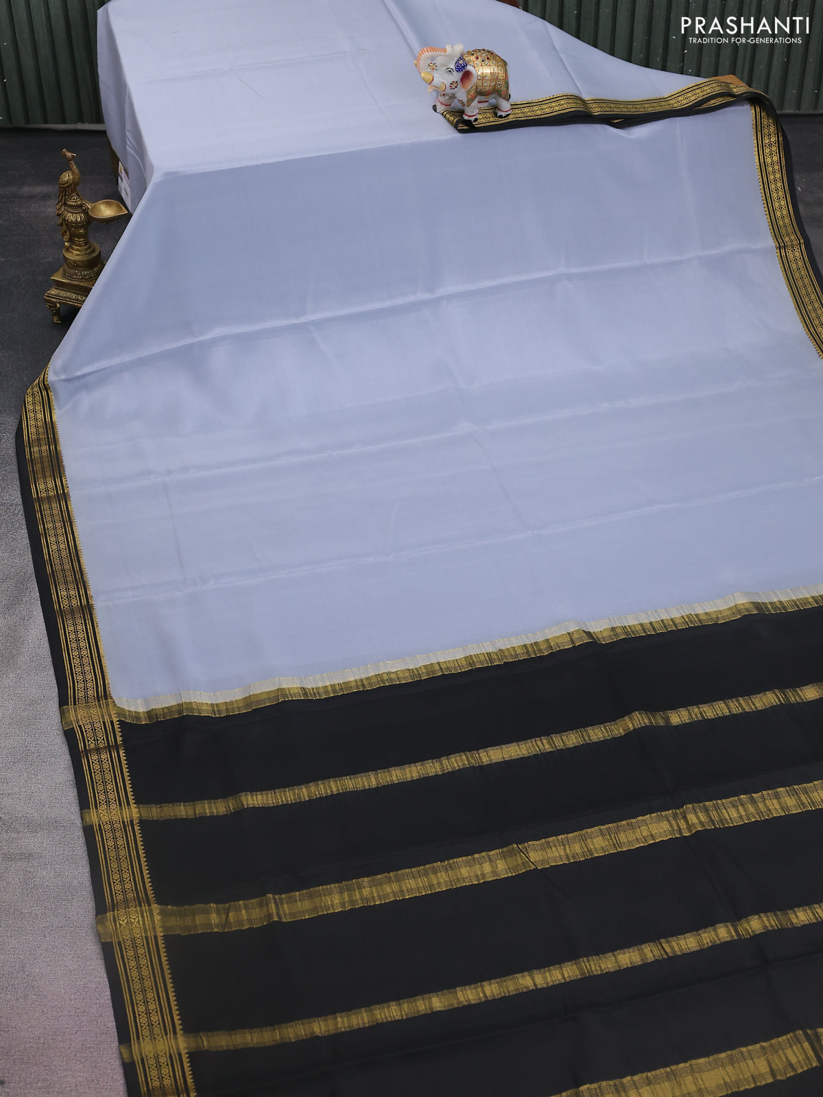 Pure mysore silk saree grey and black with palin body and zari woven border