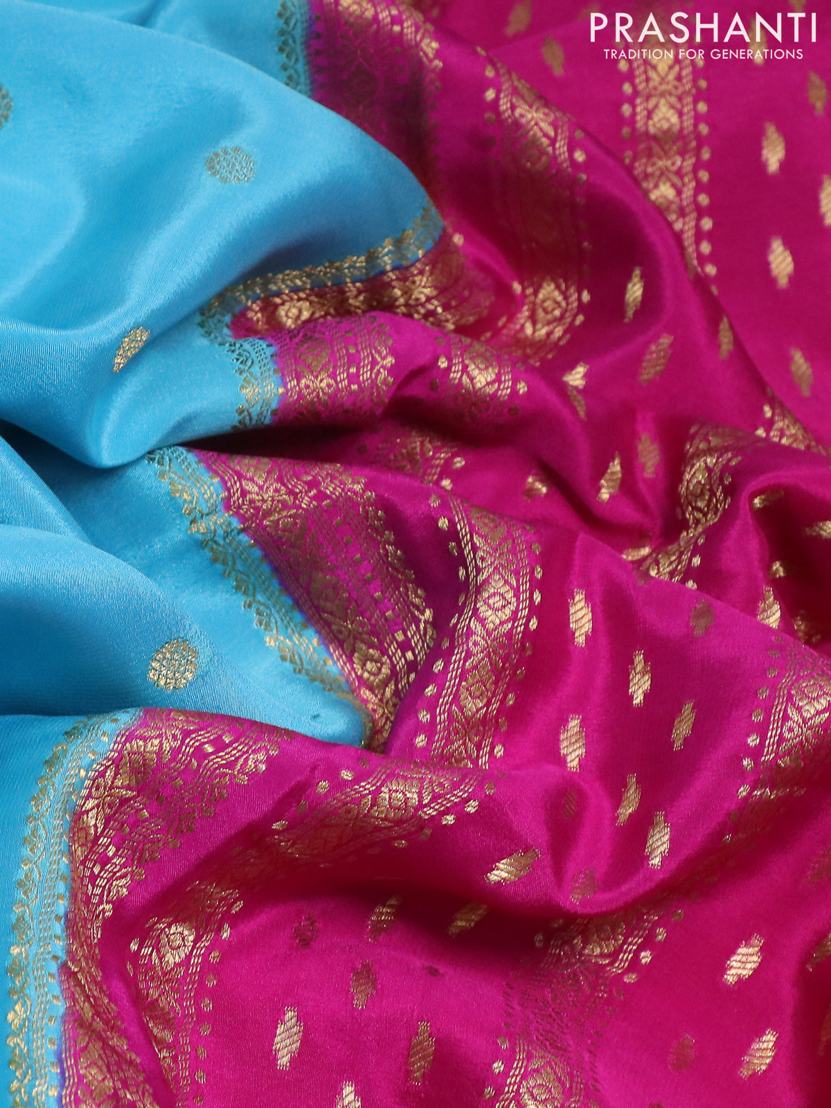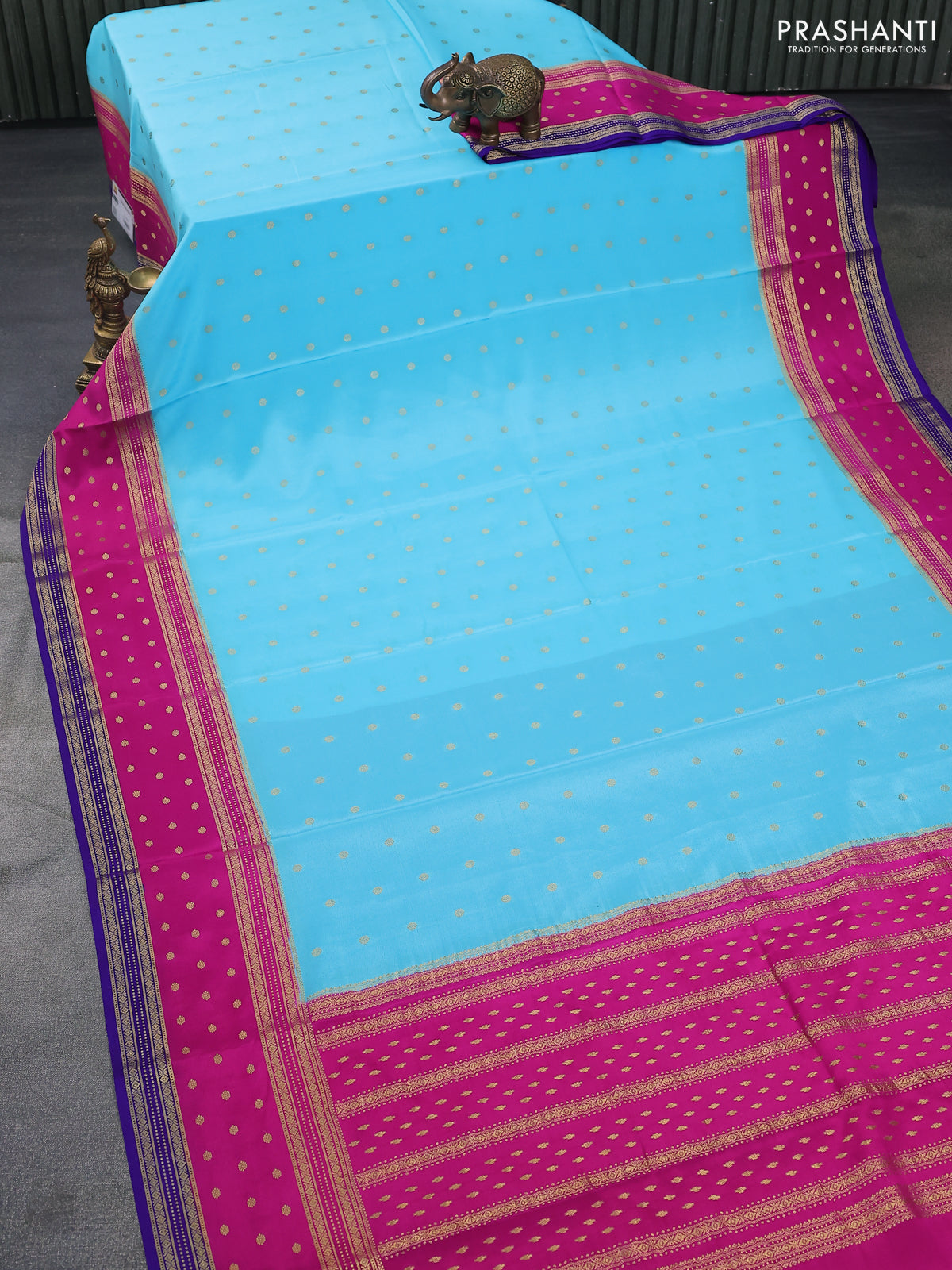 Pure mysore silk saree light blue and pink blue with zari woven buttas and long zari woven border