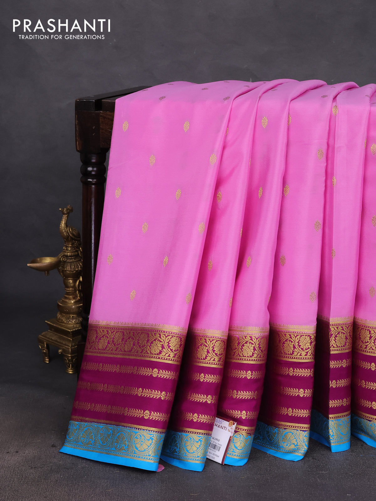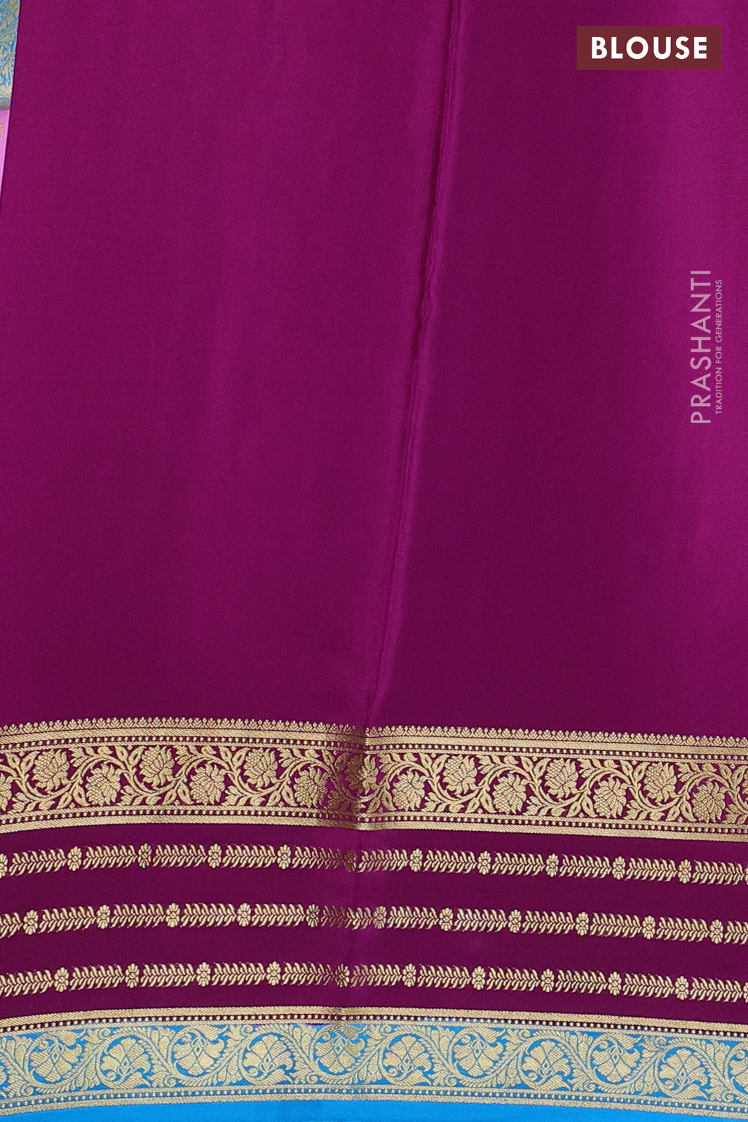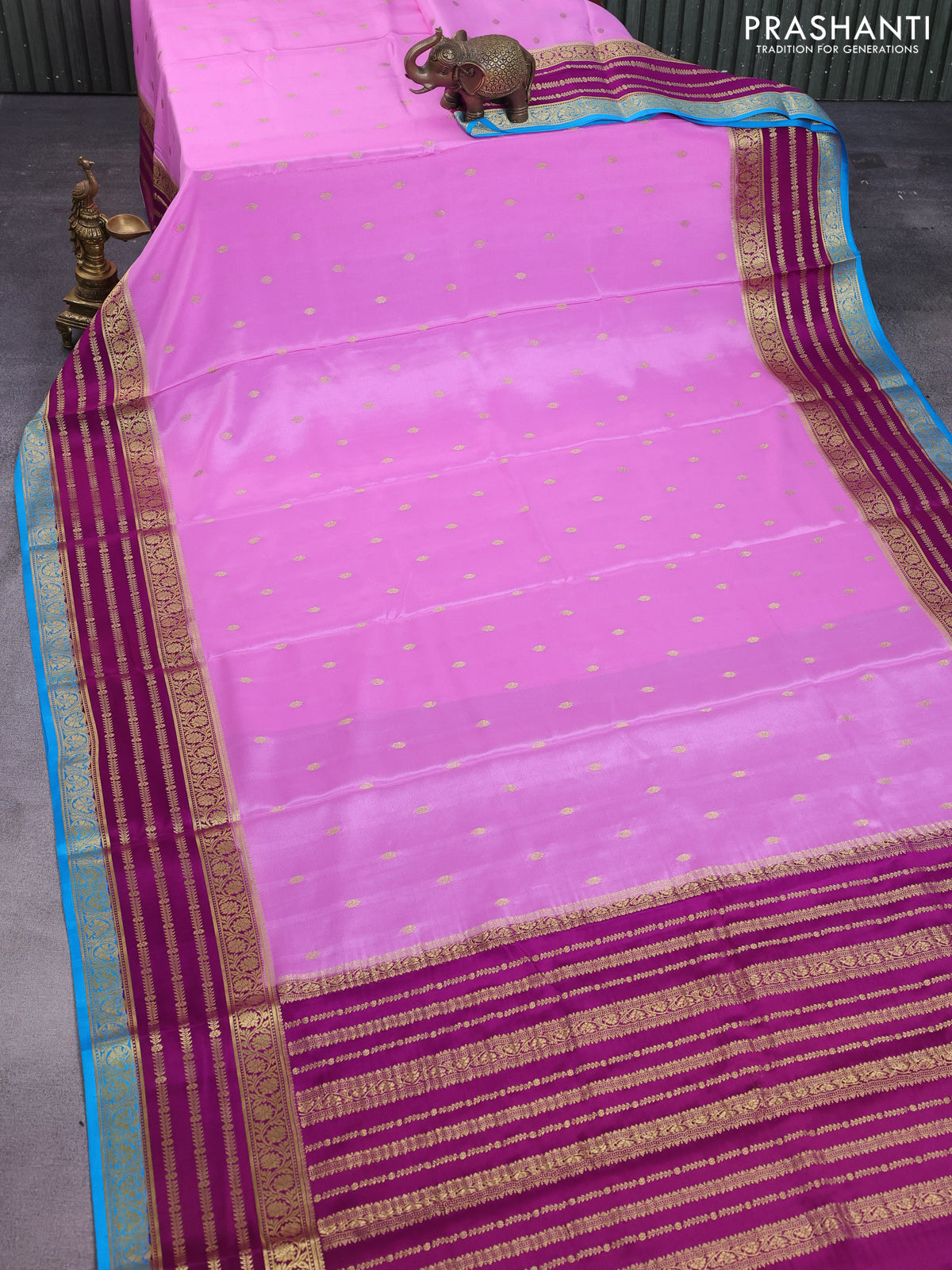 Pure mysore silk saree light blue and purple blue with zari woven buttas and long zari woven border