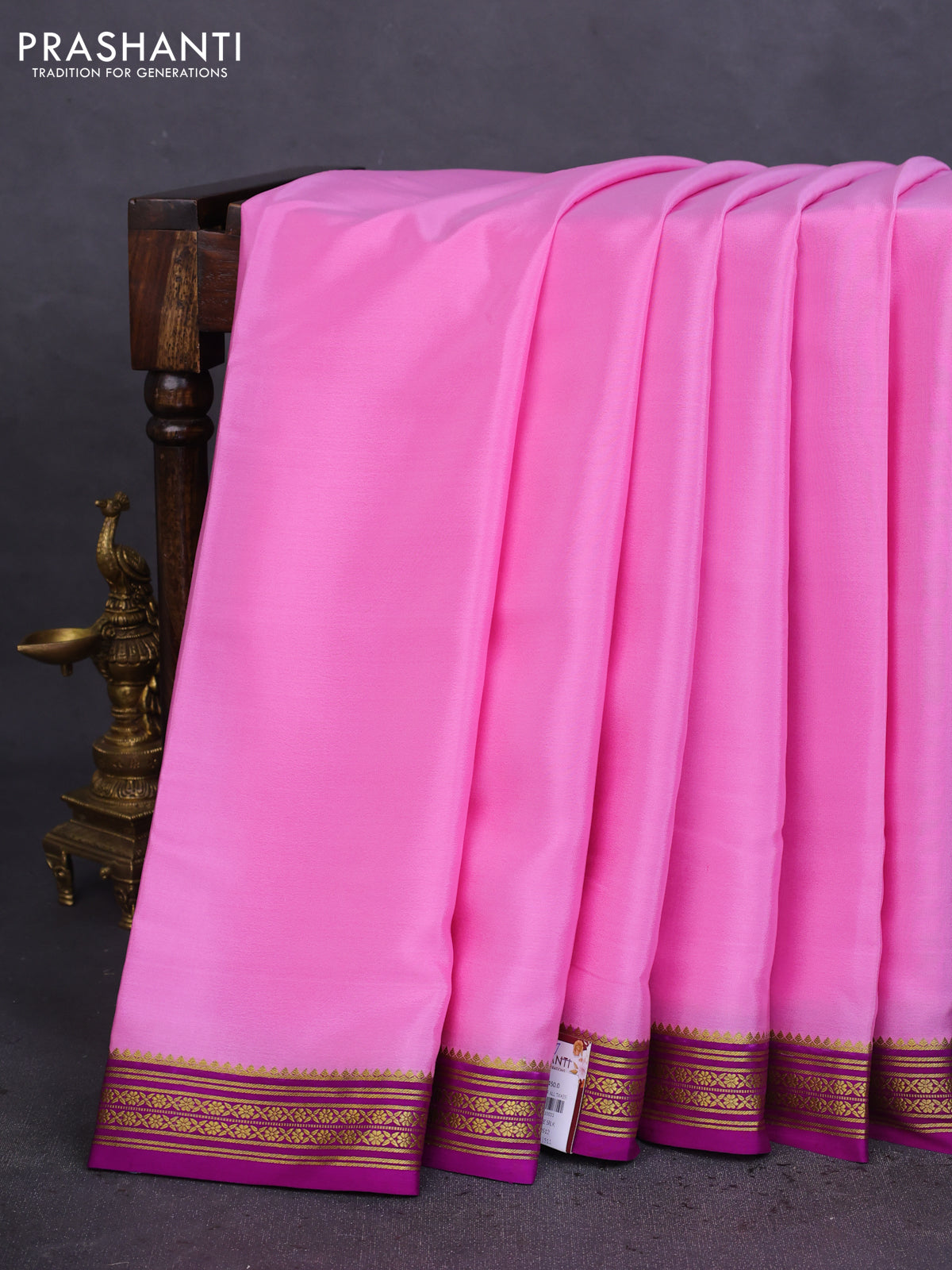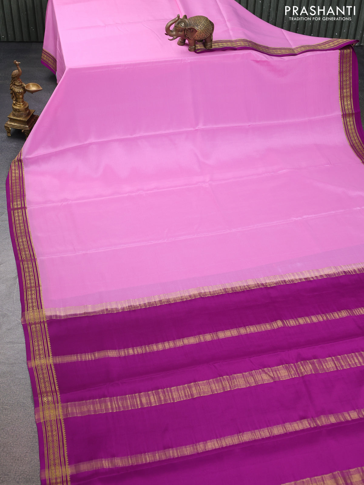 Pure mysore silk saree light pink and purple with plain body and zari woven border