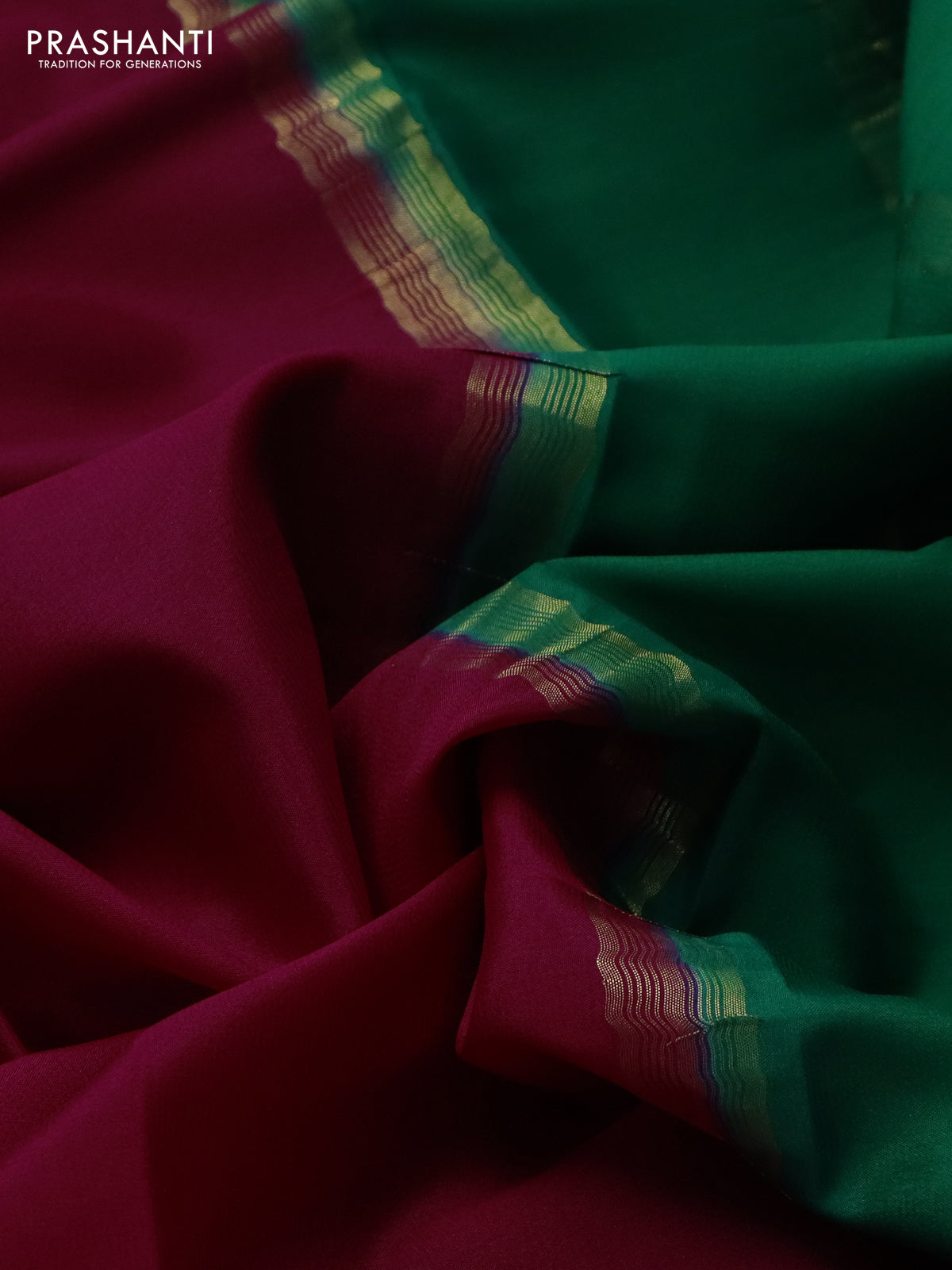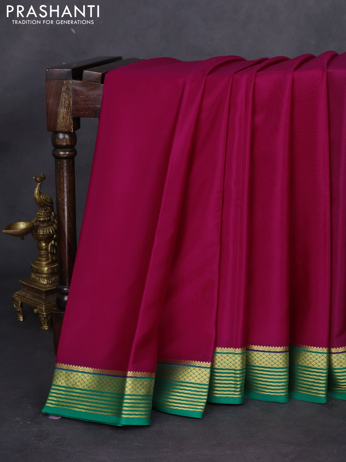 Pure mysore silk saree magenta pink and green with plain body and zari woven border
