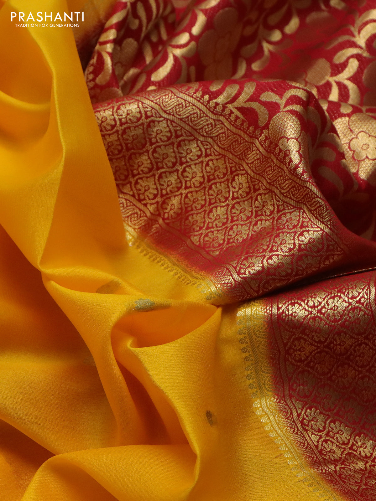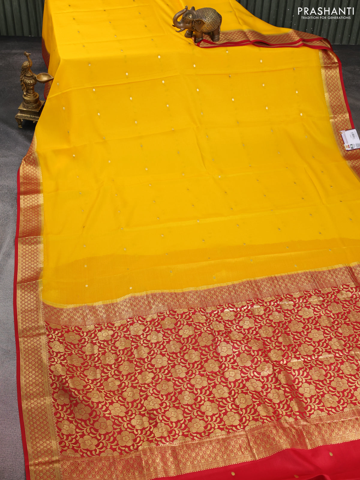 Pure mysore silk saree mango yellow and red with zari woven buttas and zari woven border