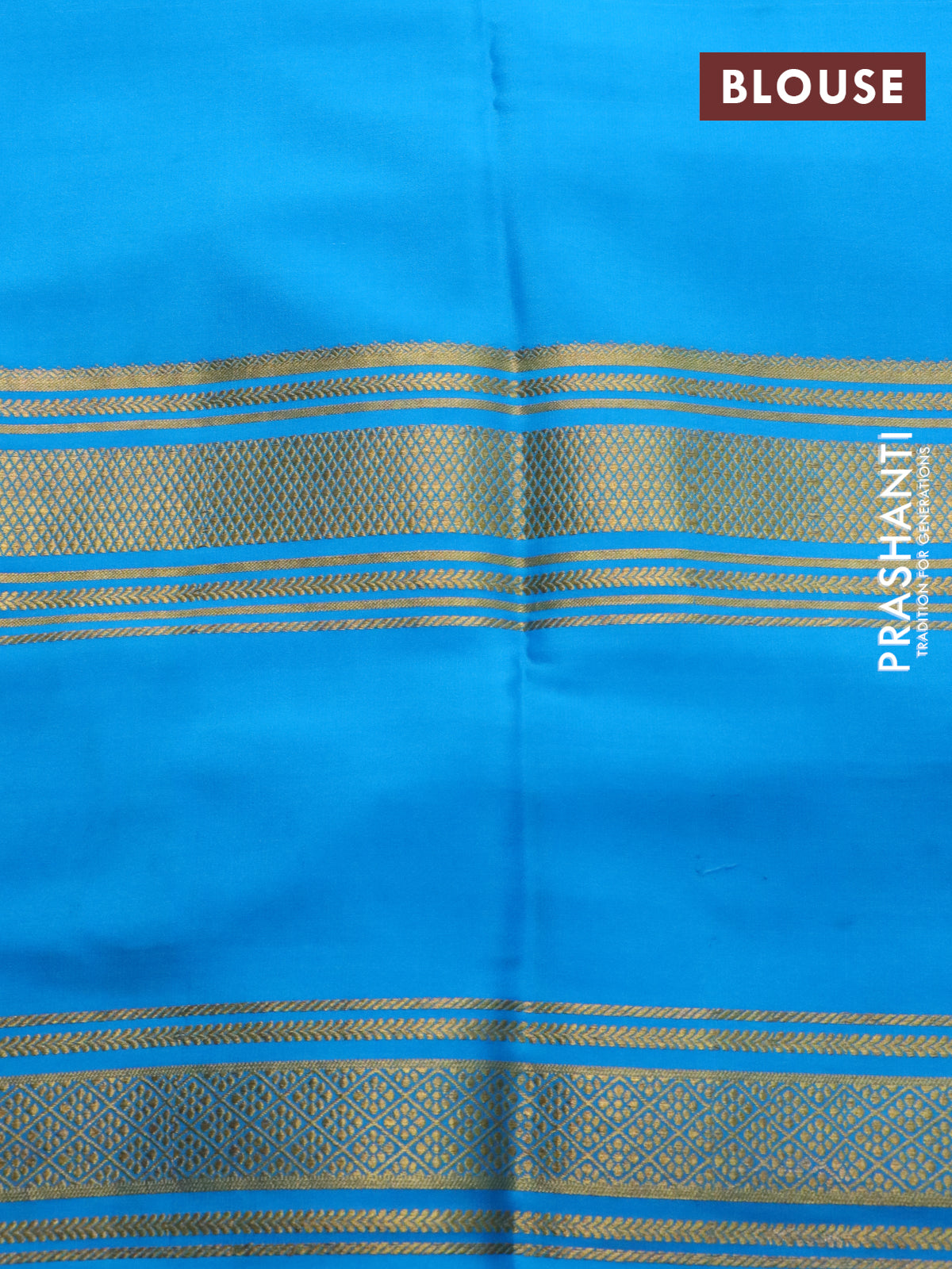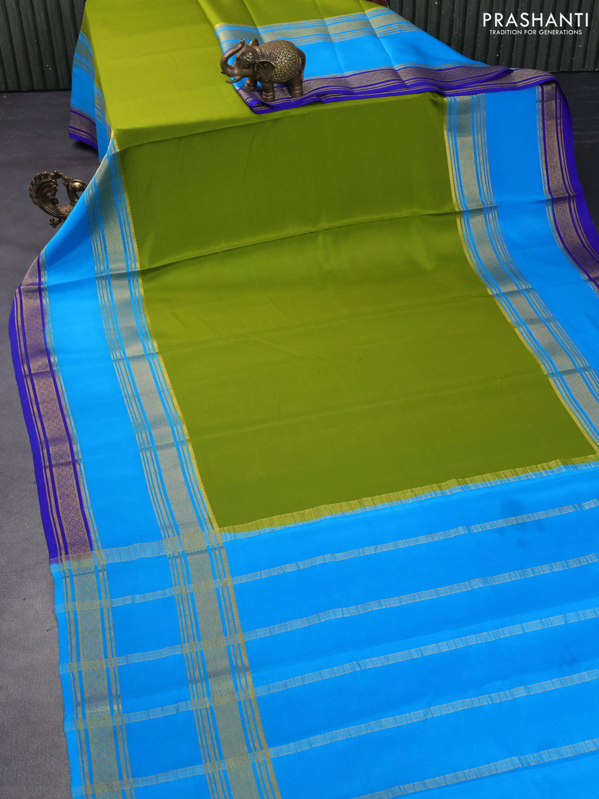 Pure mysore silk saree mehendi green and cs blue with plain body and long rettapet zari woven border