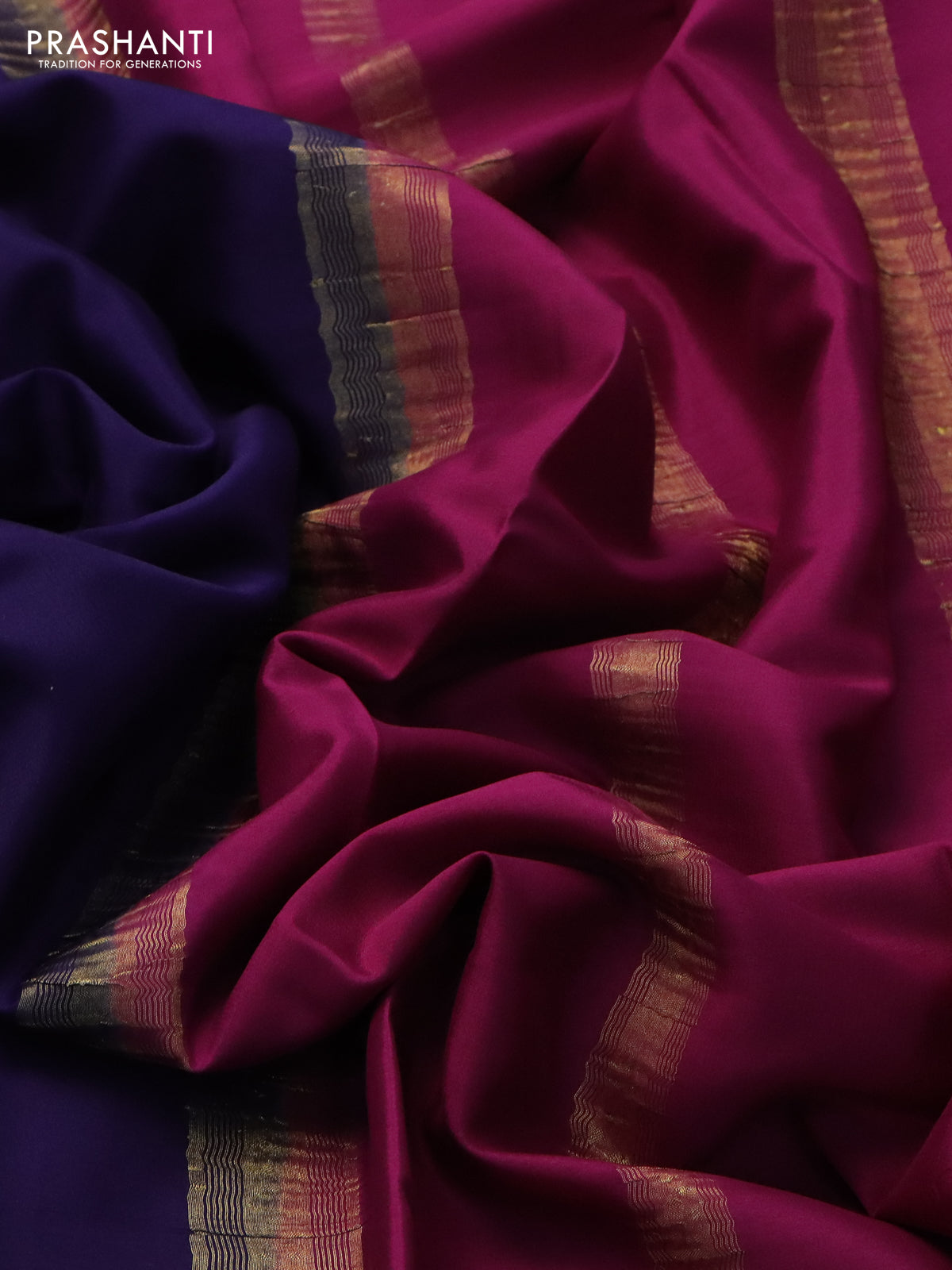 Pure mysore silk saree navy blue and magenta pink with plain body and zari woven border