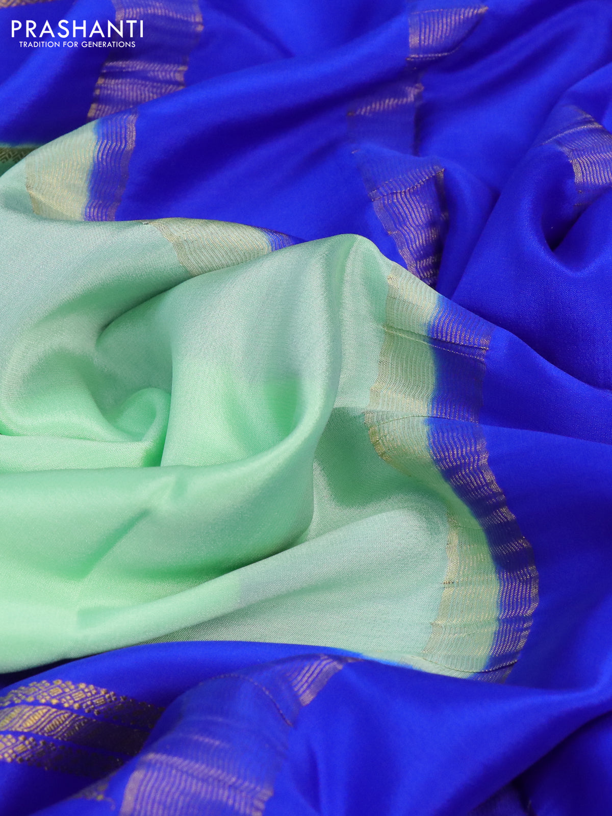 Pure mysore silk saree pastel green and blue red with plain body and rettapet zari woven border