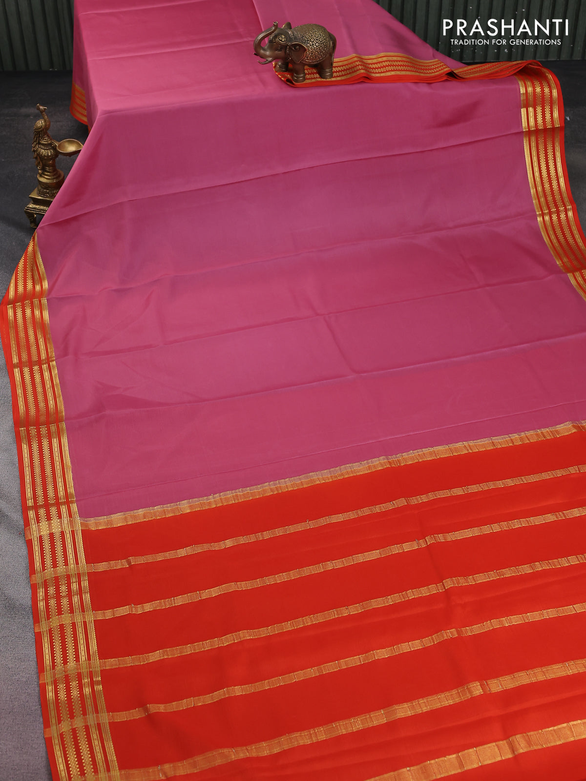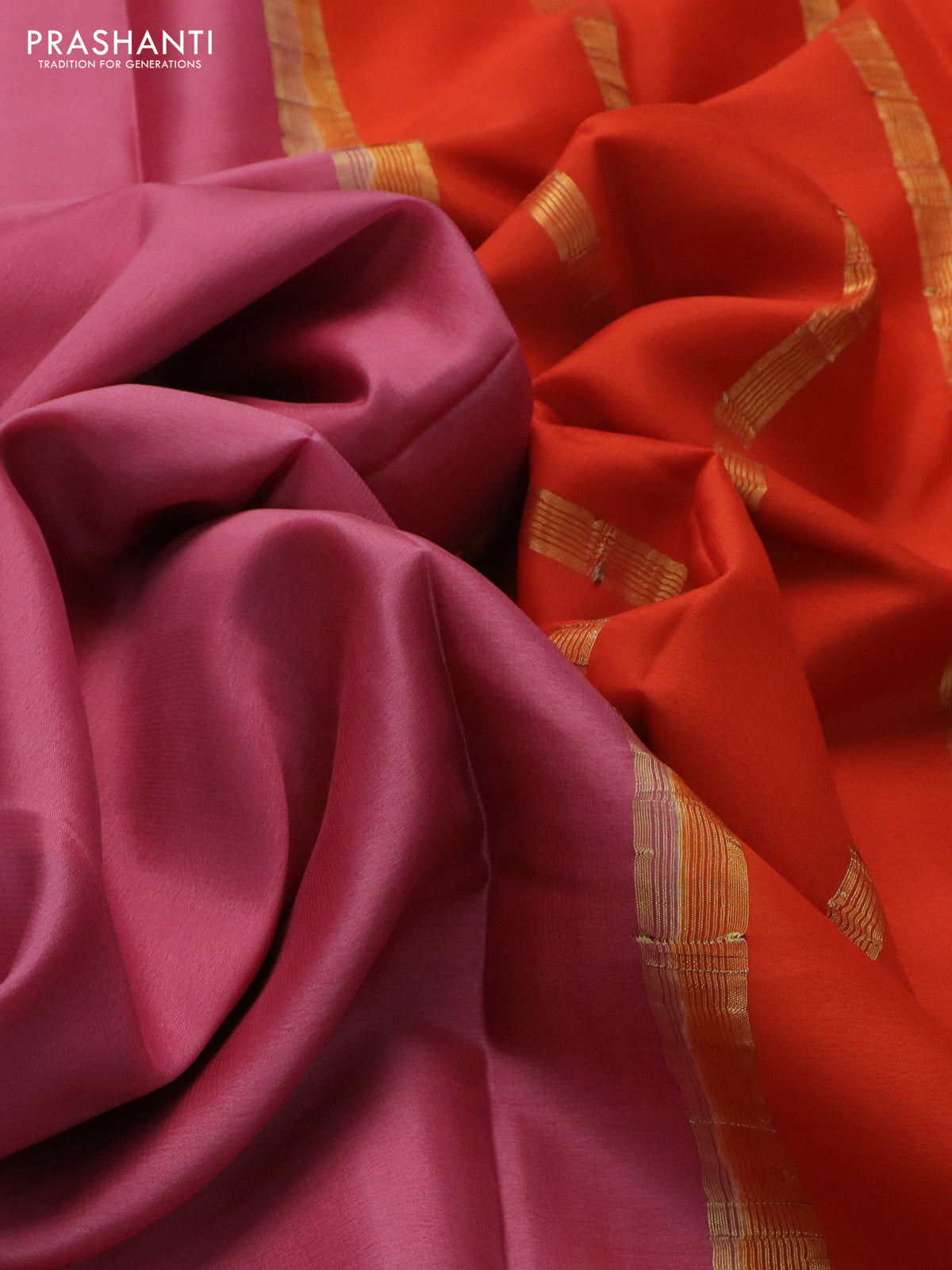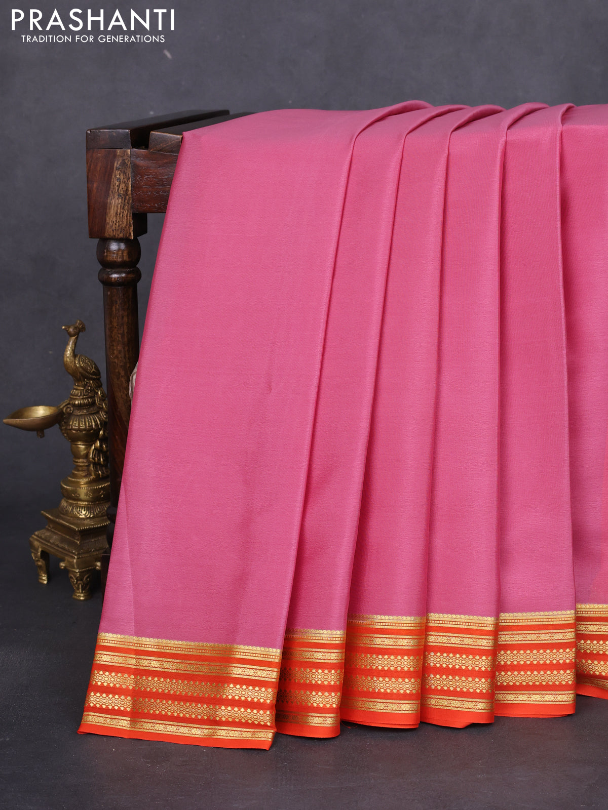 Pure mysore silk saree pastel pink and orange with plain body and zari woven border