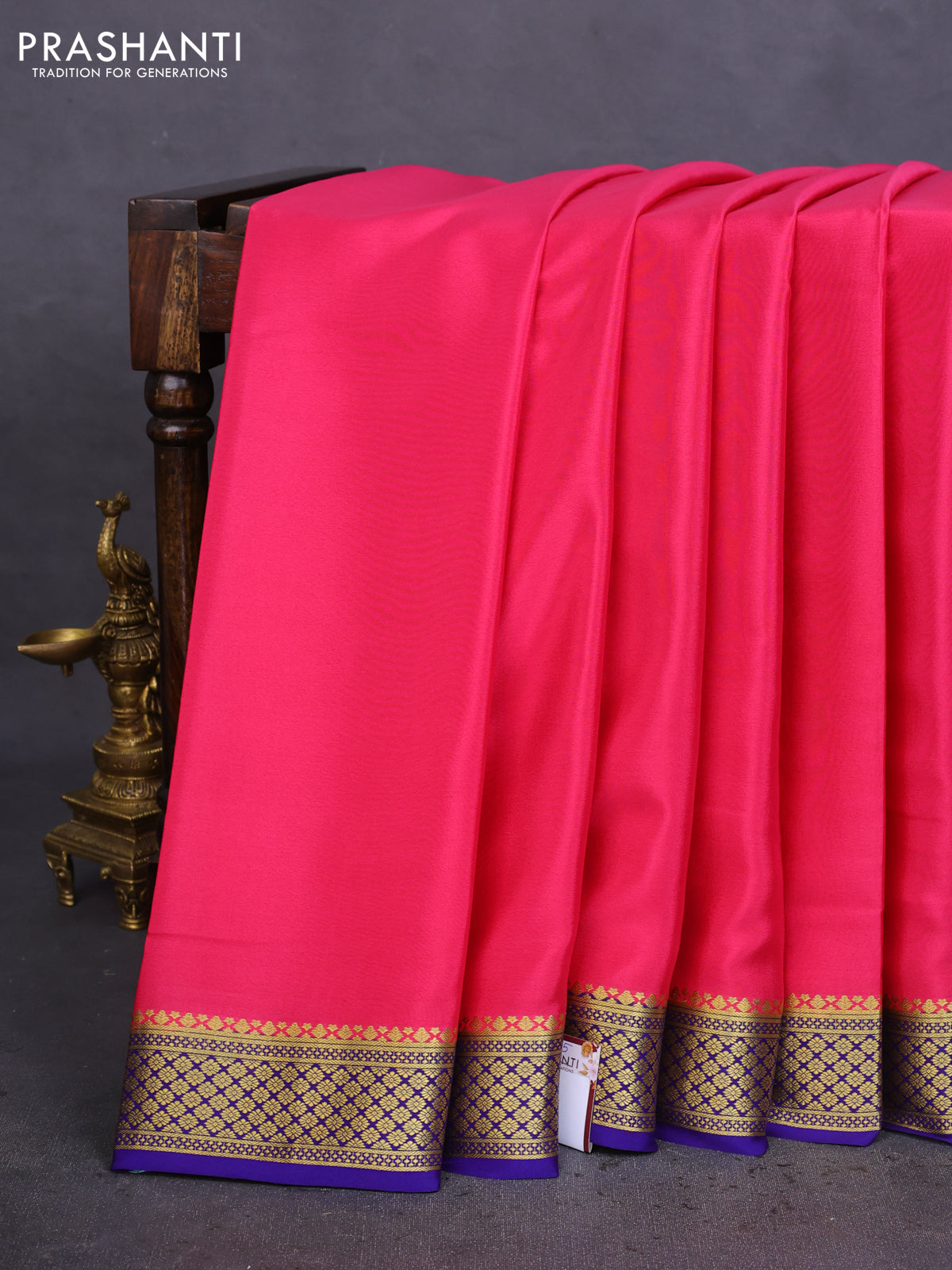 Pure mysore silk saree pink and blue with plain body and zari woven border
