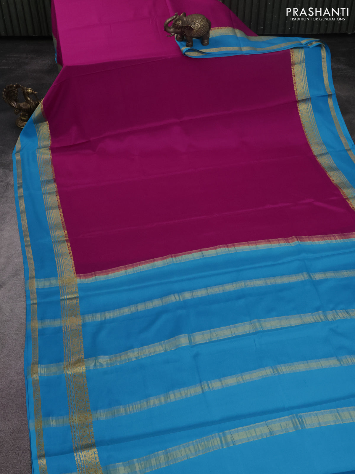 Pure mysore silk saree pink and cs blue with plain body and zari woven border