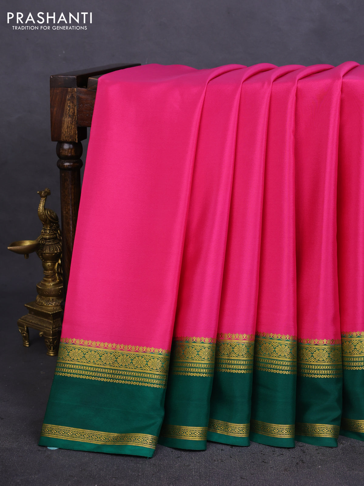 Pure mysore silk saree pink and green with plain body and rettapet zari woven border