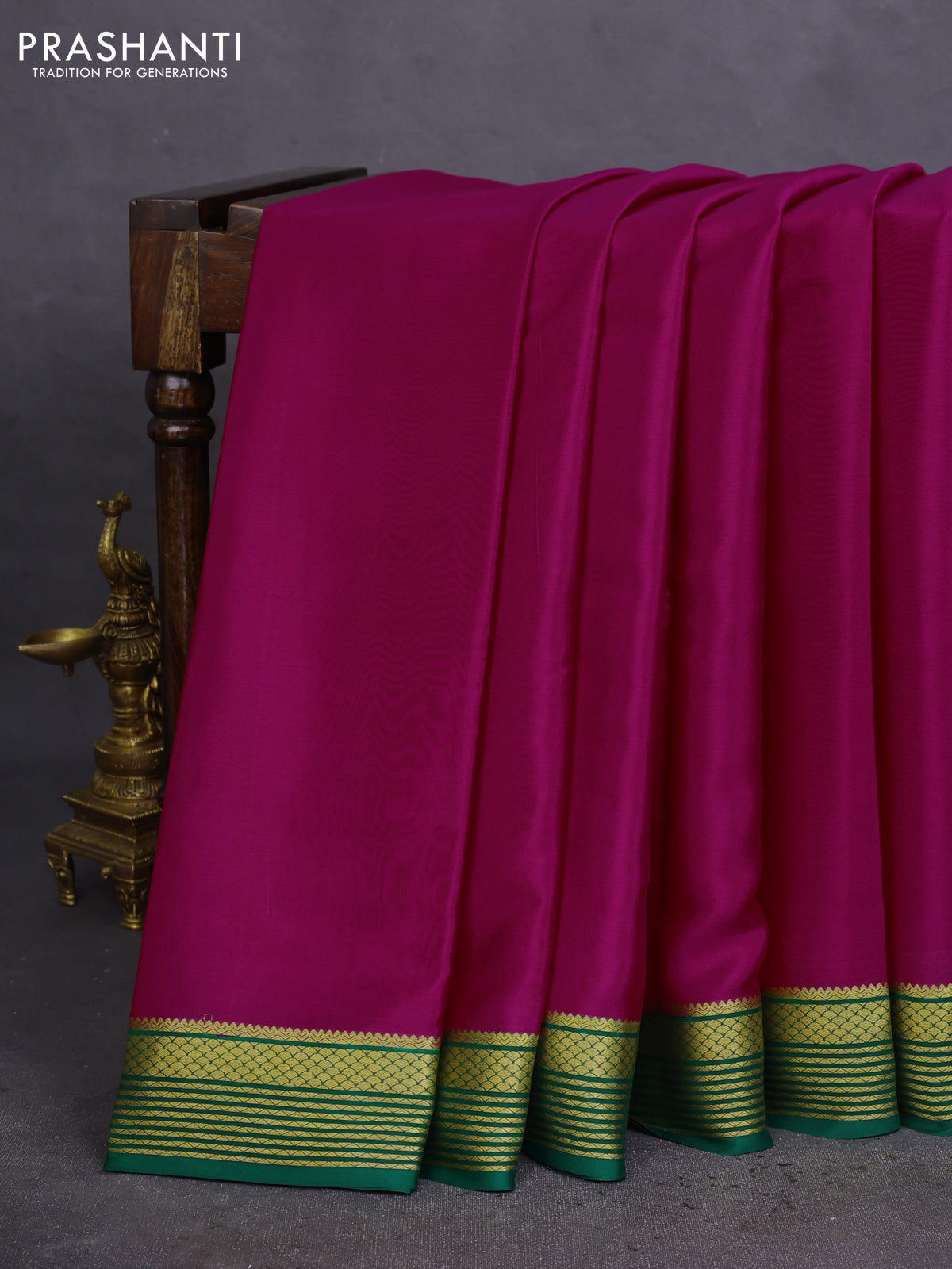 Pure mysore silk saree pink and green with plain body and zari woven border