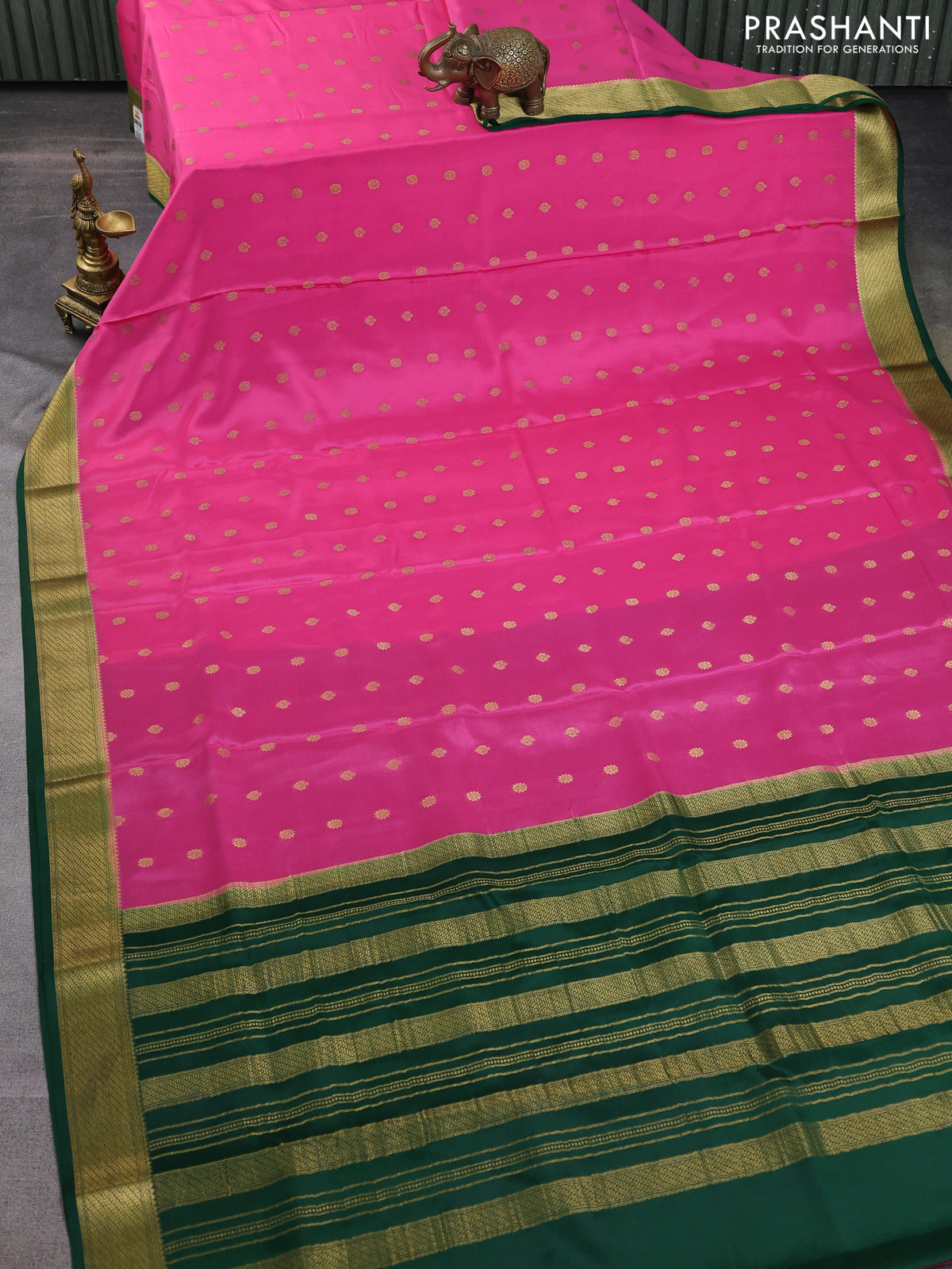 Pure mysore silk saree pink and green with zari woven buttas and zari woven border