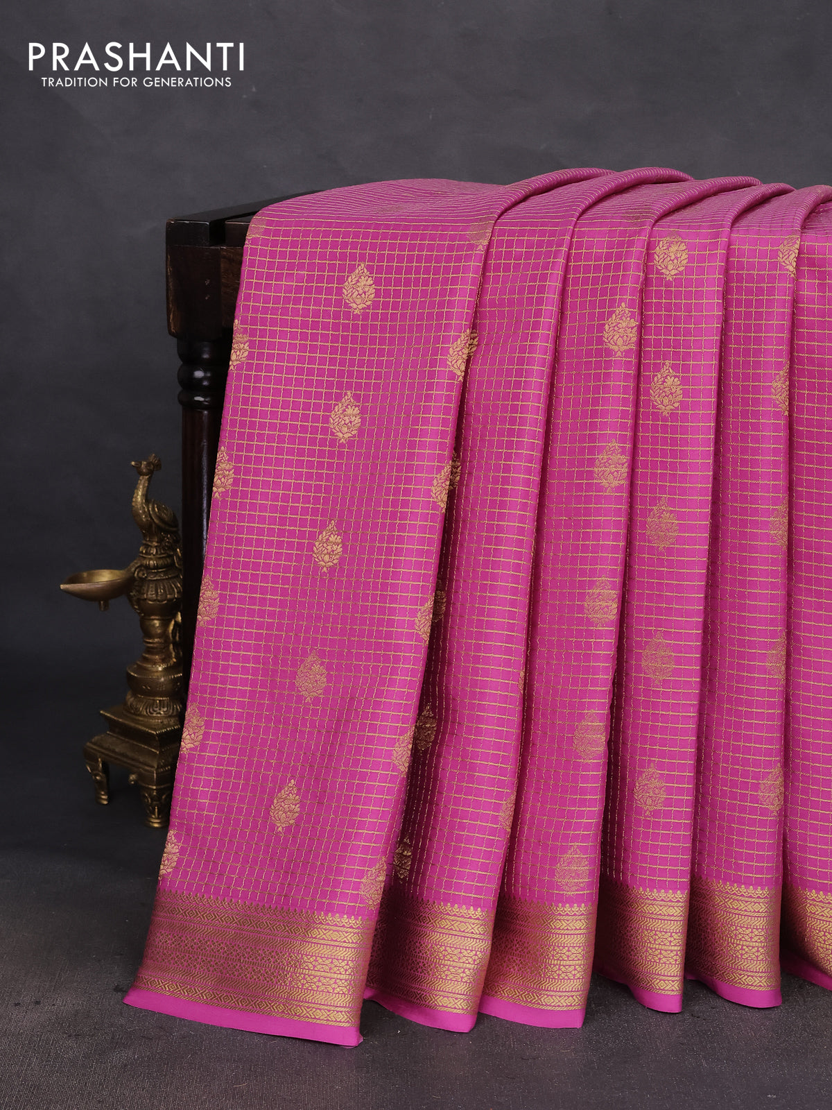 Pure mysore silk saree pink with allover small zari checks & buttas and zari woven border