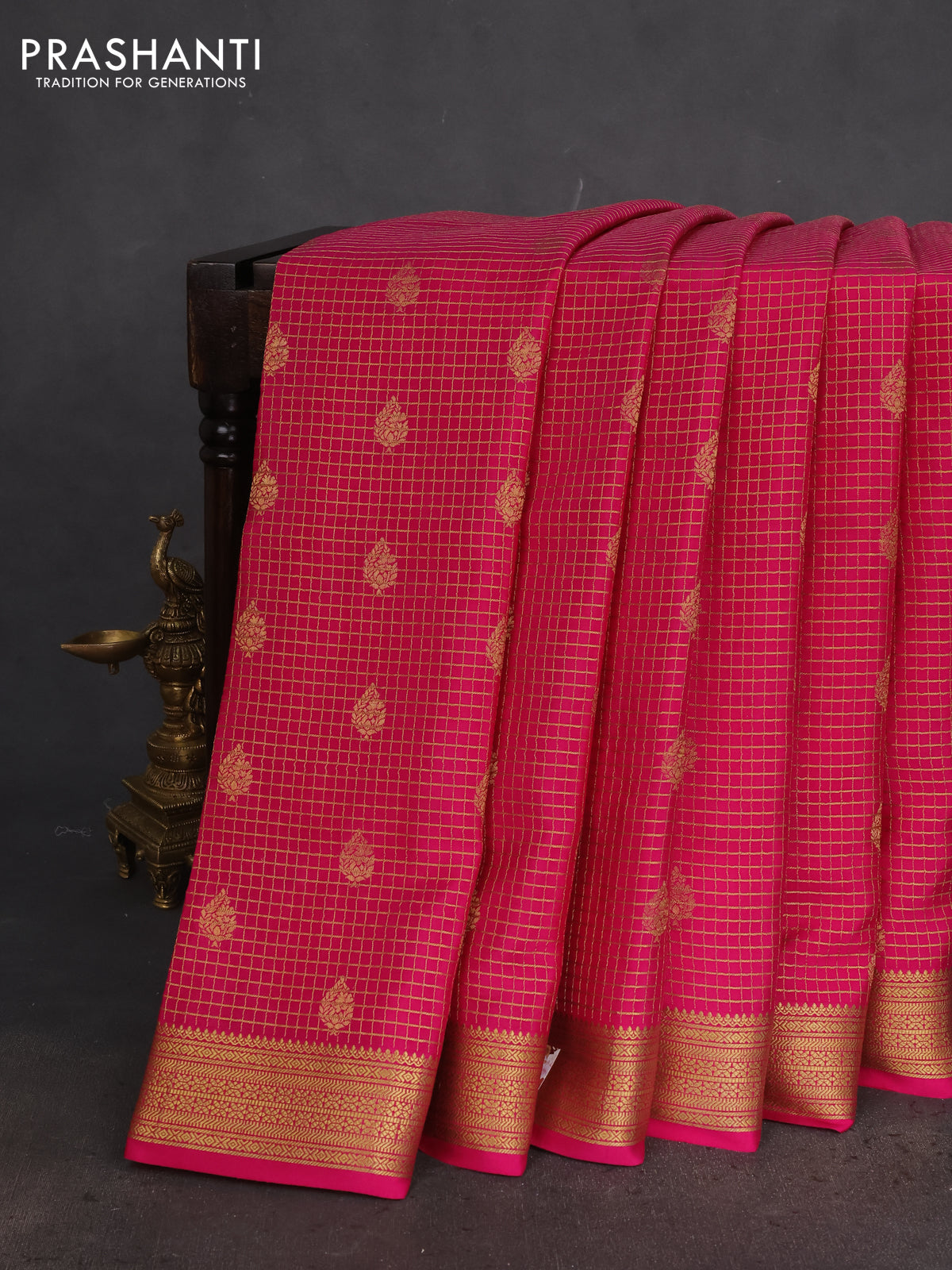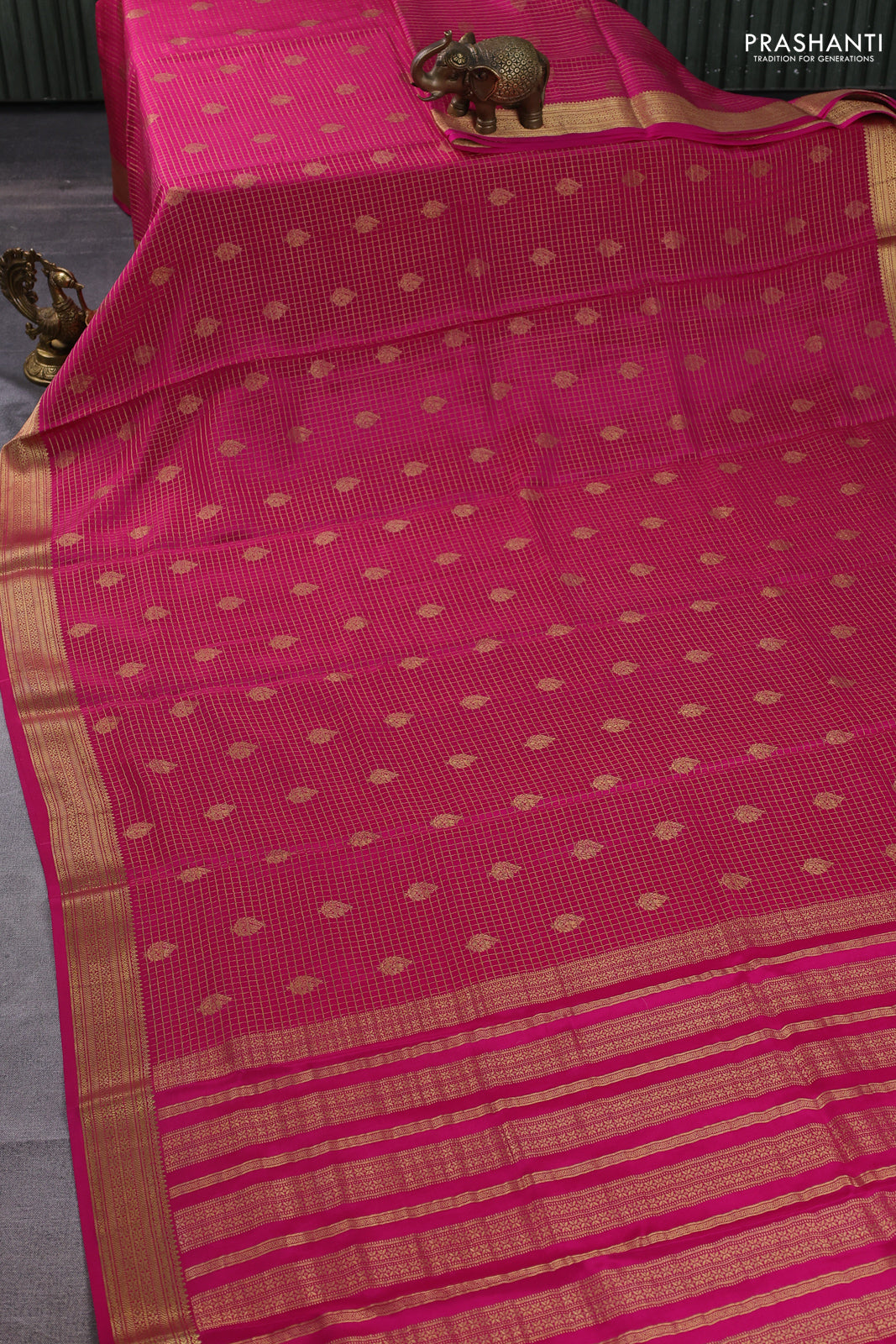 Pure mysore silk saree pink with allover small zari checks & buttas and zari woven border