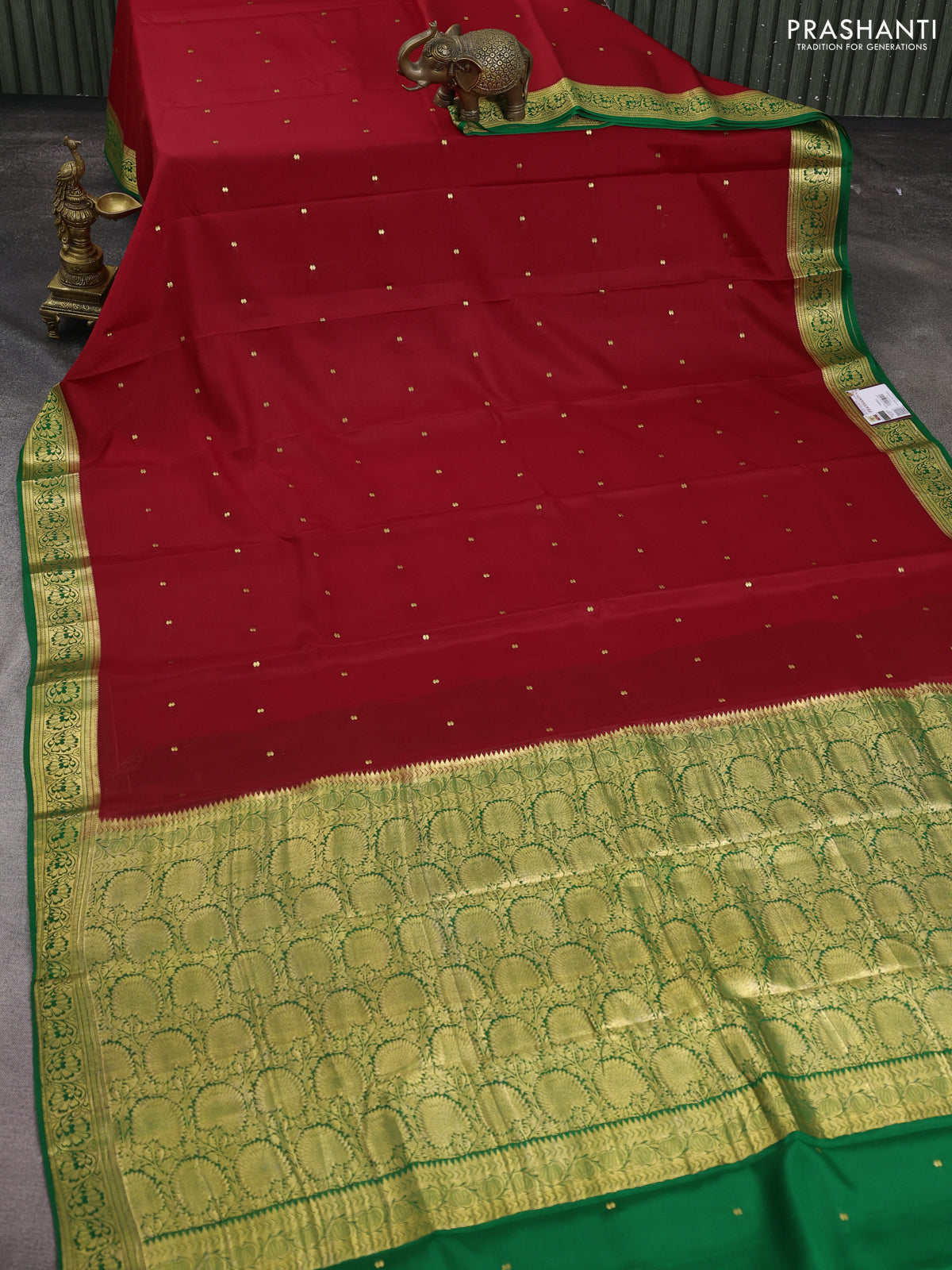 Pure mysore silk saree red and green with allover zari woven buttas and zari woven floral border