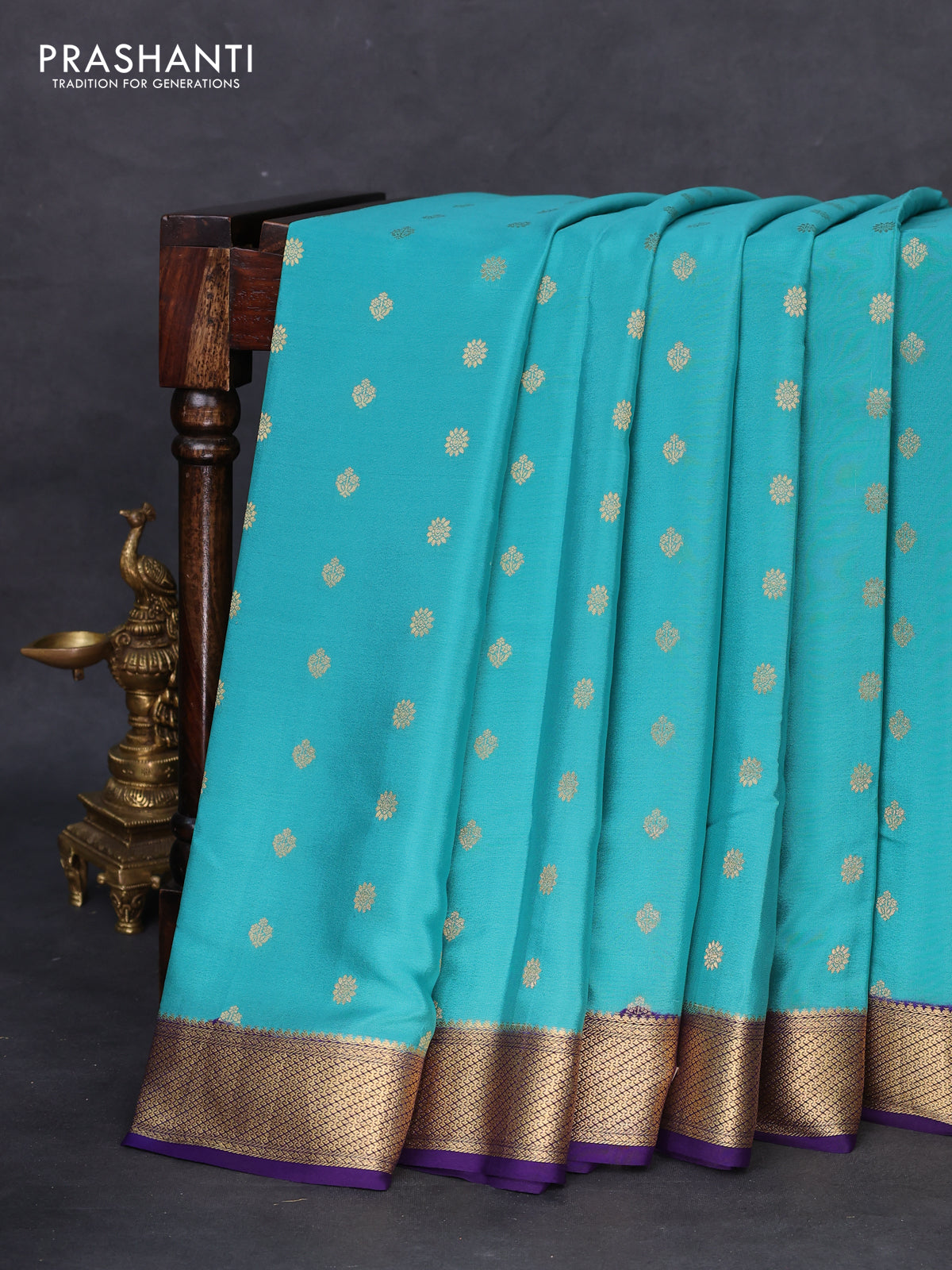 Pure mysore silk saree teal blue and navy blue with zari woven buttas and zari woven border