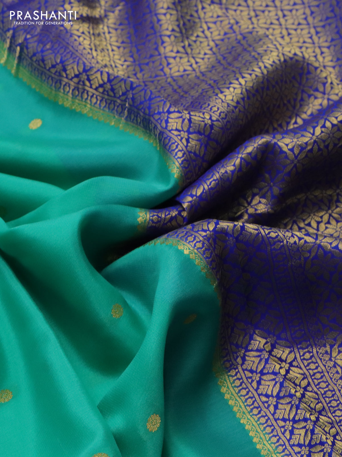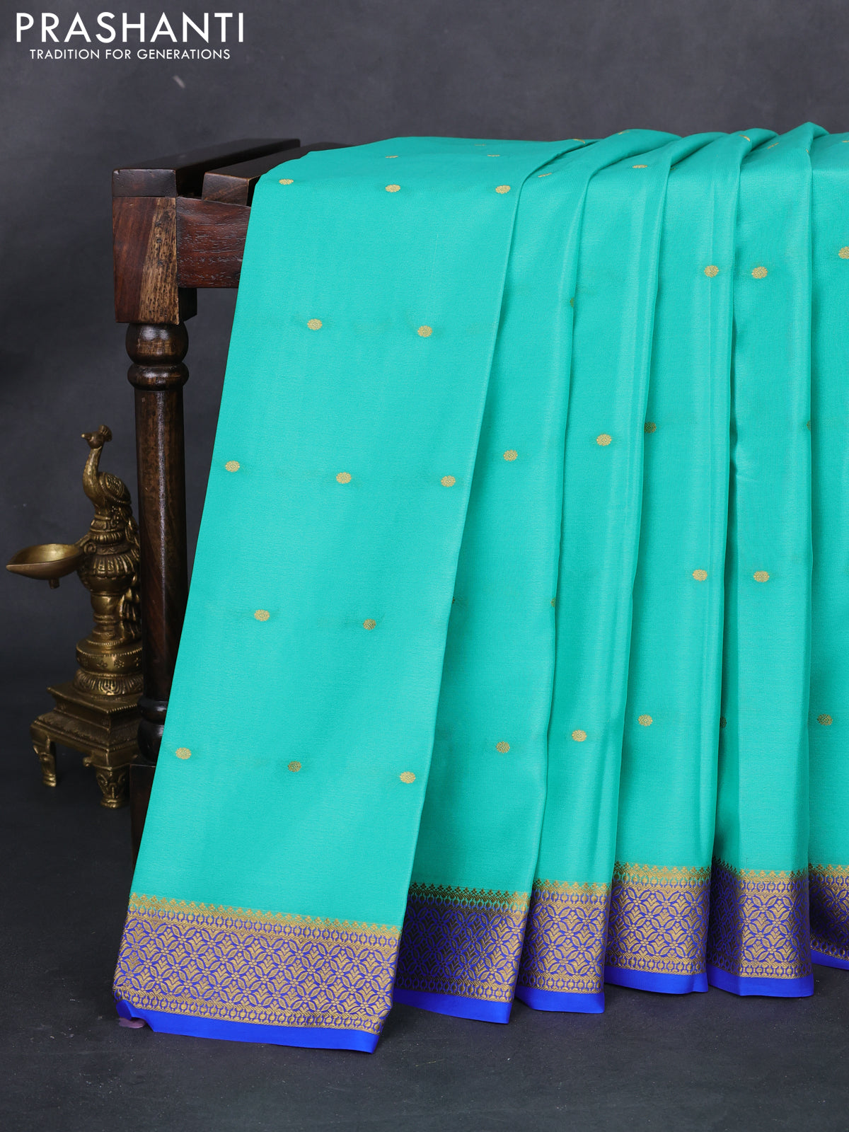 Pure mysore silk saree teal green and royal blue with zari woven buttas and zari woven border