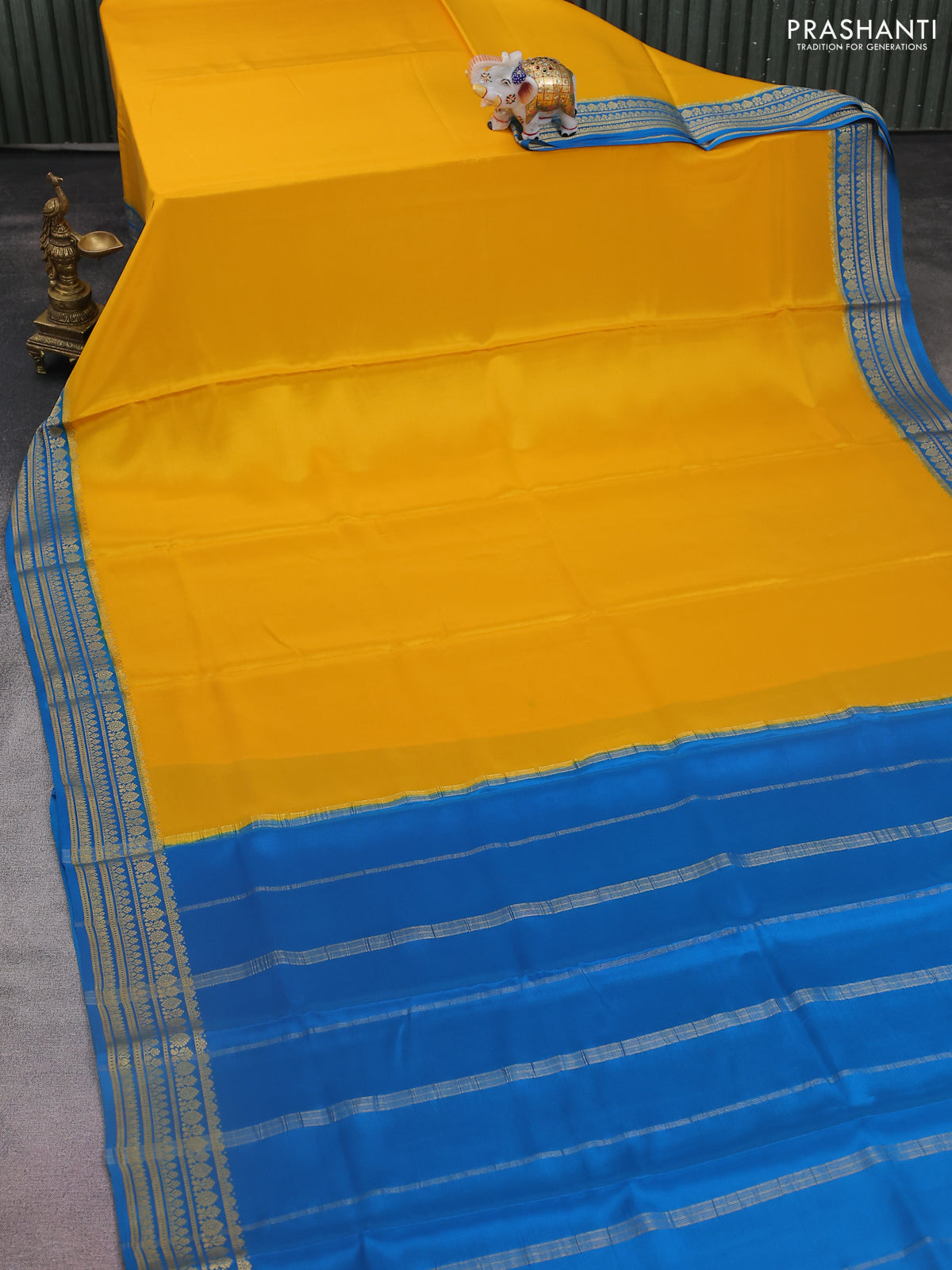 Pure mysore silk saree yellow and cs blue with palin body and zari woven border