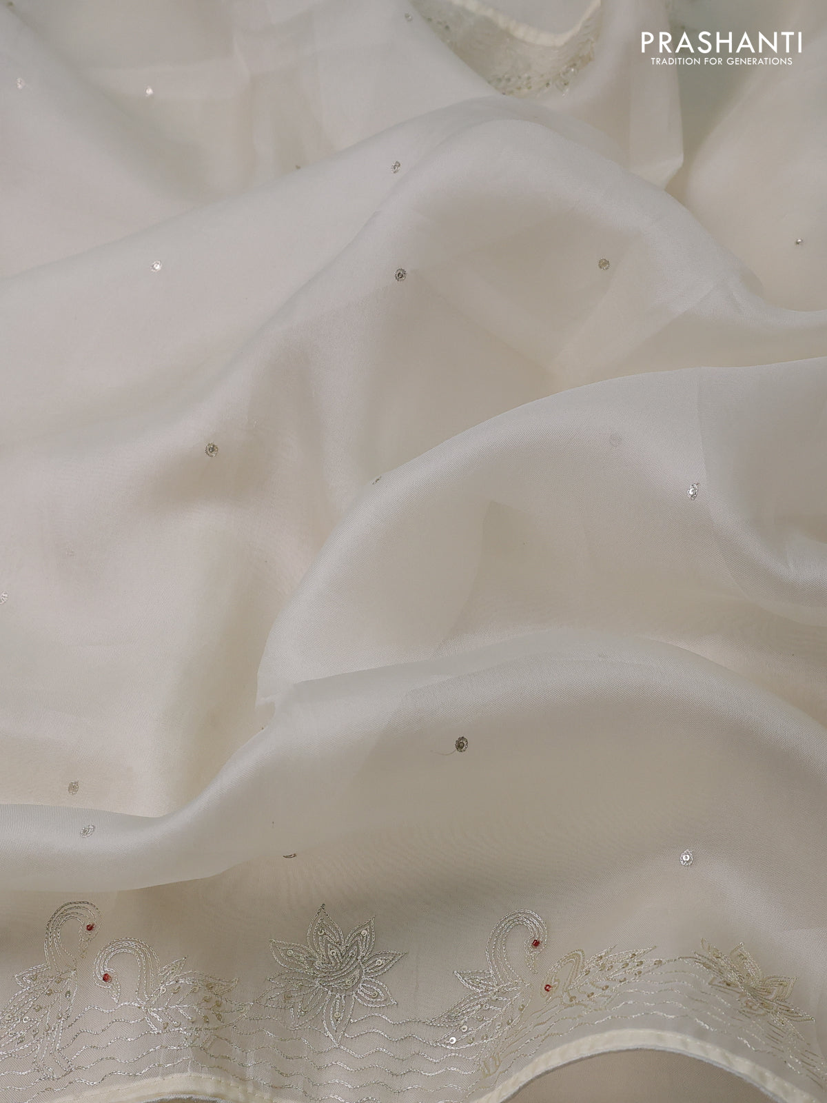 Pure organza silk saree cream with sequin work and zari woven border