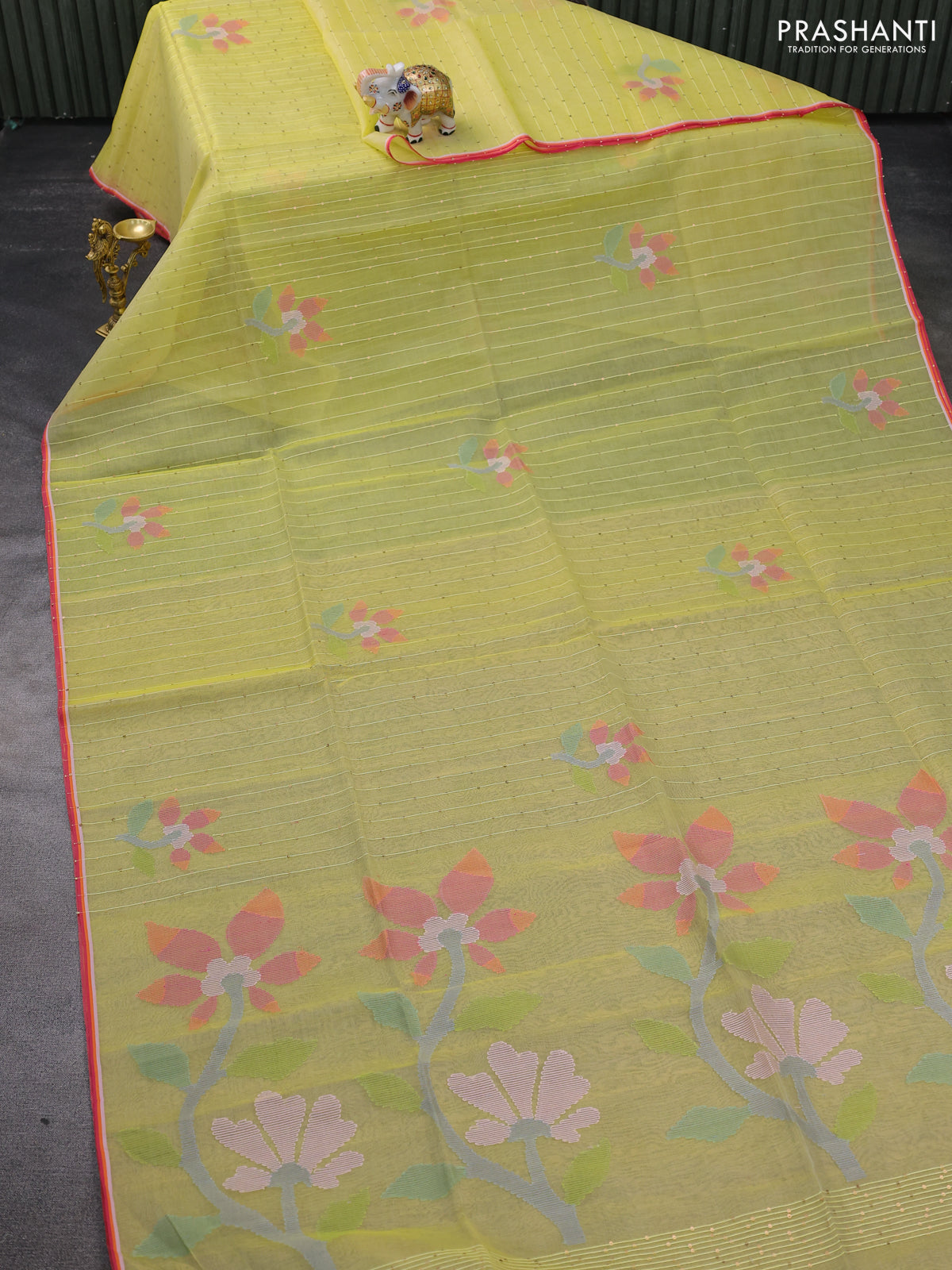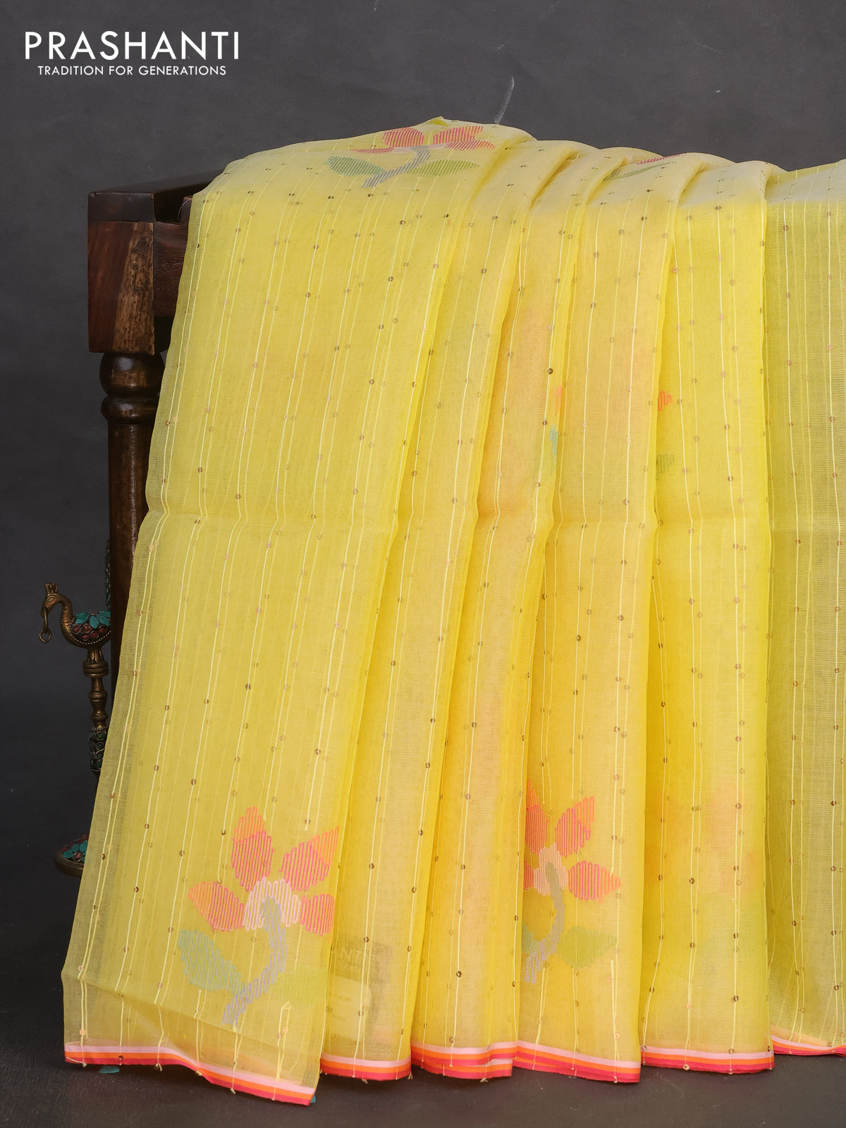 Pure organza silk saree yellow and with allover sequin work & jamdhani buttas and jamdhani design pallu