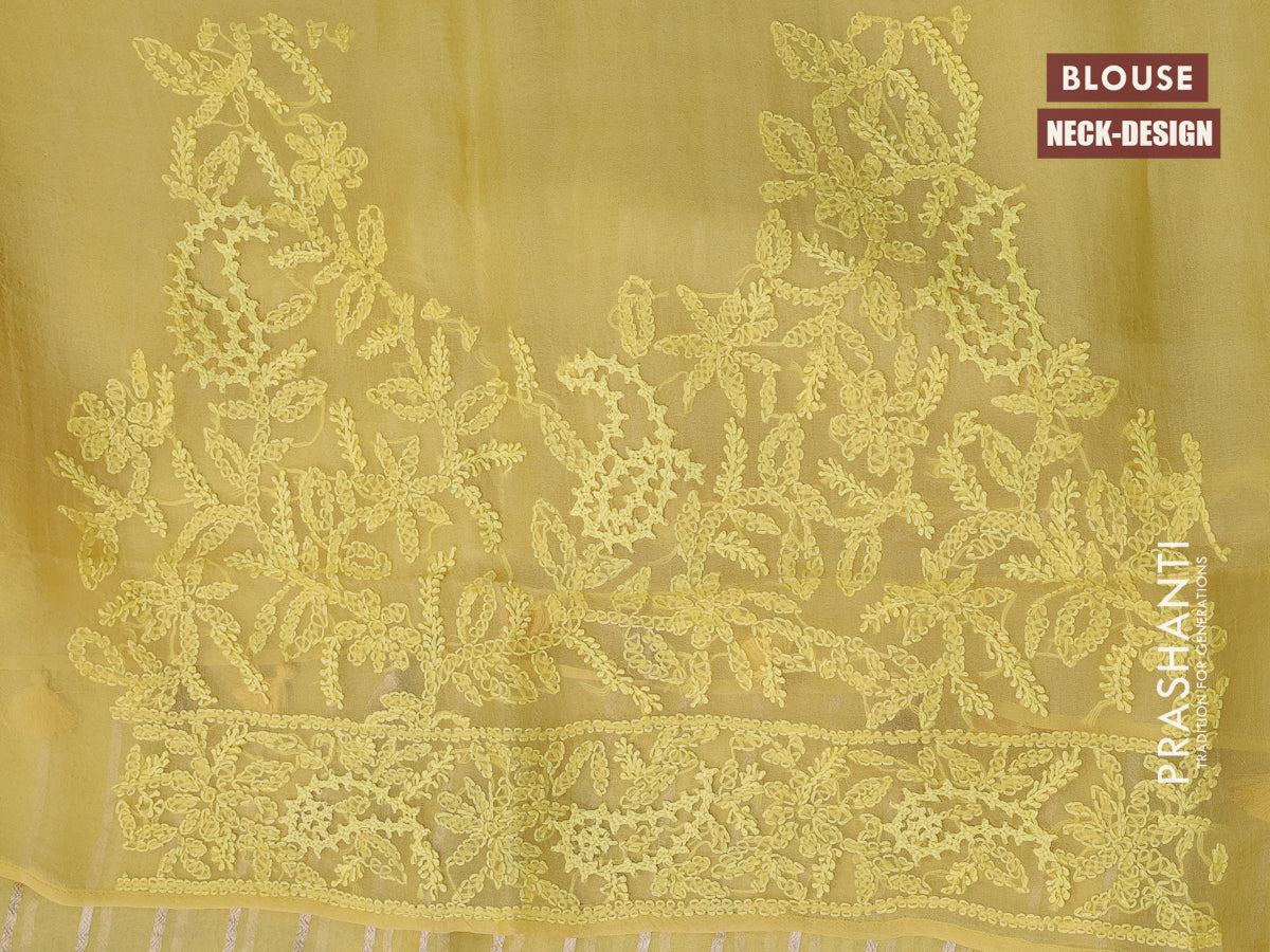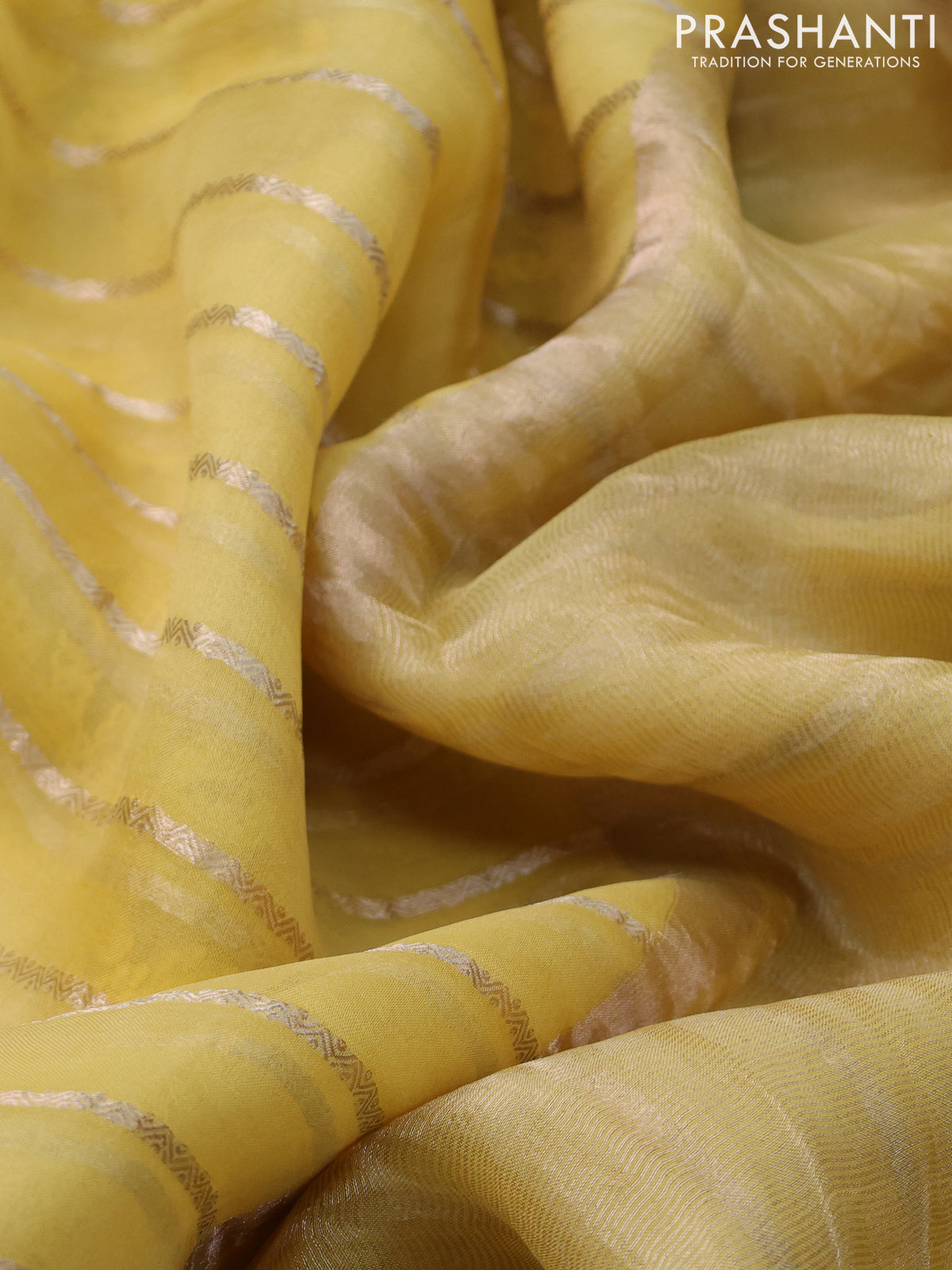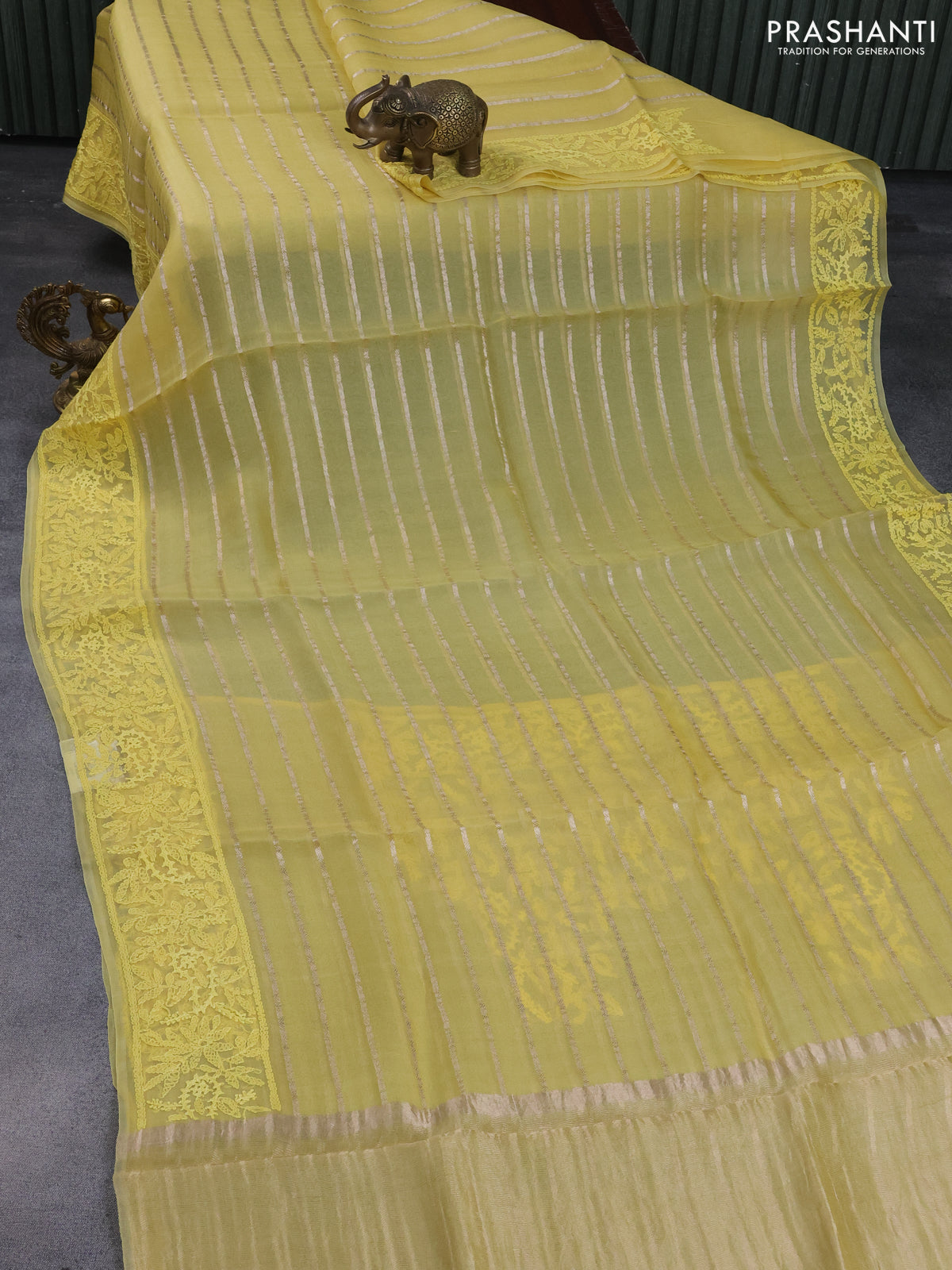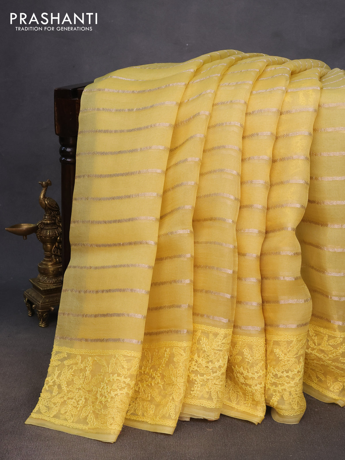 Pure organza silk saree yellow with allover zari weaves and embroidery work border