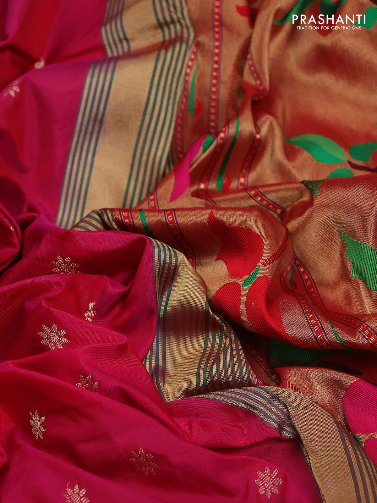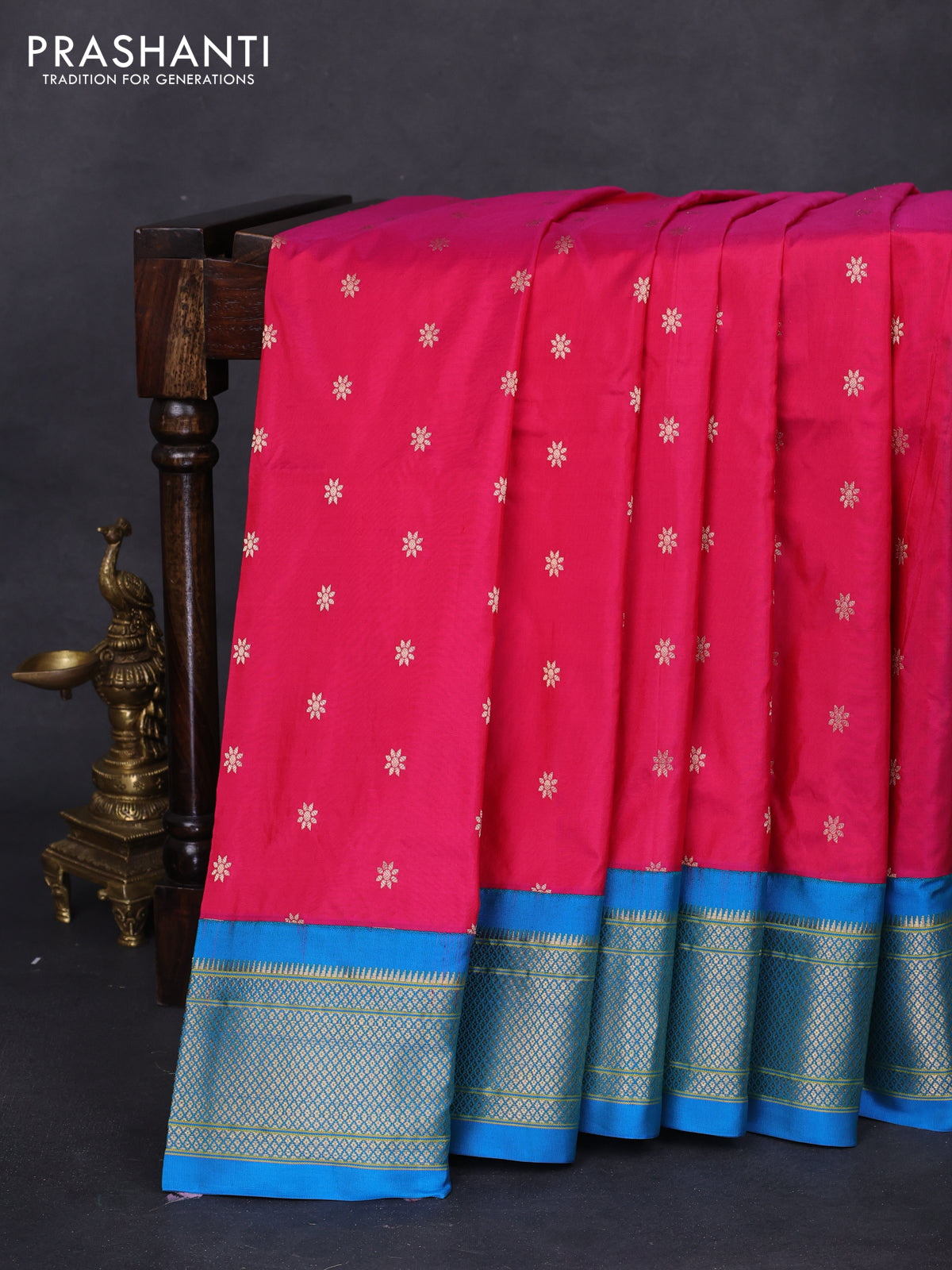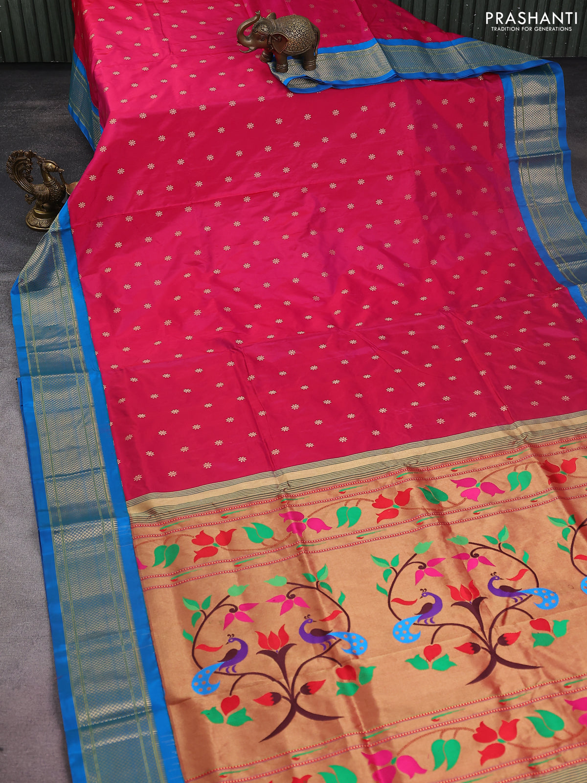 Pure paithani silk saree pink and blue with allover zari woven buttas and paithani weaving pallu