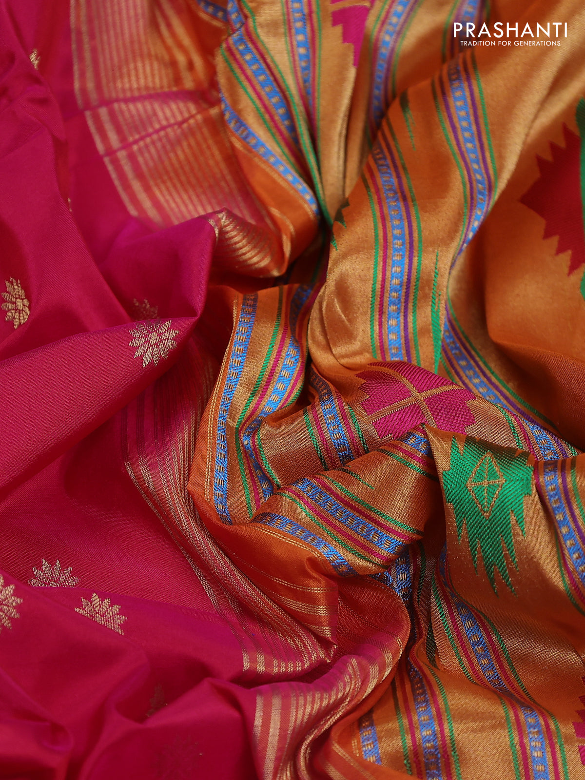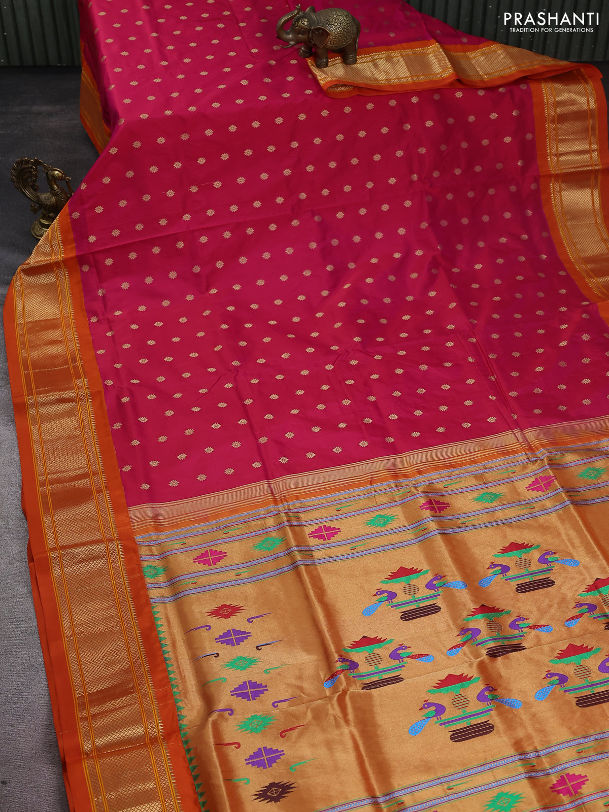 Pure paithani silk saree pink and orange with allover zari woven floral buttas and paithani weaving pallu