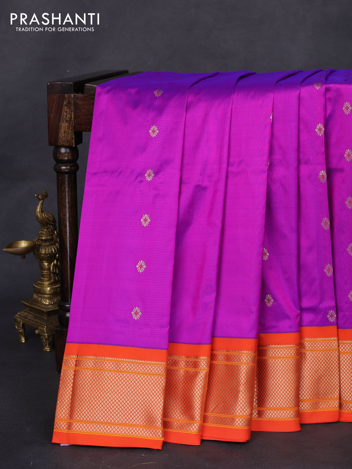 Pure paithani silk saree purple and orange with allover zari woven buttas and paithani weaving pallu