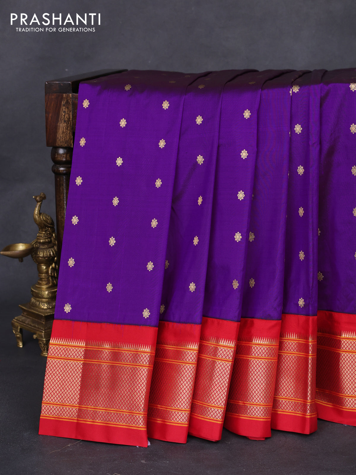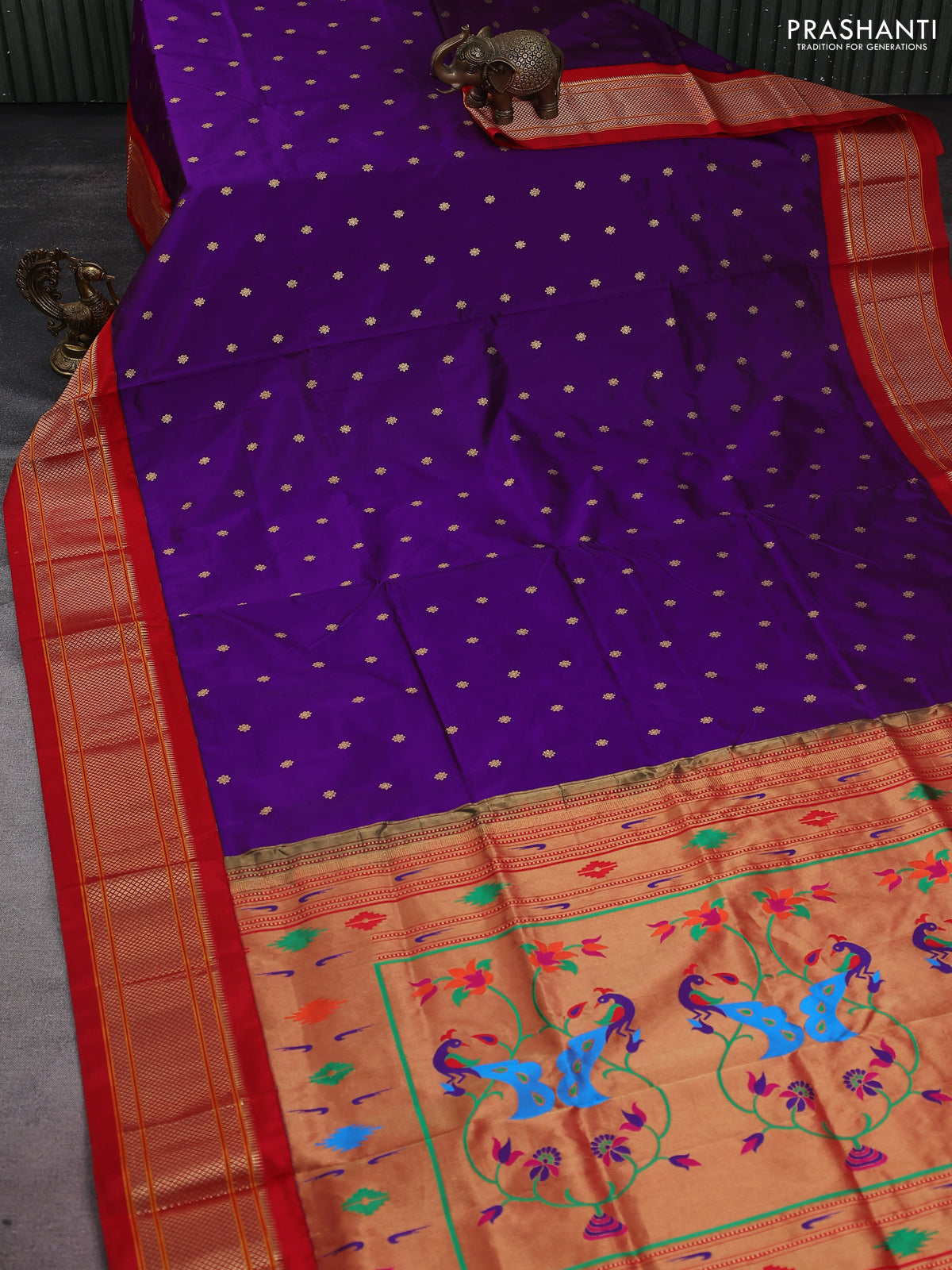 Pure paithani silk saree purple and red with allover zari woven buttas and paithani weaving pallu