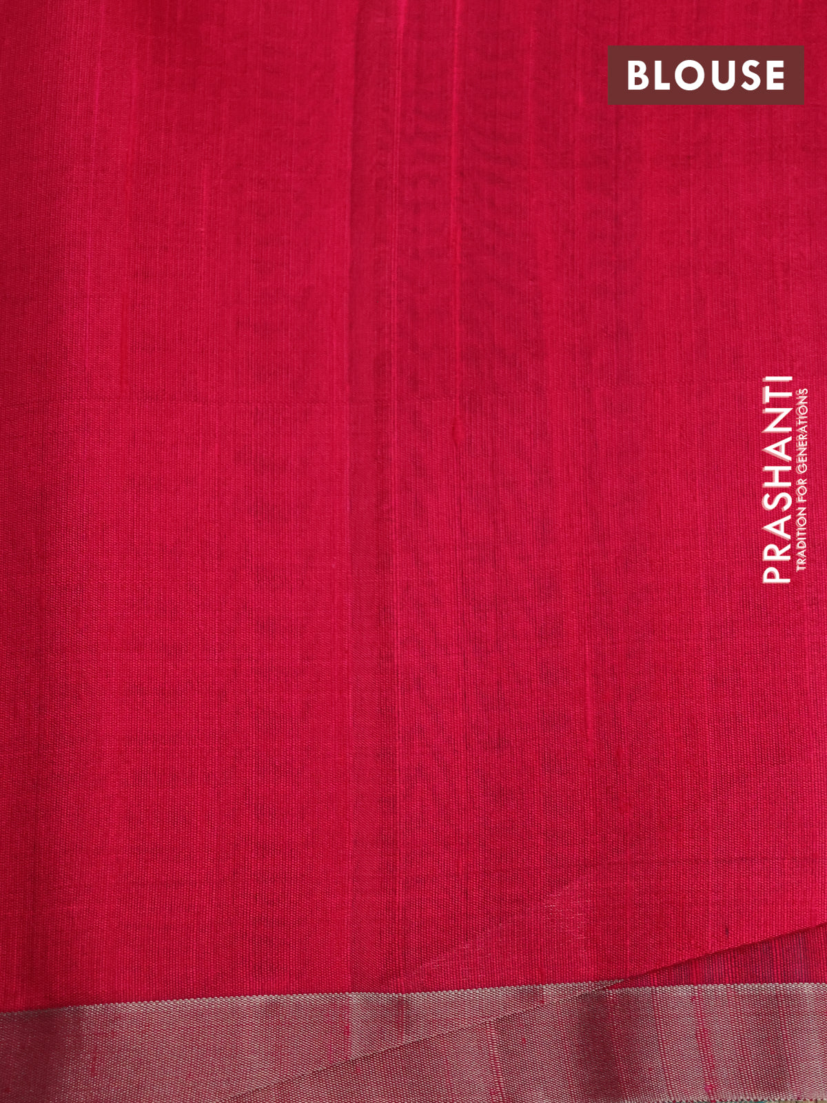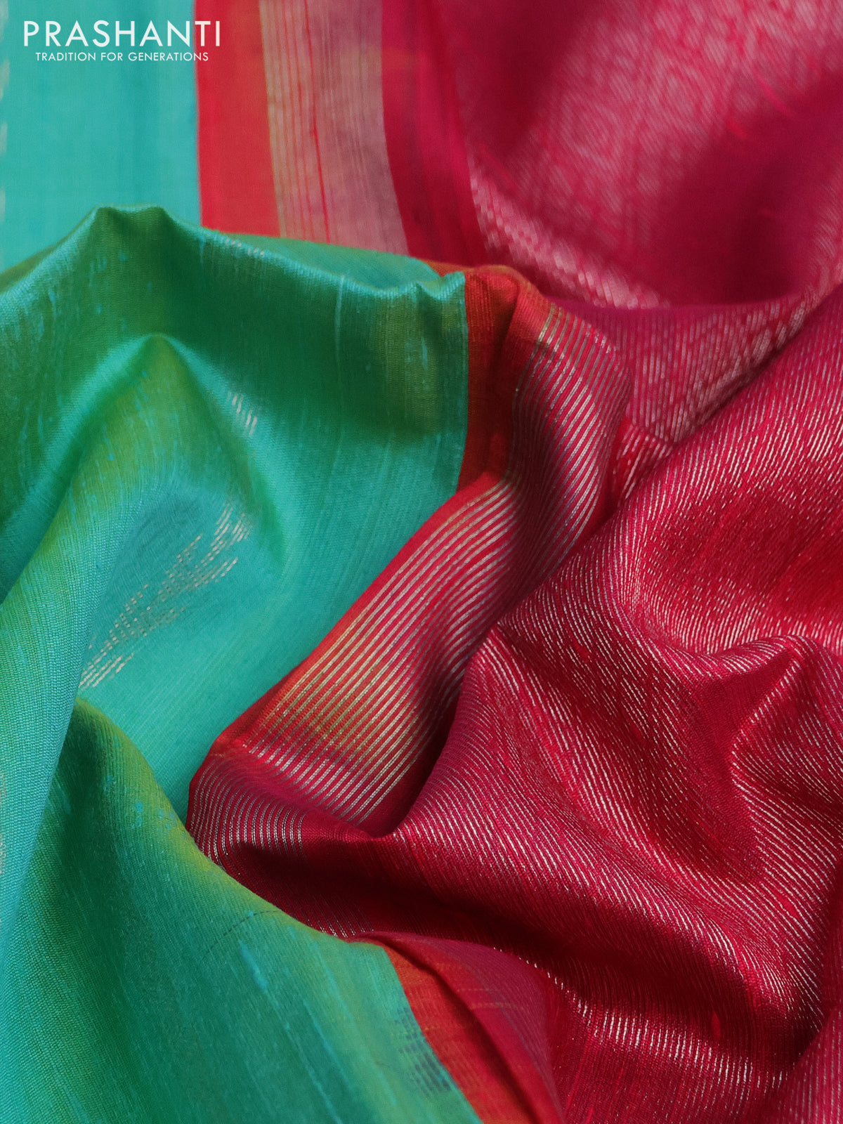 Pure raw silk saree dual shade of teal and reddish pink with allover silver zari weaves and small zari woven border