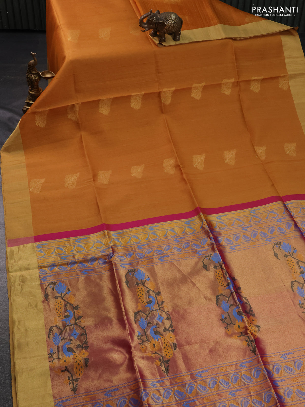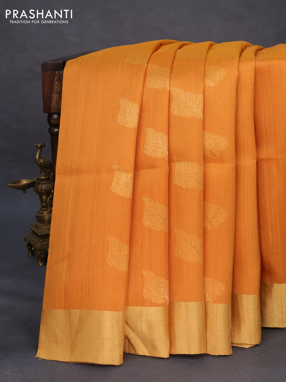 Pure raw silk saree mustard yellow and pink with zari woven buttas and zari woven border