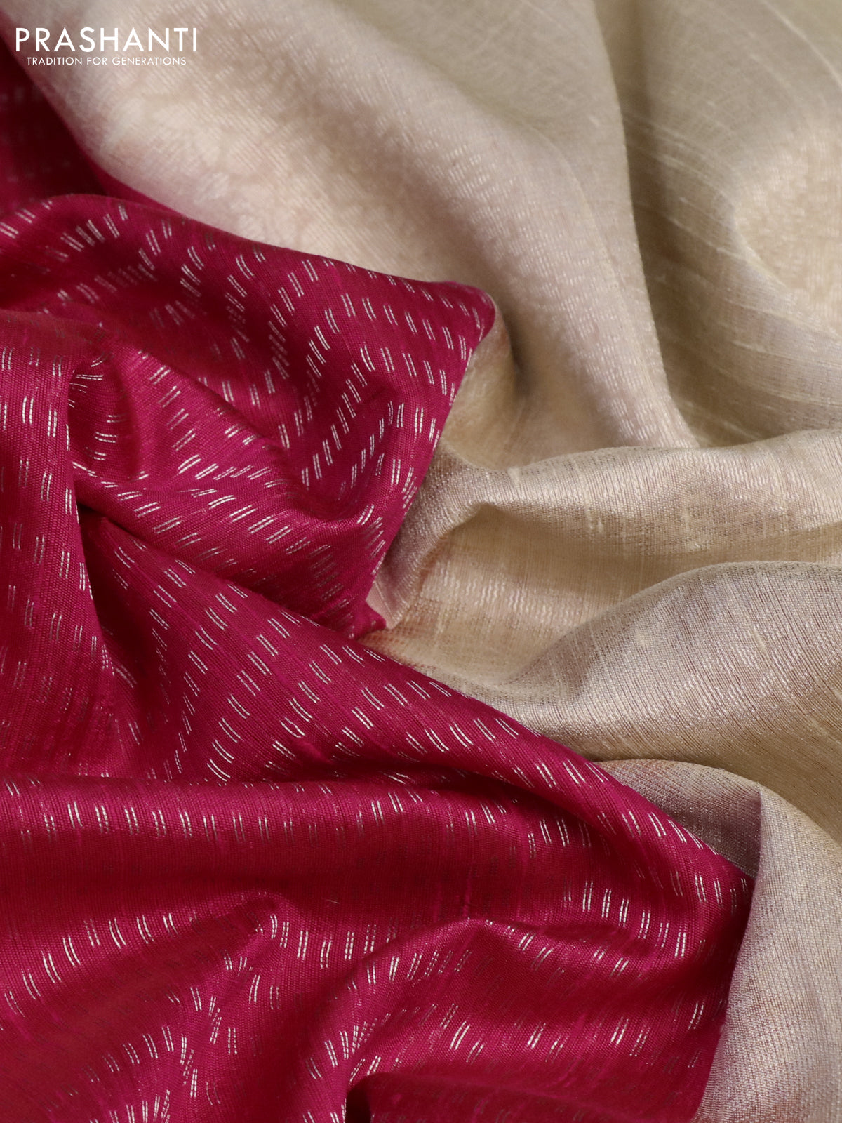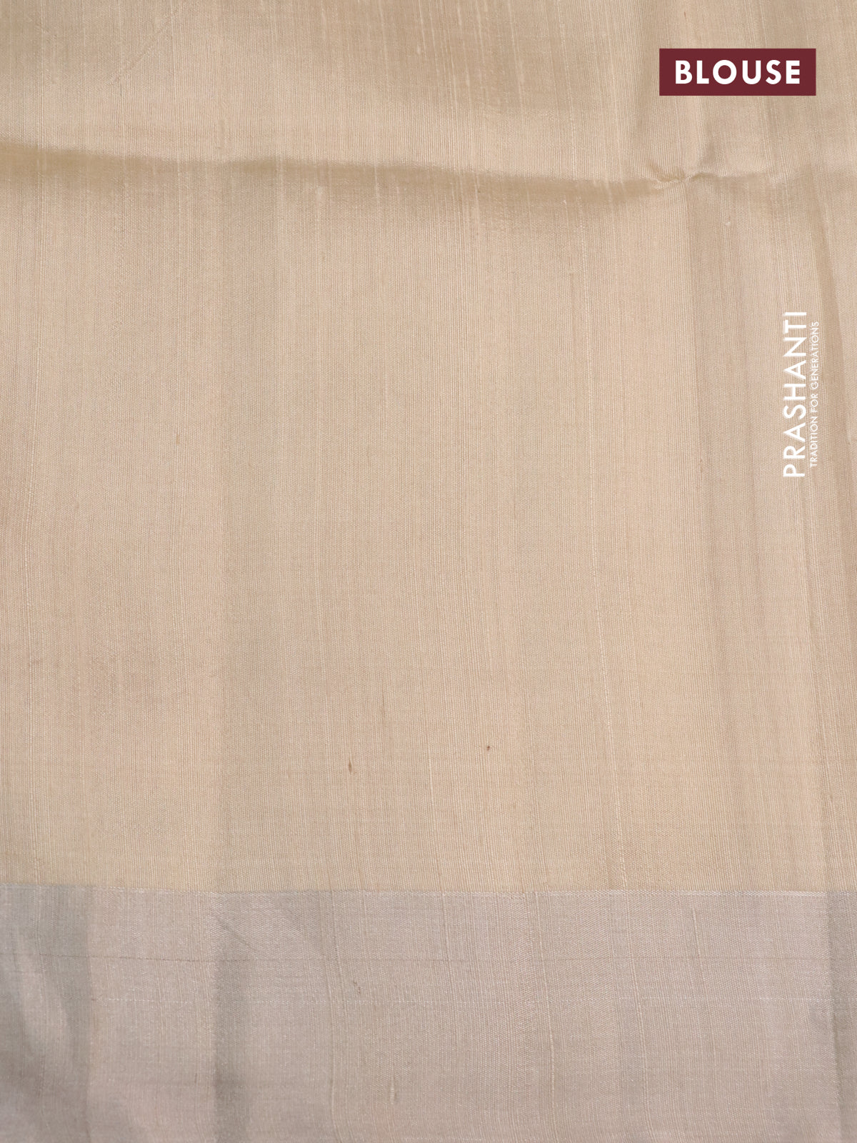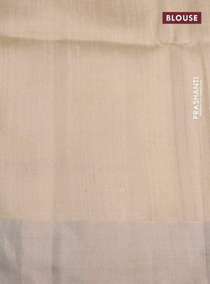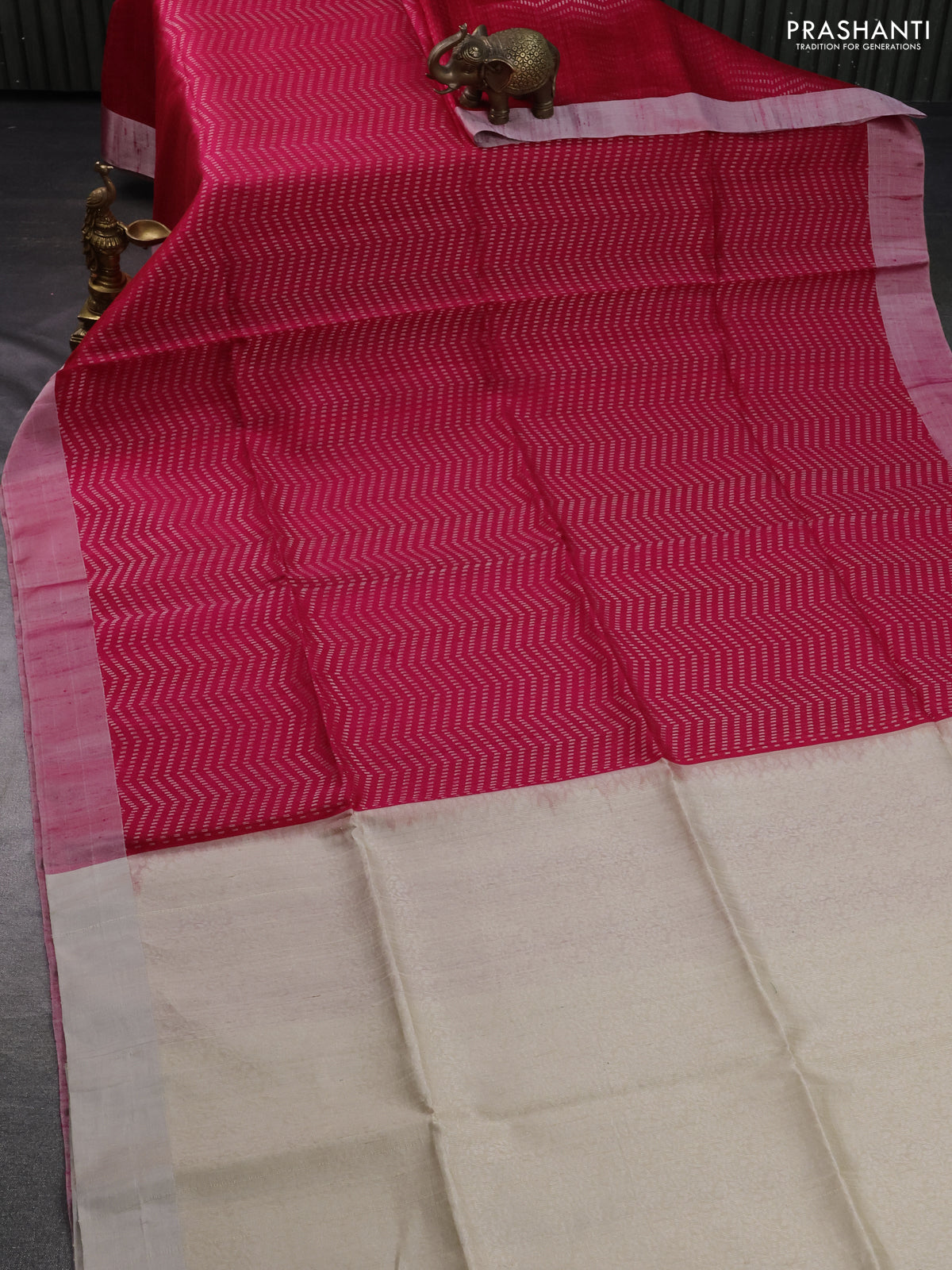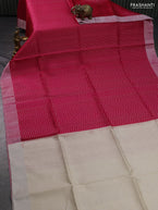 Pure raw silk saree pink and cream with allover silver zari weaves and silver zari woven border