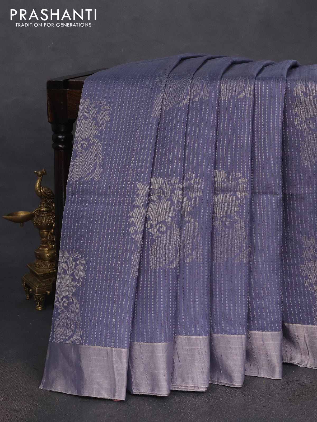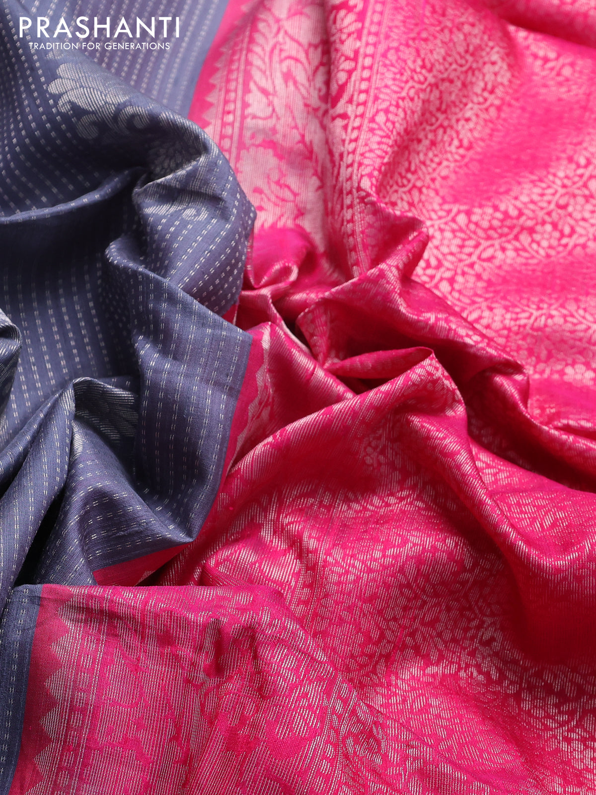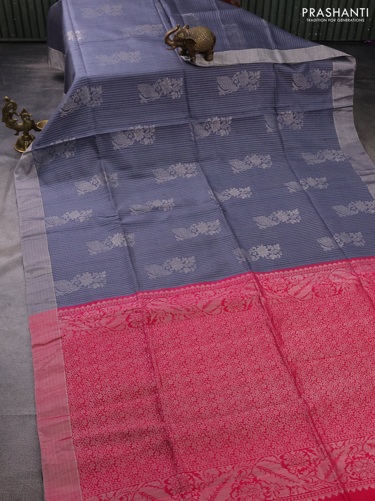 Pure raw silk saree pink and grey with allover silver zari brocade weaves and silver zari woven border
