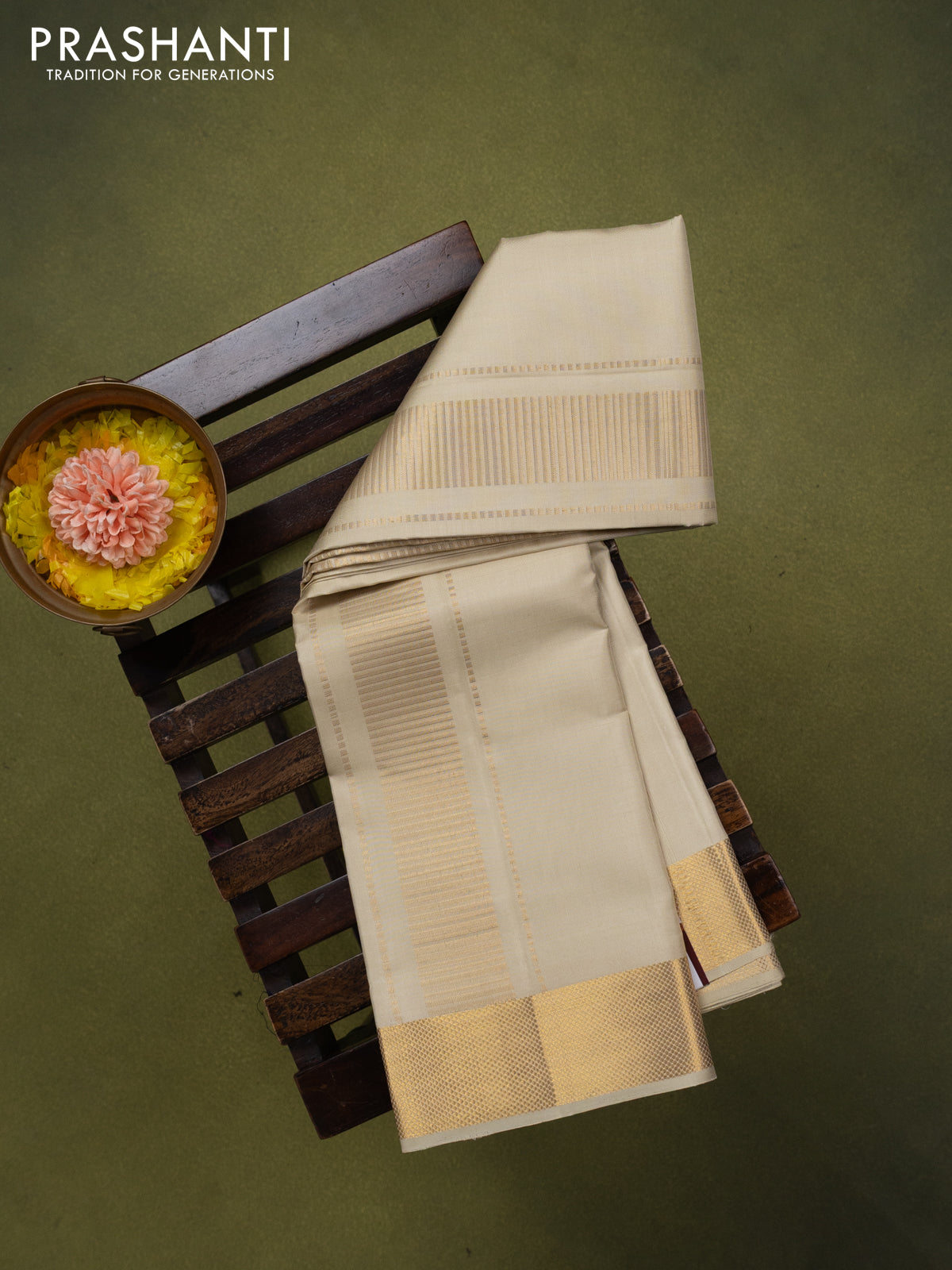 9x5 Pure silk dhoti and matching shirt bit cream with zari woven border