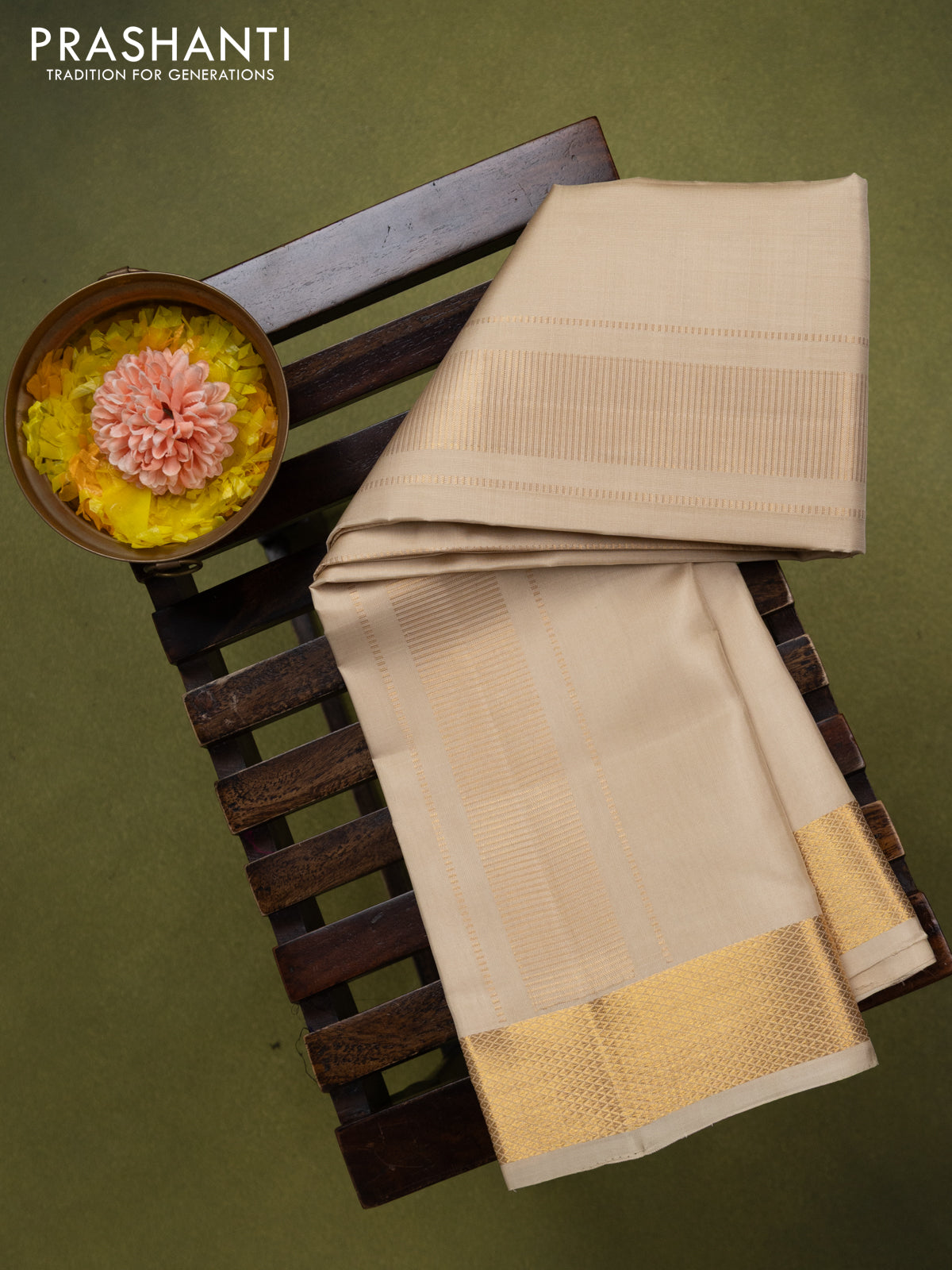 9x5 Pure silk dhoti and matching shirt bit cream with zari woven border