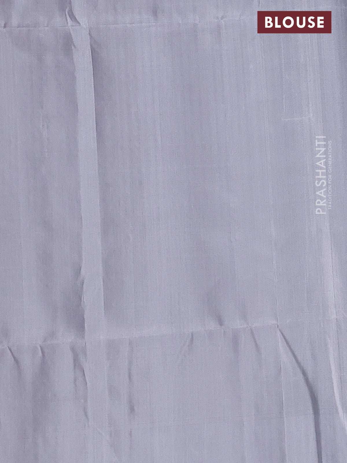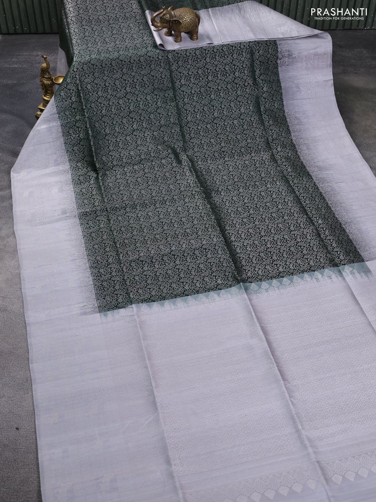 Pure soft silk saree bottle green and pastel grey with allover silver zari brocade weaves and long silver zari woven border