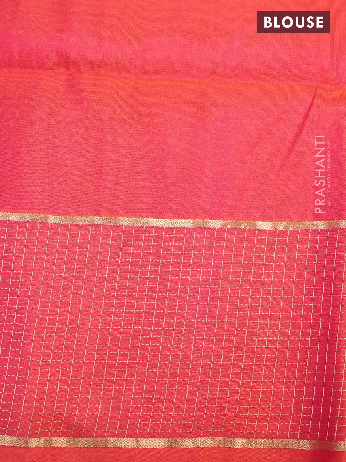 Pure soft silk saree dark green and pinkish orange with zari woven buttas and zari woven checked border