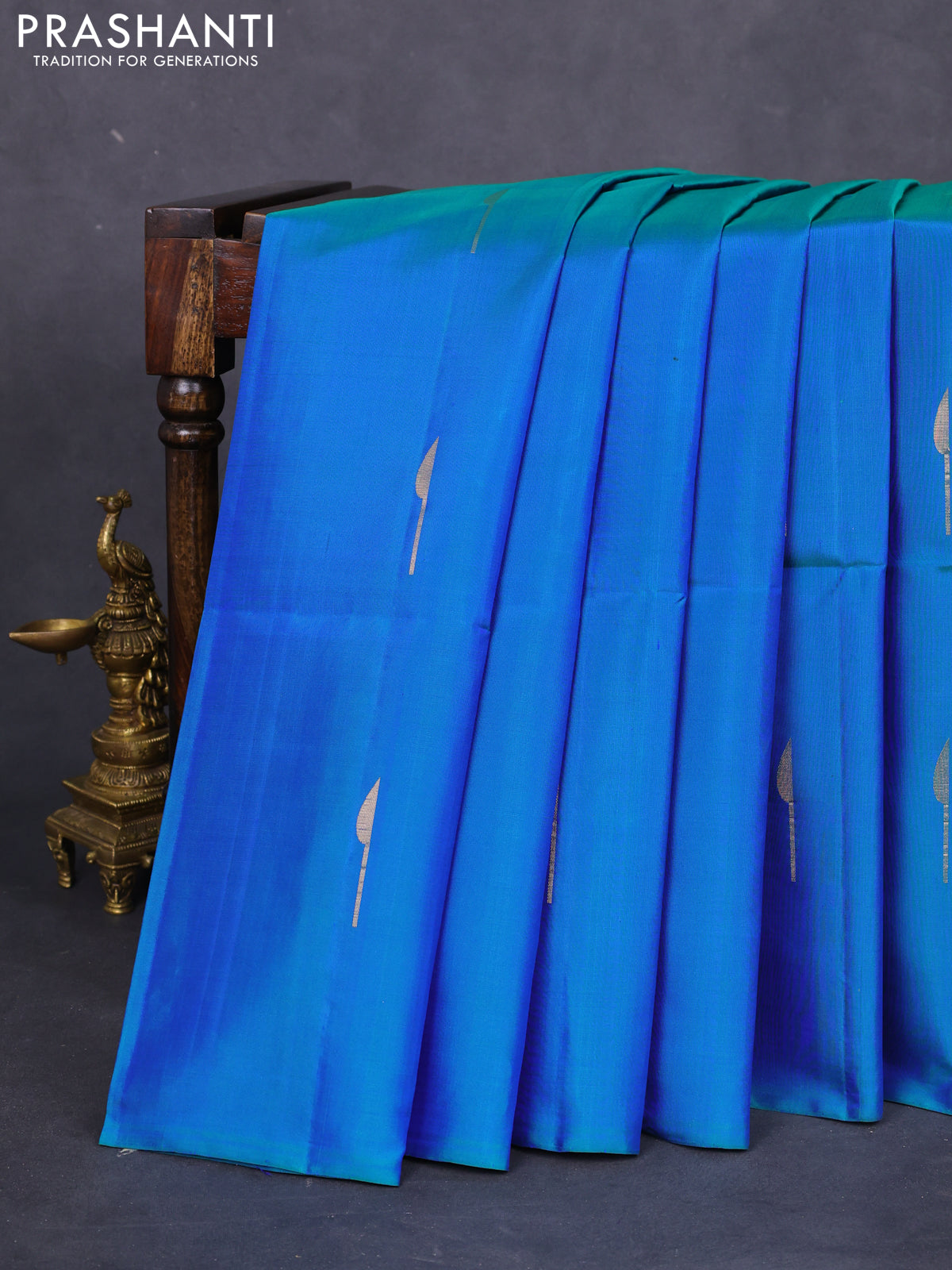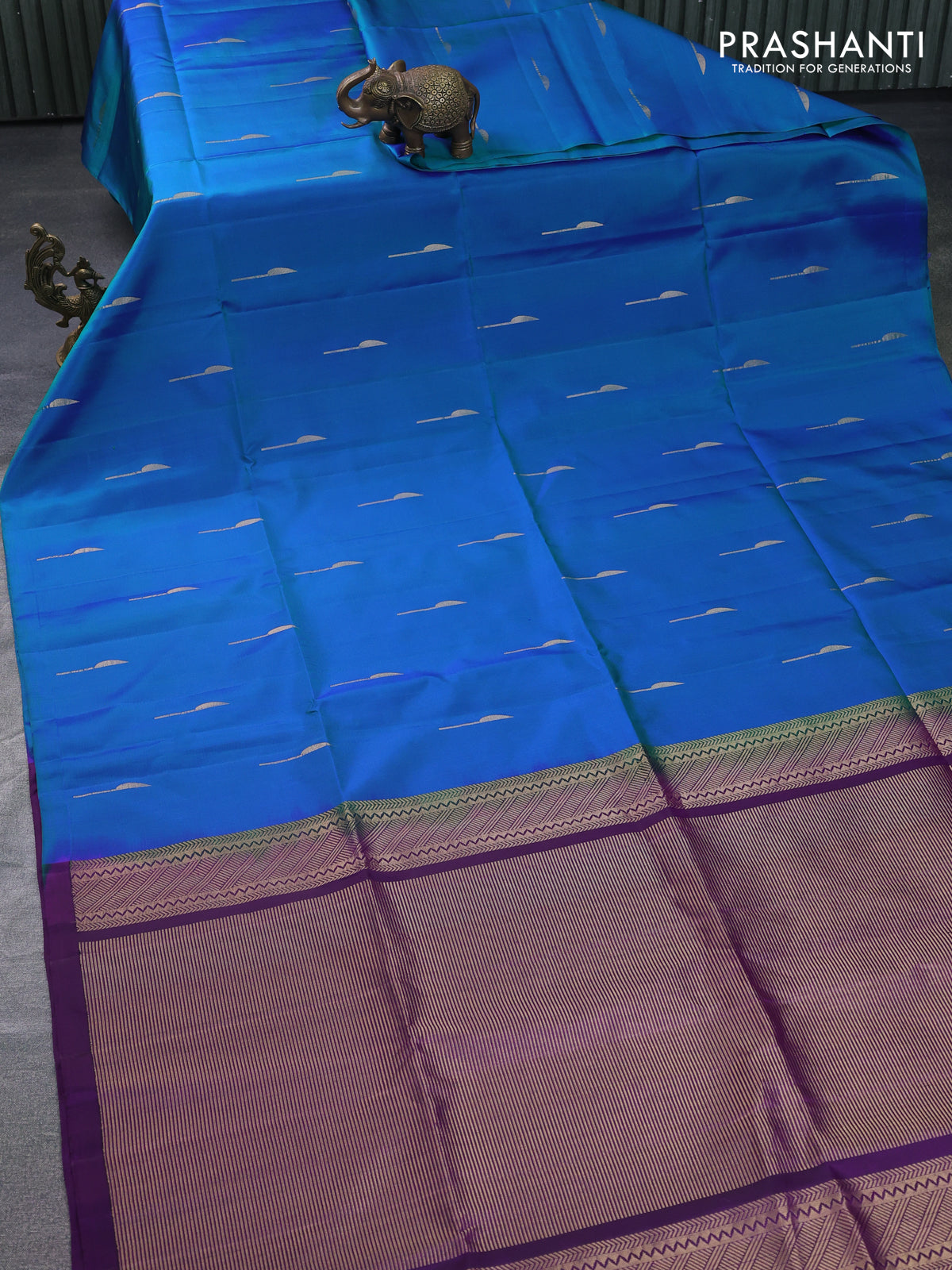 Pure soft silk saree dual shade of blue and purple with zari woven buttas in borderless style