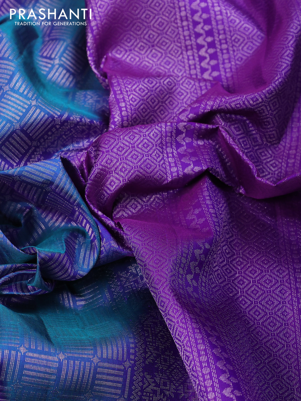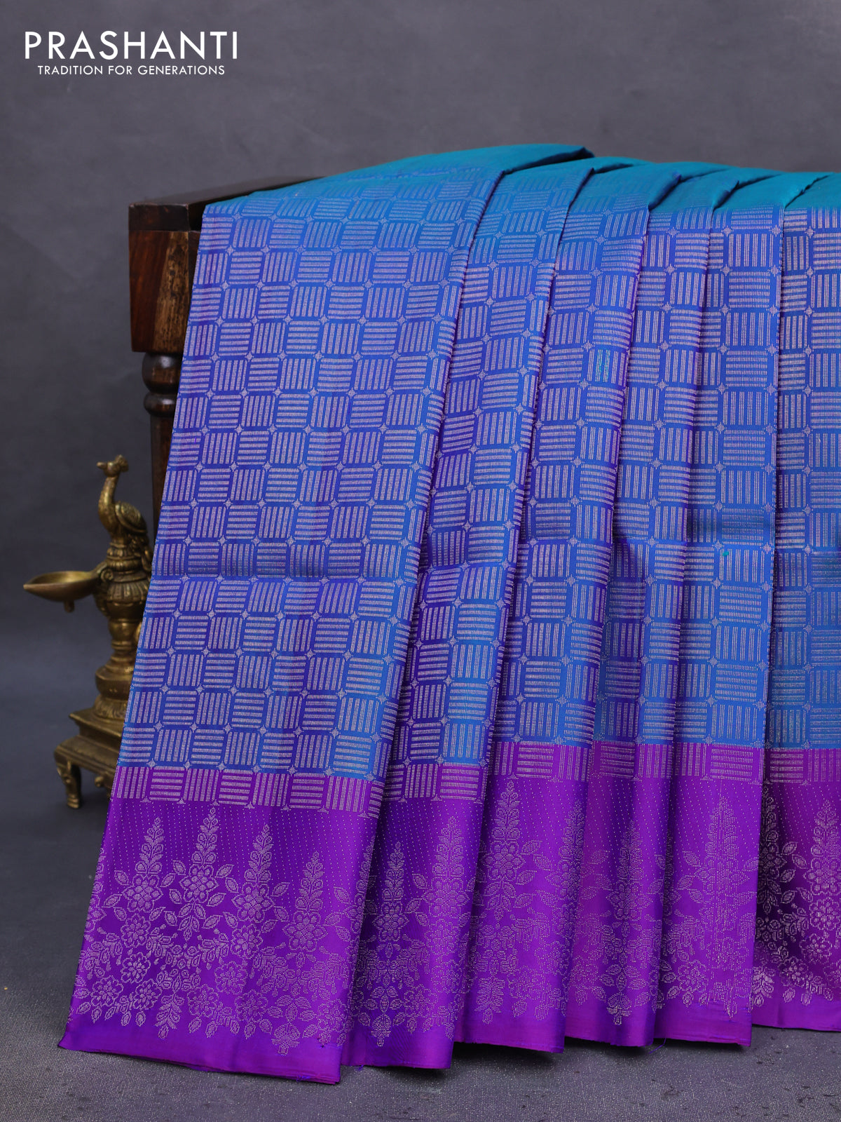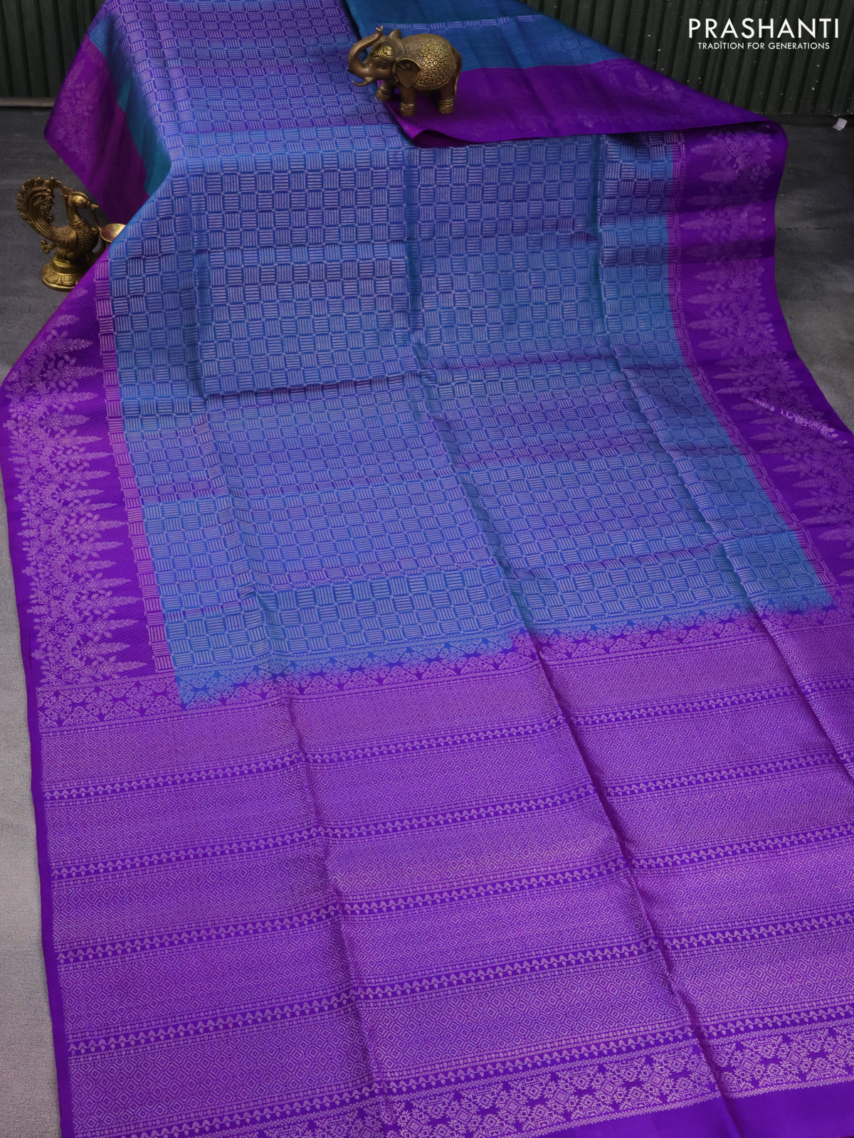 Pure soft silk saree dual shade of blue and violet with allover zari woven brocade pattern and zari woven border