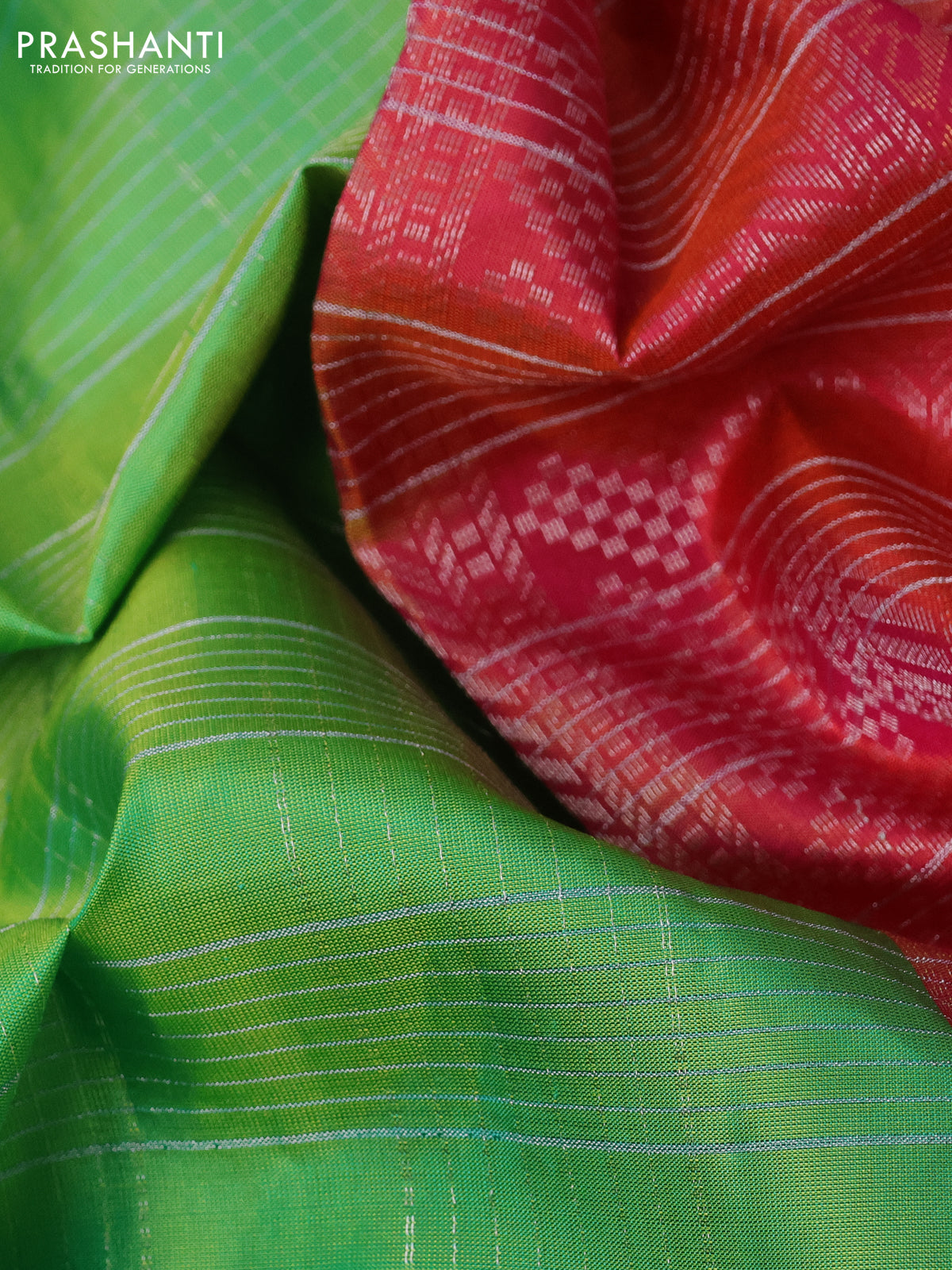 Pure soft silk saree dual shade of green and dual shade of pink with allover silver zari checked pattern and zari woven butta border