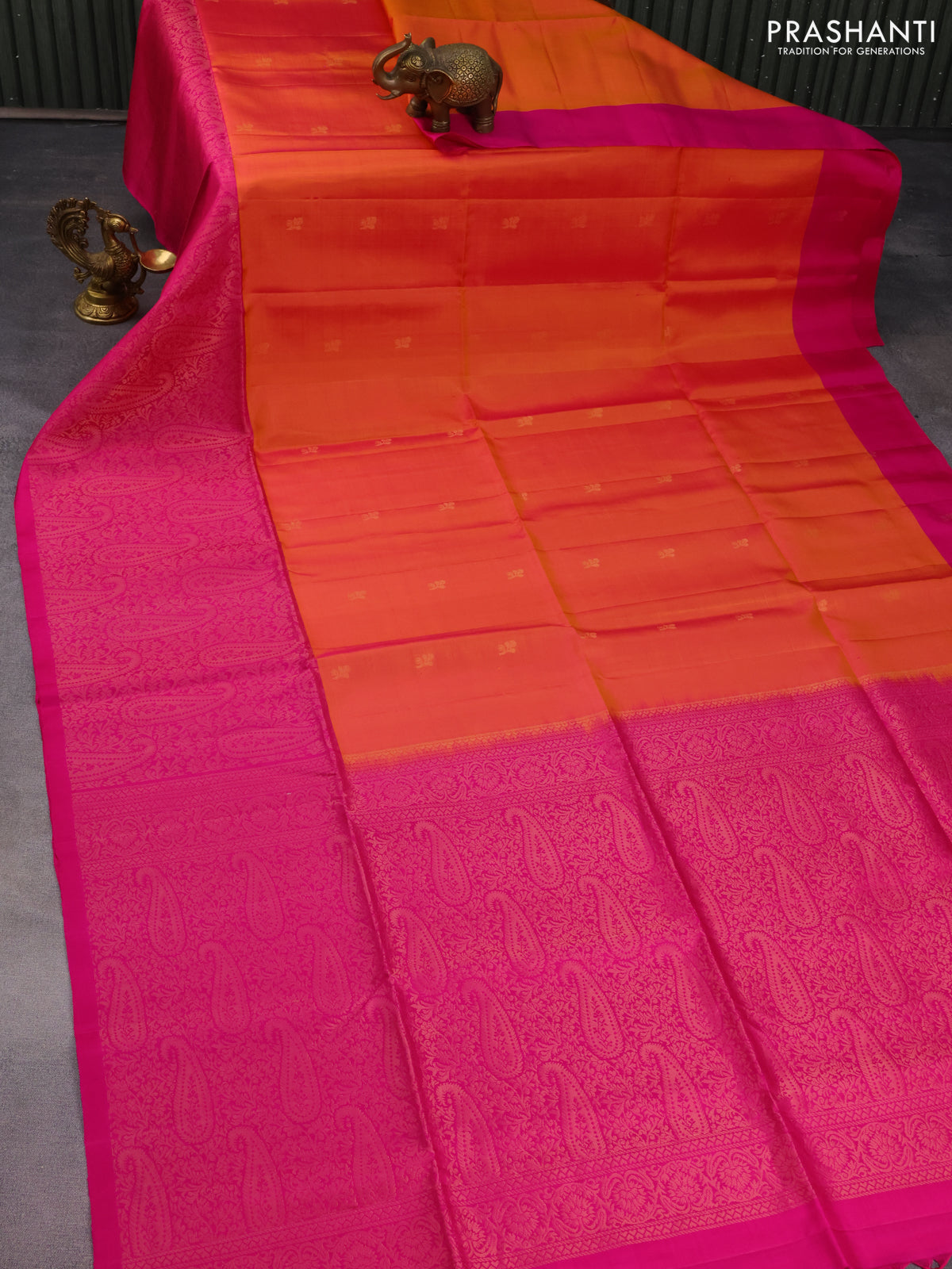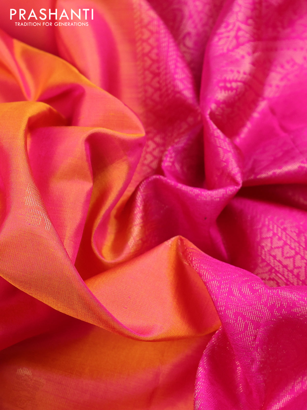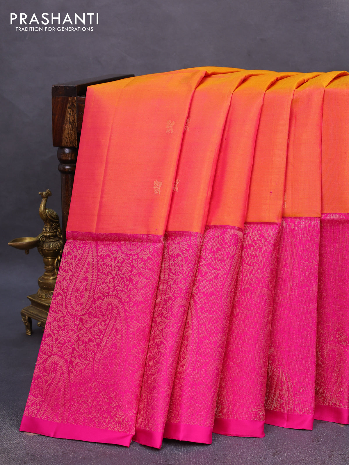 Pure soft silk saree dual shade of pinkish yellow and pink with zari woven buttas and long rich zari woven border